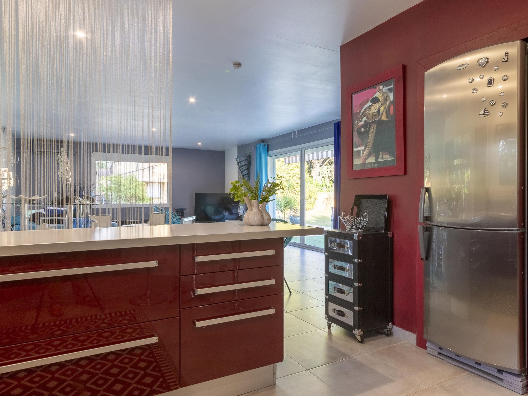 "Un petit coin de paradis", 2-room house 90 m2. Object suitable for 2 adults + 2 children. Modern furnishings: living/dining room with 1 sofabed (270 cm, length 240 cm), TV (flat screen), air conditioning. Exit to the terrace. 1 room with panoramic window with 1 double bed (160 cm), shower and air conditioning. Exit to the terrace. Open kitchen (oven, dishwasher, 3 ceramic glass hob hotplates, microwave, electric coffee machine). Sep. WC. Heating. Terrace furniture, electric barbecue, deck chairs (4). View of the swimming pool and the garden. Facilities: washing machine, baby cot. Internet (WiFi, free). Please note: 1 small pet/ dog allowed. Smoke alarm. The pool mentioned in the description is for private use.