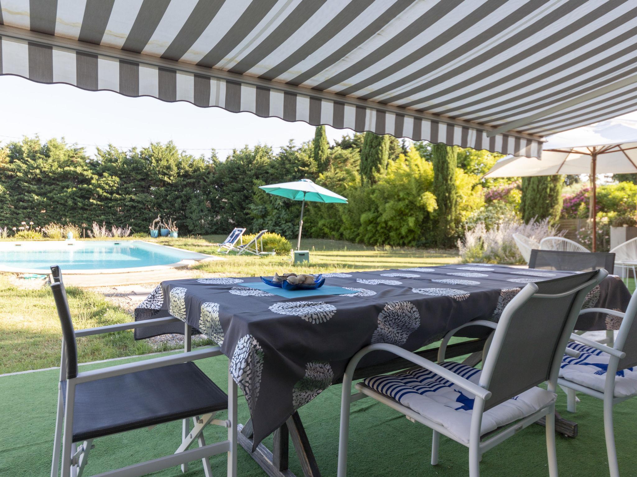 House "Un petit coin de paradis", surrounded by trees. On the outskirts, 3 km from the centre of Châteaurenard. For shared use: property 2'000 m2. Private: garden 1'000 m2 lawn and wildlife garden, swimming pool angular (12 x 6 m, depth 110 - 170 cm, seasonal availability: 01.May. - 30.Oct.) with internal staircase and alarm system. Terrace (100 m2), garden furniture, barbecue. In the house: air conditioning. Parking on the premises. Shop 2 km, supermarket 2 km, restaurant 600 m, bus stop "Les Moulins" 2.9 km. Nearby attractions: Avignon 10 km, Saint Rémy de Provence 12 km, Les Baux de Provence 21 km. Please note: car recommended. The owner lives on the same property.