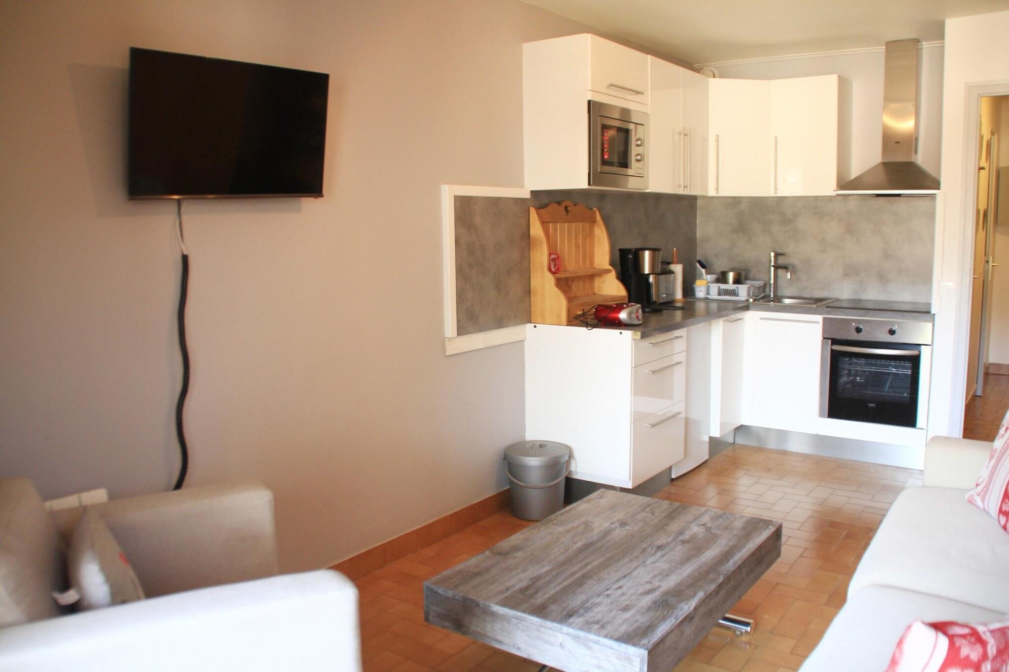 Denna mysiga fastighet erbjuder en härlig studioupplevelse, perfekt för upp till fyra gäster. I vardagsrummet finns en bekväm bäddsoffa, kompletterad med en våningssäng i entrén, vilket garanterar en vilsam vistelse för familjer eller små grupper. Gästerna kan njuta av utsikten från balkongen i österläge, medan ett dedikerat garage erbjuder säker parkering. Fastigheten är husdjursvänlig, vilket gör att du kan ta med dig dina lurviga följeslagare för en alpin flykt. Gratis transferservice under högsäsong bidrar till bekvämligheten, vilket gör det enkelt att utforska omgivningarna. Denna studio ligger inbäddat i området Vonnes i Châtel, och har ett utmärkt läge inom gångavstånd från viktiga bekvämligheter. Linbanan ligger bara 400 meter bort och ger tillgång till det berömda skidområdet Portes du Soleil. För extra bekvämlighet finns en gratis pendelbusshållplats i närheten. Gästerna kan också njuta av närheten till butiker och restauranger, båda ligger bara 100 meter från boendet. Den lugna närliggande sjön förstärker områdets charm, vilket gör det till en idealisk plats för avkoppling. Studion har ett kök i öppen planlösning utrustat med moderna bekvämligheter, inklusive en keramikhäll, kylskåp, diskmaskin, ugn, mikrovågsugn, brödrost och en filterkaffemaskin. Ytterligare bekvämligheter inkluderar ett badrum med badkar och en separat toalett. Ett skidskåp finns också tillgängligt, vilket säkerställer att din utrustning förvaras säkert efter en dag i backen. Denna genomtänkt designade studio kombinerar funktionalitet med komfort, vilket garanterar en minnesvärd alpin semester. Obs: Turistskatten debiteras på fastigheten och är inte en del av uthyrningen.