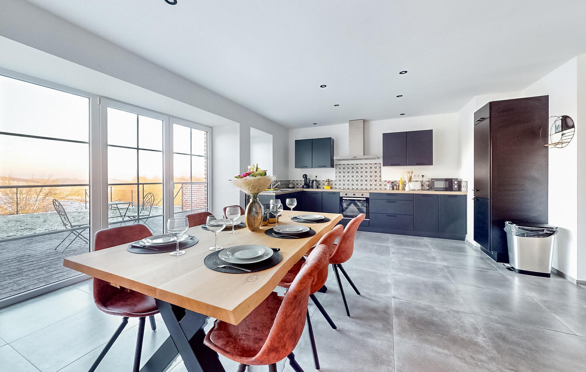 Nära Meuse och naturreservatet Pointe de Givet är detta moderna semesterhus det perfekta stället att tillbringa en avkopplande semester med vänner eller familj. Se fram emot matlagningskvällar tillsammans i det välutrustade köket med öppen planlösning och gemytliga måltider vid det eleganta matbordet med utsikt över landskapet. På kvällen inbjuder en rymlig soffgrupp i vardagsrummet dig att njuta av goda samtal eller oförglömliga spelkvällar.