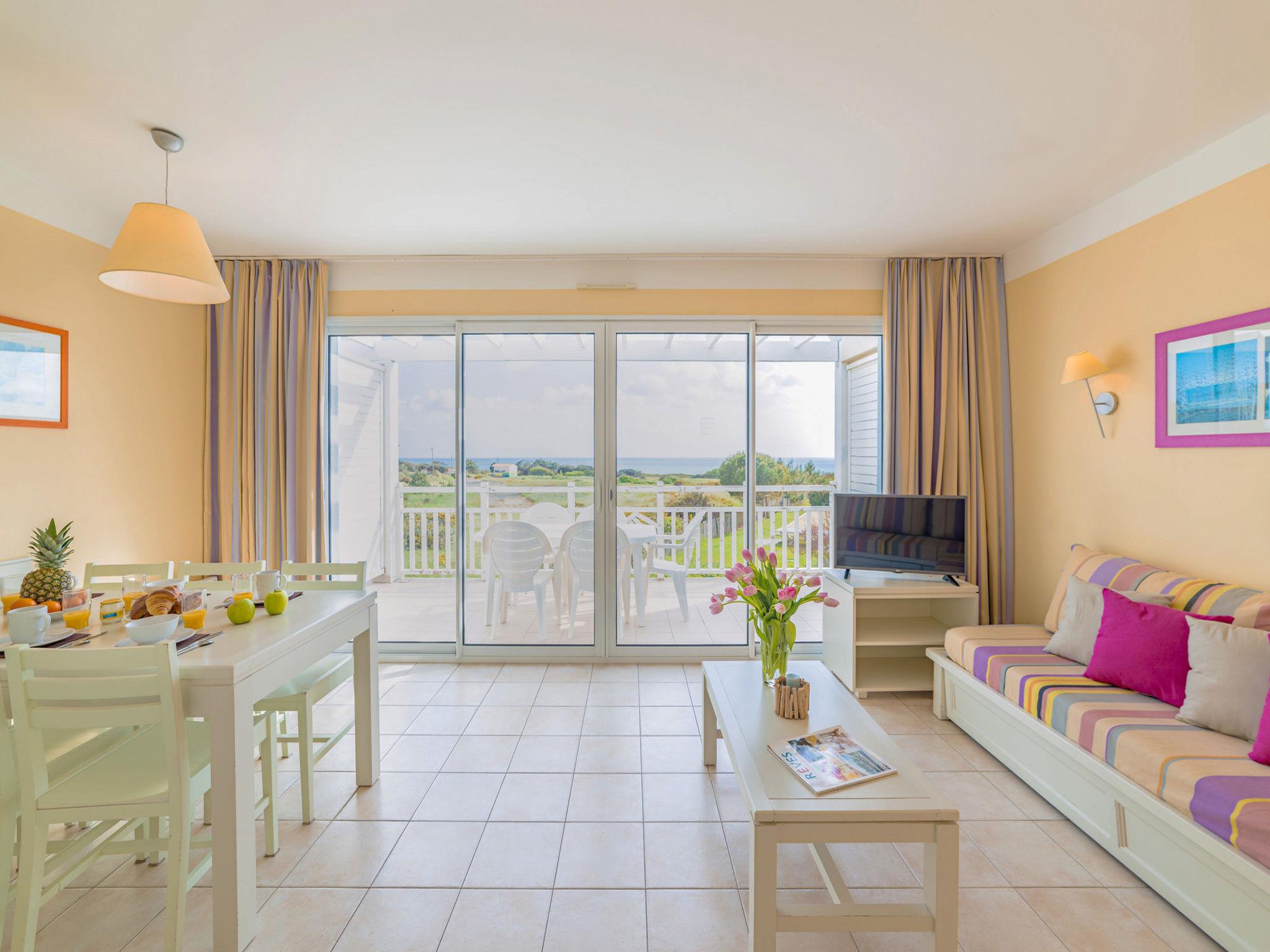 "L'Estran S2M", 1-room apartment 25 m2. Practical and beautiful furnishings: living/sleeping room with 1 double sofabed, dining table and TV. Kitchenette (dishwasher, 2 ceramic glass hob hotplates, microwave). Bath/WC. Electric heating. Carpet. Balcony or terrace. Terrace furniture, balcony furniture. View of the sea. Facilities: children's high chair, baby cot (extra). Internet (WiFi, extra). Parking. Please note: non-smokers only. Maximum 2 pets/ dogs allowed. Smoke alarm. The flat is on the ground floor or upper floors.