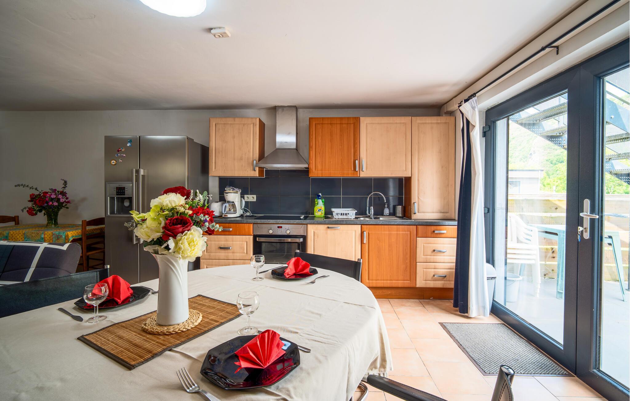 Bara några steg från Meuses strand och i hjärtat av Ardennernas naturpark och Ardennerskogen, inbjuder denna rymliga och mysiga lägenhet på bottenvåningen dig att tillbringa avkopplande dagar med att aktivt upptäcka den charmiga regionen med dina nära och kära. Tillaga dina favoritmåltider i det öppna köket, planera dina aktiviteter tillsammans vid det inbjudande matbordet och avrunda en händelserik dag i naturen med en mysig spelkväll i soffan.