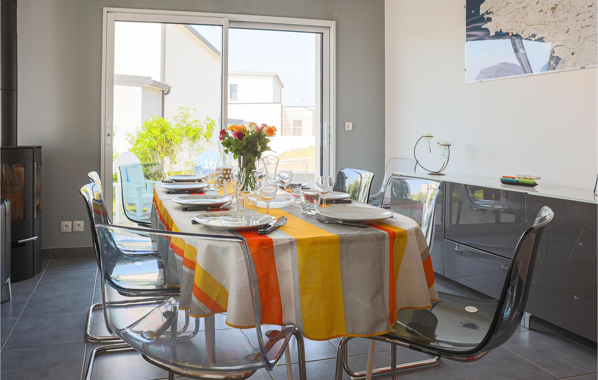 Detta moderna och familjevänliga semesterhus med havsutsikt ligger i Le Pouldu, Clohars Carnoët.
