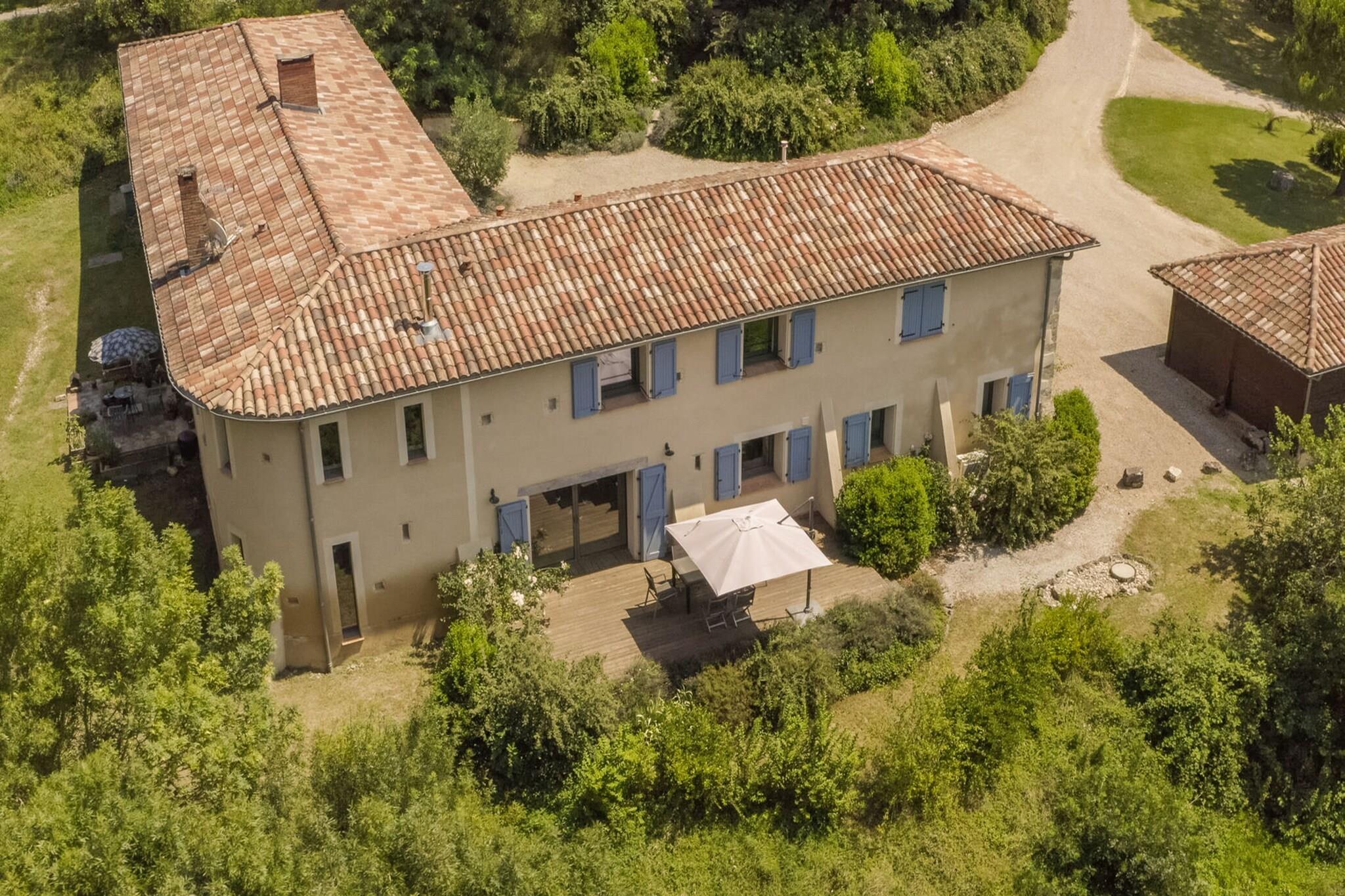 Fly till det fridfulla landskapet i Damiatte, Frankrike, där detta vidsträckta fristående semesterhus erbjuder en mästerklass i fransk landsbygdsliv. Denna egendom sträcker sig över generösa 900 kvadratmeter och är perfekt utformad för stora grupper eller generationsfamiljer som söker både kontakt och avskildhet. Interiören är omsorgsfullt utformad med flera vardagsrums- och matsalar, med mysiga platser att samlas runt en öppen spis eller koppla av i en av de många sittgrupperna. Med sex rymliga sovrum och sex badrum kan varje gäst njuta av sin egen lugna tillflyktsort, medan närvaron av tre separata kök säkerställer att det blir en smidig och trevlig upplevelse att vara värd för stora middagar. Fastigheten är en riktig lekplats för alla åldrar, med ett imponerande utbud av bekvämligheter inomhus och utomhus. Tillbringa dina eftermiddagar i det dedikerade spelrummet eller lekrummet med bordtennis och dart, eller hitta en stund av djup avkoppling i den privata bastun och bubbelpoolen. Utomhusutrymmet är lika inbjudande, med en vidsträckt trädgård, solstolar för att njuta av Tarn-solskenet och en uteplats utrustad med grill och utomhuseldstad för långa, atmosfäriska kvällar under stjärnorna. För de som gillar en aktiv livsstil erbjuder gården tillgång till en swimmingpool och en tennisbana, vilket säkerställer att det aldrig blir en tråkig stund under din vistelse. Bortom portarna till detta imponerande hem inbjuder den charmiga regionen Damiatte dig att utforska sina böljande kullar och autentiska lokala kultur. Fastigheten är välutrustad för moderna behov, med internetåtkomst och en laddstolpe för elbilar, vilket gör den lika praktisk som den är lyxig.
