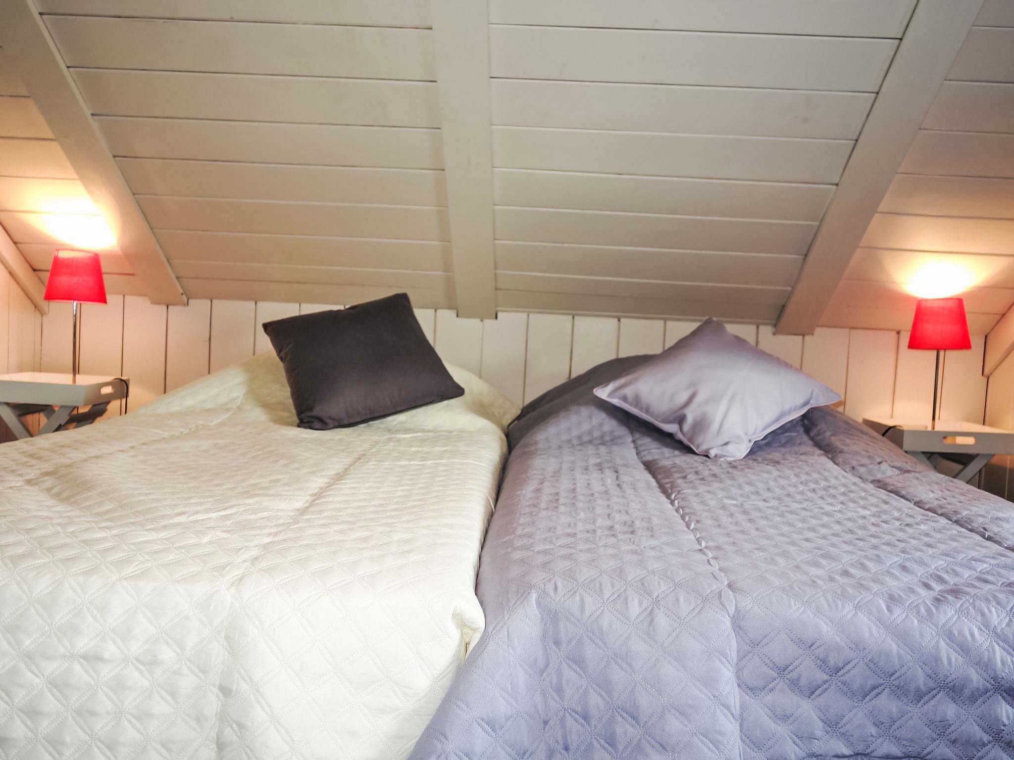 3-room chalet 38 m2 on 2 levels. Object suitable for 4 adults + 2 children. With sloping ceilings, partly renovated in 2017, beautiful furnishings: living/dining room with TV (flat screen). Exit to the garden. 1 room with 1 french bed (1 x 160 cm, length 200 cm). 1 room with 1 french bed (2 x 80 cm, length 190 cm). Kitchenette (4 hot plates, oven, electric coffee machine). Shower/WC. Electric heating. Upper floor: open gallery with sloping ceilings with 2 beds (90 cm, length 190 cm). Garden 200 m2. Terrace furniture, barbecue. Facilities: Internet (WiFi, extra). Parking at the house. Please note: non-smokers only. 1 small pet/ dog allowed. Smoke alarm. As part of the water restriction measures linked to the drought in certain departments, please note that the rental swimming pool may be closed until the lifting of the legal restrictions authorizing again the filling and the top-up in water from all swimming pools and basins for private use. Here you will find all the official information on the measures to limit or suspend the use of water in France. Instead of an enclosed bedroom, some sleeping areas are located in an open-plan area (gallery, alcove, etc.).