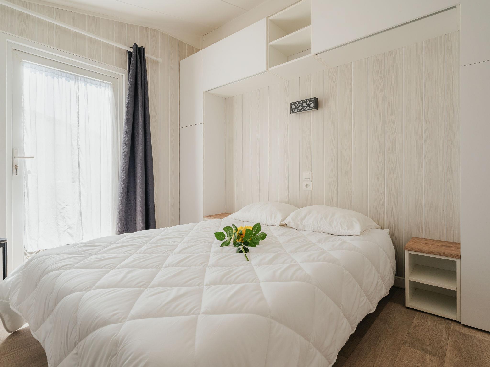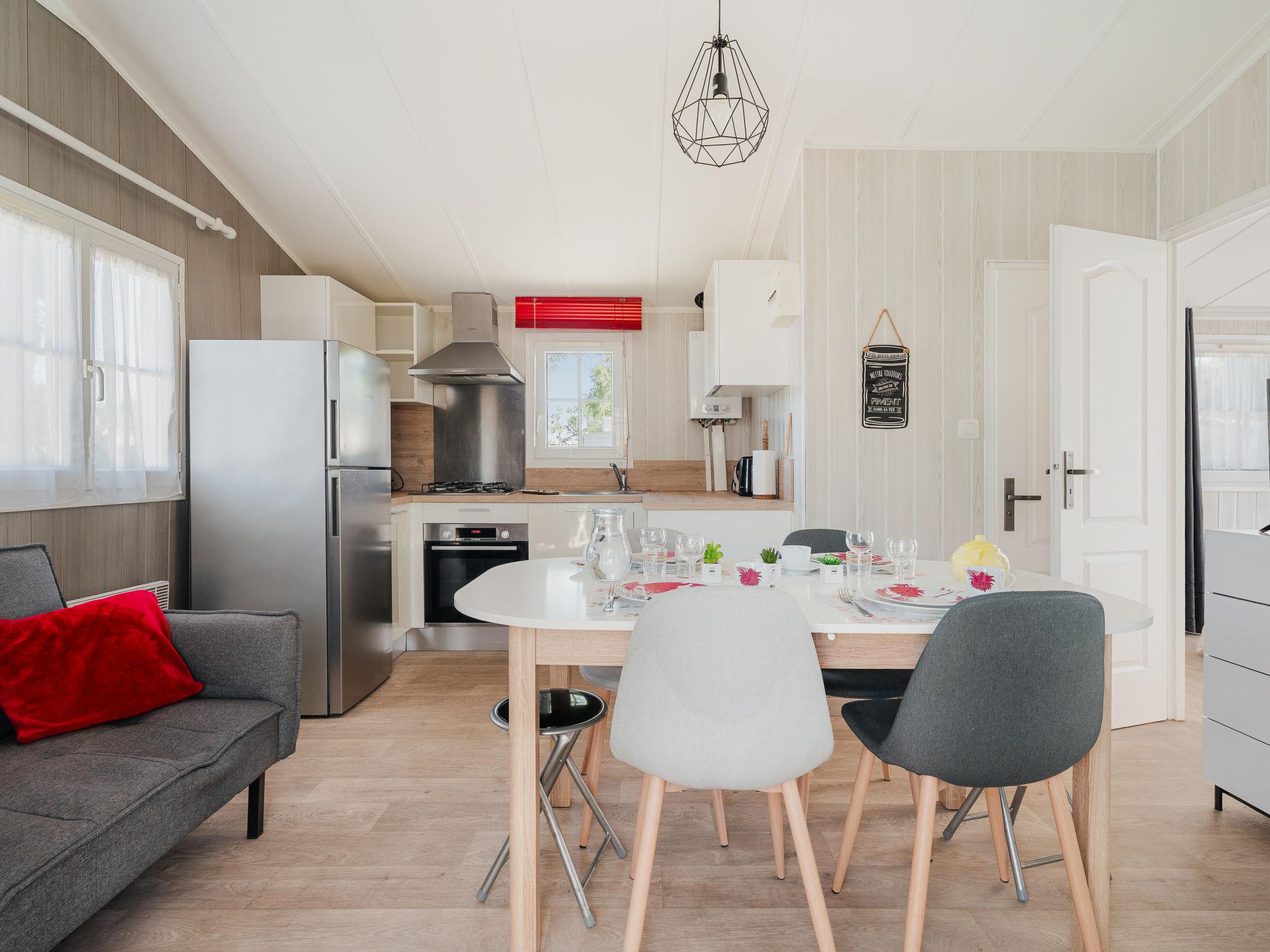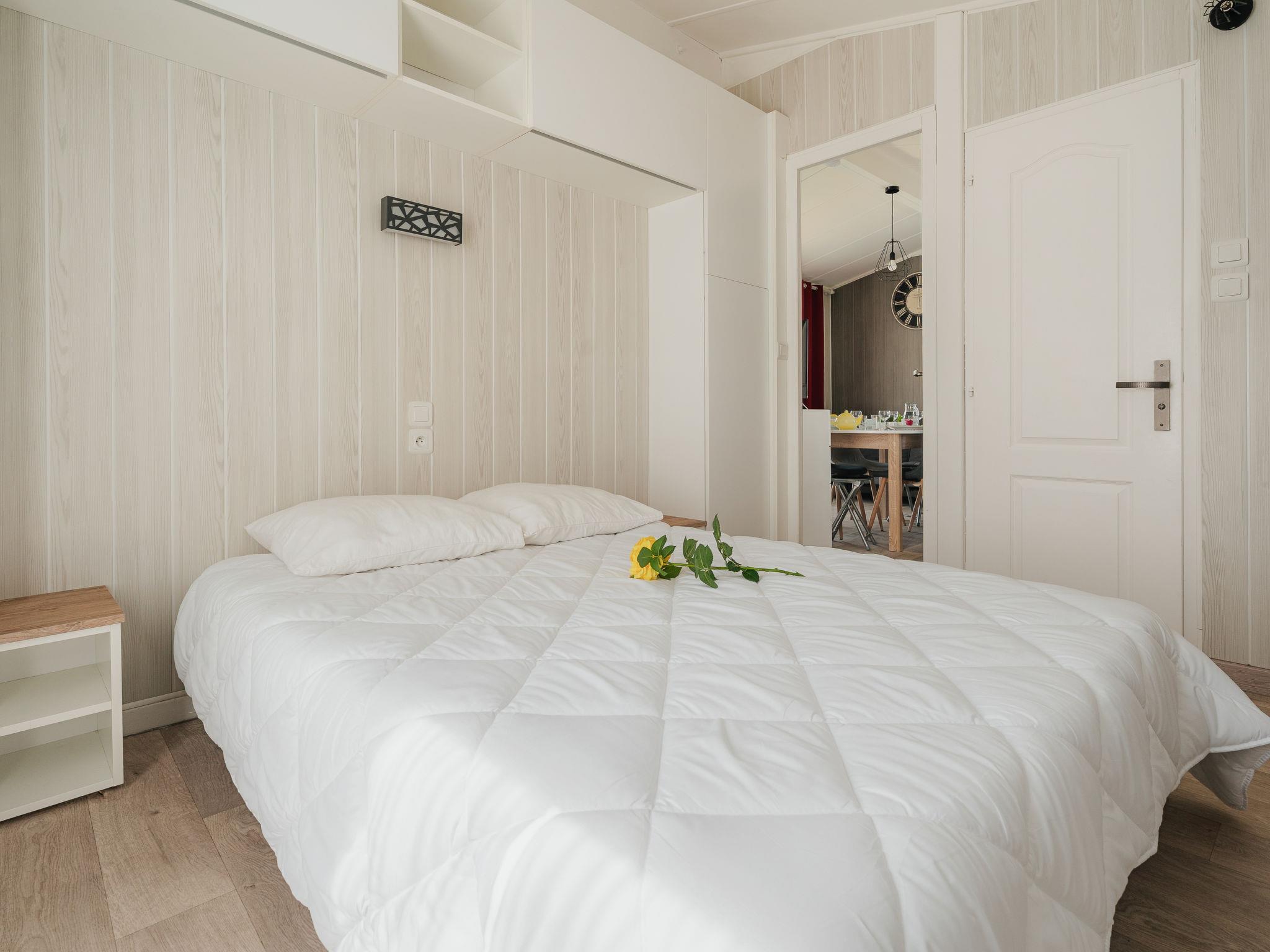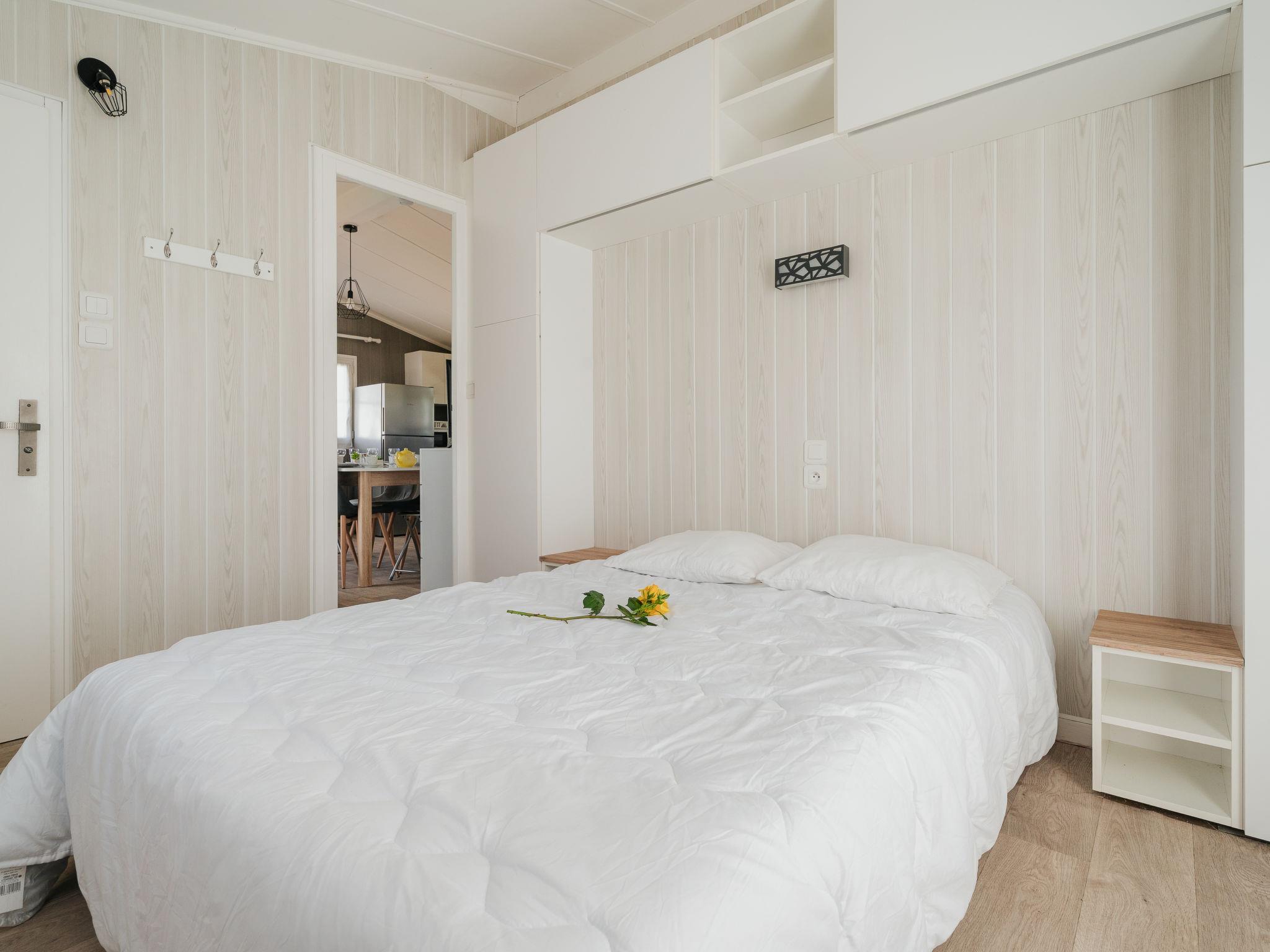 3-room chalet 43 m2. Beautiful furnishings: living/dining room with TV (flat screen). Exit to the garden. 2 rooms, each room with 1 french bed (1 x 140 cm, length 200 cm), shower/WC and double hand-basin. Kitchenette (4 hot plates, oven, dishwasher, toaster, kettle, microwave, freezer, electric coffee machine). Terrace 20 m2. Terrace furniture, barbecue. Facilities: Internet (WiFi, extra). Parking at the house. Please note: non-smokers only. 1 small pet/ dog allowed. Smoke alarm. Offer by a private individual according to Art. 155, IV of CGI.