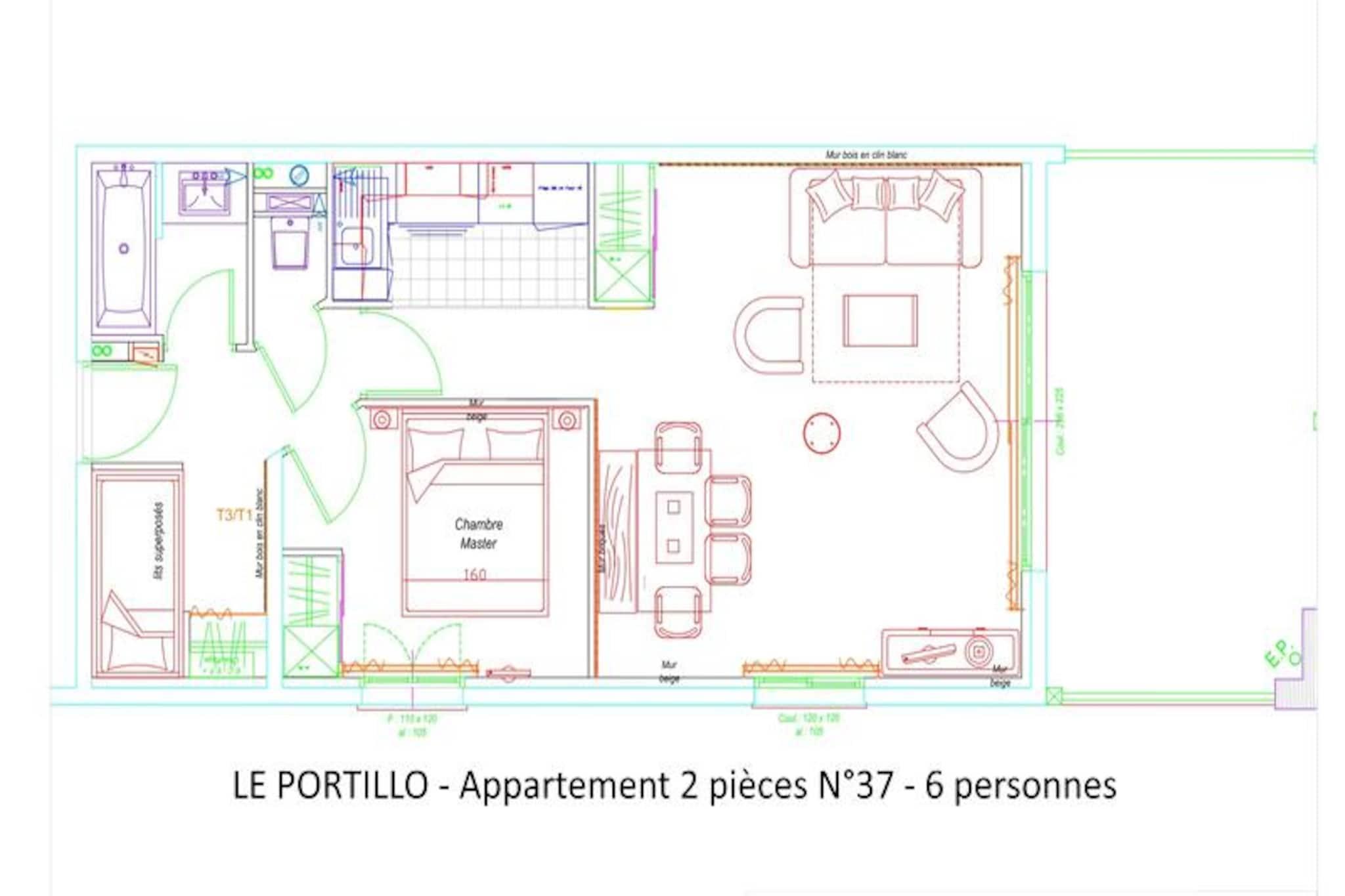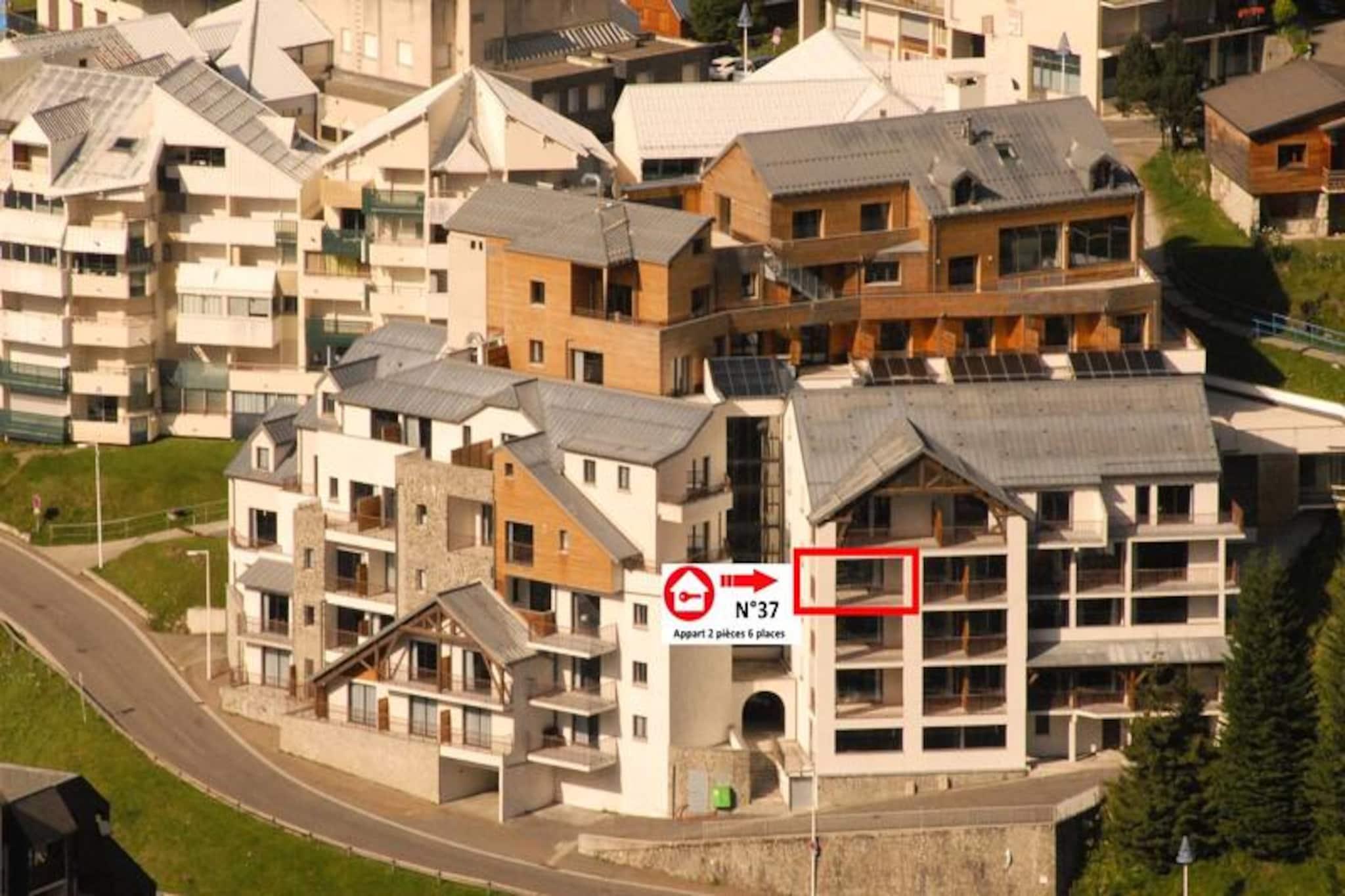 Vid porten till Pyrenéerna, där majestätiska toppar möter fridfulla alpina leder, inbjuder Le Portillo Residence dig att uppleva en harmonisk blandning av komfort och äventyr. Denna lägenhet i söderläge, belägen på tredje våningen, erbjuder hisnande utsikt över backarna och direkt tillgång till det pulserande hjärtat av orten på 16 Route du Col d'Aubisque. Oavsett om du är här för vinterskidåkning eller sommarvandring, är residenset perfekt beläget bara 150 meter från backarna och 100 meter från lokala butiker, vilket garanterar bekvämlighet i varje hörn. \n\nInuti är den 49 m² stora lägenheten omsorgsfullt utformad för upp till sex gäster. Sovalkoven har mysiga våningssängar, medan det stora sovrummet har en queen size-säng och egen TV. Vardagsrummet, med en bäddsoffa för två personer och TV, öppnar upp mot en terrass där du kan njuta av bergsutsikten. Köket med öppen planlösning är fullt utrustat med moderna apparater, inklusive keramikhäll, ugn, mikrovågsugn och diskmaskin, vilket gör matlagningen enkel. Ytterligare bekvämligheter som gratis Wi-Fi, sängkläder och ett skidrum med individuella pjäxtorkare förbättrar din vistelse.\n\nLe Portillo Residence är mer än bara ett ställe att bo på; det är ett centrum för avkoppling och rekreation. Dyk ner i den uppvärmda inomhuspoolen, varva ner i jacuzzin eller låt barnen plaska i deras dedikerade pool. Fitnessentusiaster kommer att uppskatta gymmet, medan spelrummet erbjuder nöje för alla åldrar. Tillvalstjänster som cykelförvaring, täckt parkering och måltidsplaner säkerställer en skräddarsydd upplevelse.\n\nMed rabatter på hyra av skidutrustning och liftkort genom det exklusiva SKIPLUS-erbjudandet blir dina vinteräventyr ännu mer tillgängliga. Oavsett om du utforskar backarna eller upptäcker Pyrenéernas skönhet, lovar Le Portillo Residence en oförglömlig alpin flykt.