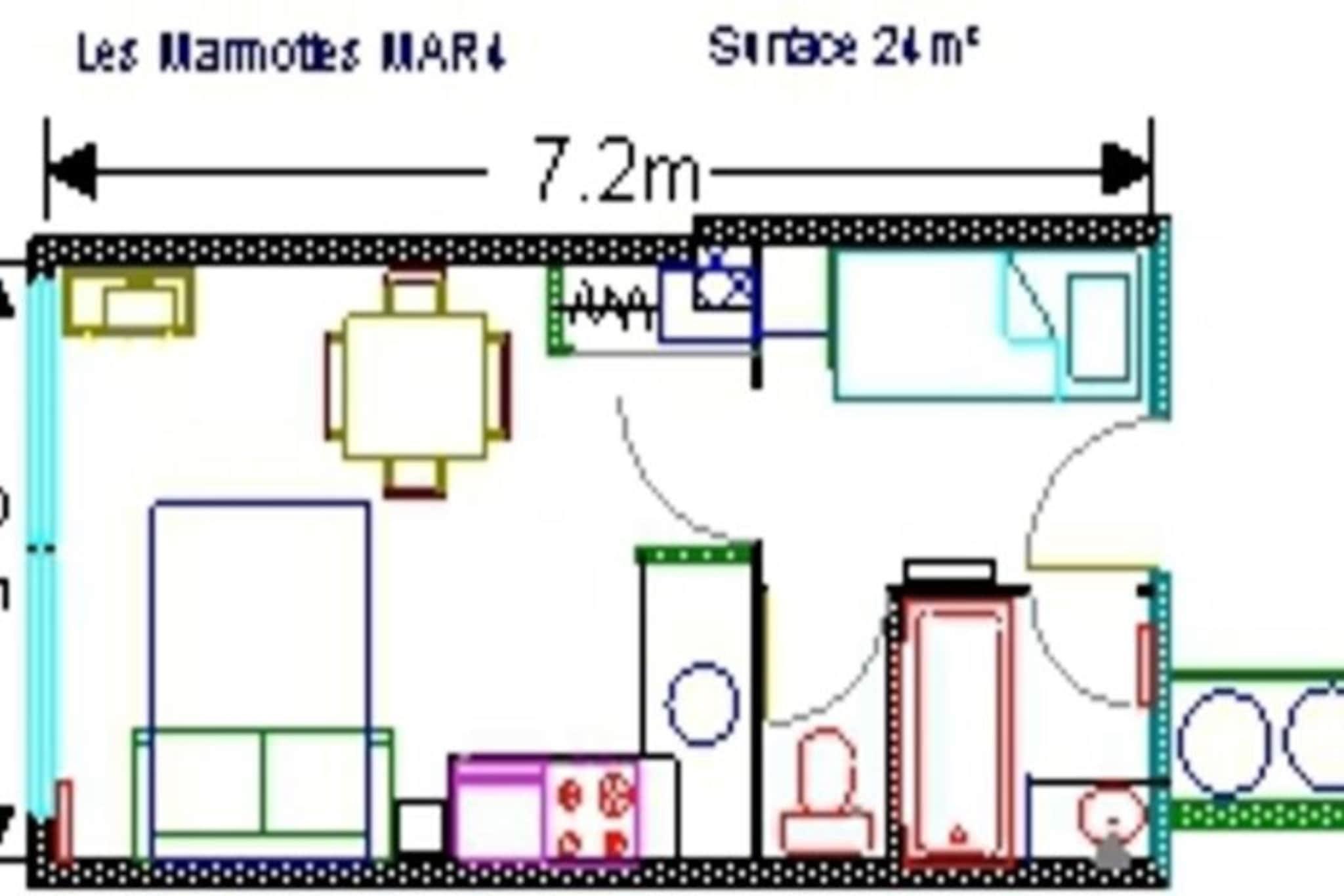 I den pittoreska byn Les Marmottes, där de snötäckta topparna i de franska Pyrenéerna skapar en hisnande bakgrund, erbjuder denna charmiga studiolägenhet en mysig tillflyktsort för både äventyrare och naturälskare. Tänk dig att vakna upp till den fridfulla utsikten över backarna, redo att omfamna dagens alpina eskapader, med skidspår bara 30 meter från din tröskel. Oavsett om du är här för vintersport eller sommarvandringar, är residenset perfekt beläget för att fördjupa dig i bergens skönhet. \n\nDenna omsorgsfullt designade studio rymmer upp till fyra gäster, vilket gör den idealisk för par, små familjer eller nära vänner. Sovalkoven med våningssängar ger ett mysigt utrymme för vilsamma nätter, medan vardagsrummet har en bekväm bäddsoffa för två personer och en TV för avkopplande kvällar. Pentryt är utrustat med allt du behöver, inklusive mikrovågsugn, diskmaskin och kylskåp, vilket säkerställer att du kan laga rejäla måltider efter en dag av utforskande. Elvärme håller utrymmet varmt och inbjudande, medan de sydostvända fönstren släpper in naturligt ljus och erbjuder inspirerande utsikt över backarna. \n\nBekvämlighet är nyckeln på Les Marmottes Residence. Butiker, skidförvaring och hiss ligger bara några steg bort, medan anläggningens karta placerar dig vid nummer 17, vilket garanterar enkel navigering. Gästerna kan få rabatter på uthyrning av skidutrustning och liftkort genom det exklusiva SKIPLUS-erbjudandet, vilket förbättrar din vinterupplevelse. På sommaren lockar vandringslederna och lovar oförglömliga äventyr mitt i frodiga landskap. \n\nOavsett om du söker spännande skidbackar, lugna bergsvandringar eller helt enkelt en fridfull tillflyktsort, kombinerar detta boende komfort, tillgänglighet och Pyrenéernas charm för att skapa en oförglömlig semesterupplevelse.