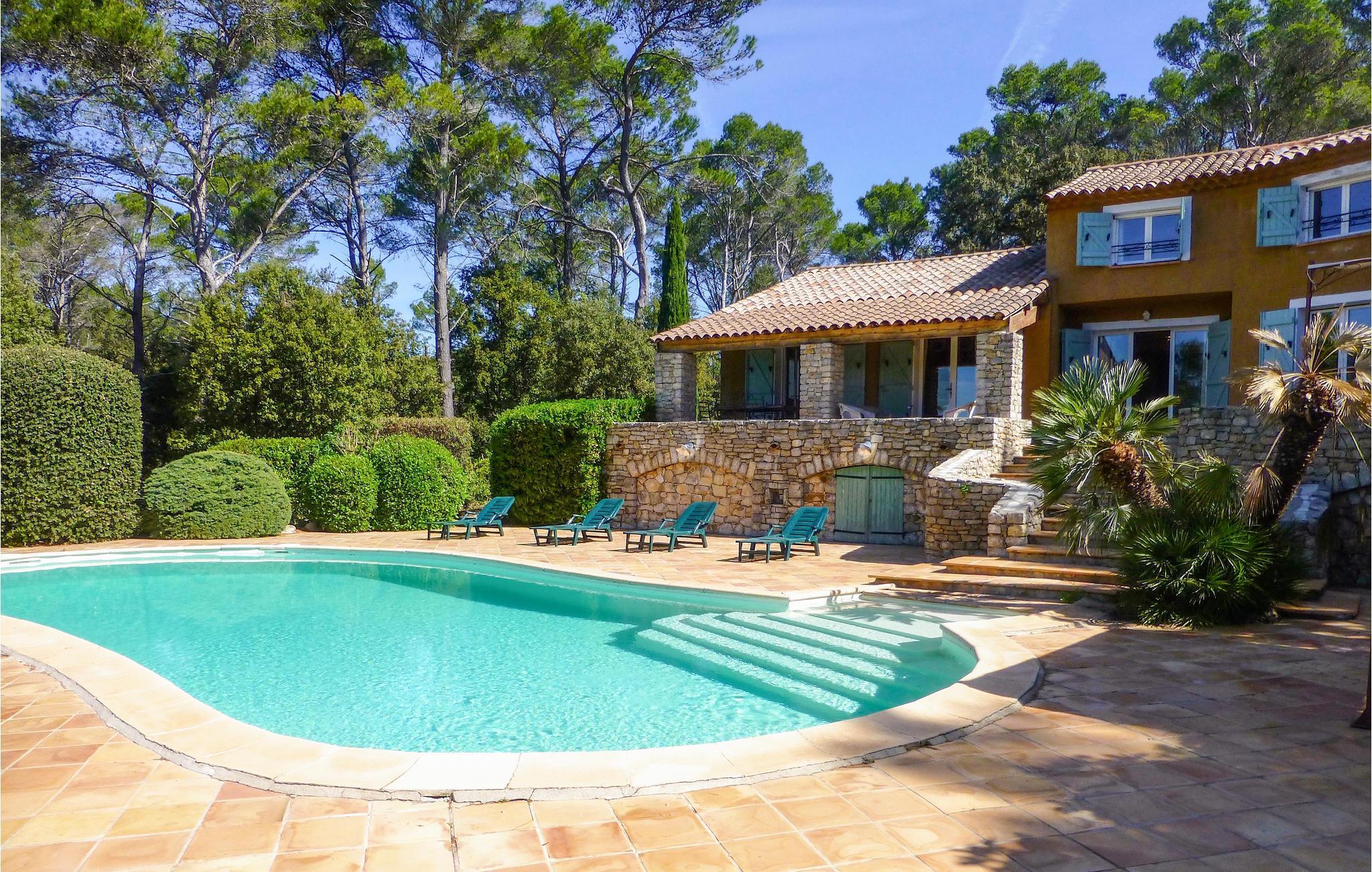 I regionen Provence-Alpes-Côte d'Azur välkomnar byn Entrecasteaux dig till detta vackra, höga semesterhus. Det ljusa huset är omgivet av tallar och cypresser och ger ett mycket charmigt intryck redan från utsidan. På insidan hittar du en smakfull interiör och härliga, kärleksfullt inredda rum. Här finns plats för upp till flera familjer för avkopplande semestrar och lugna nätter.