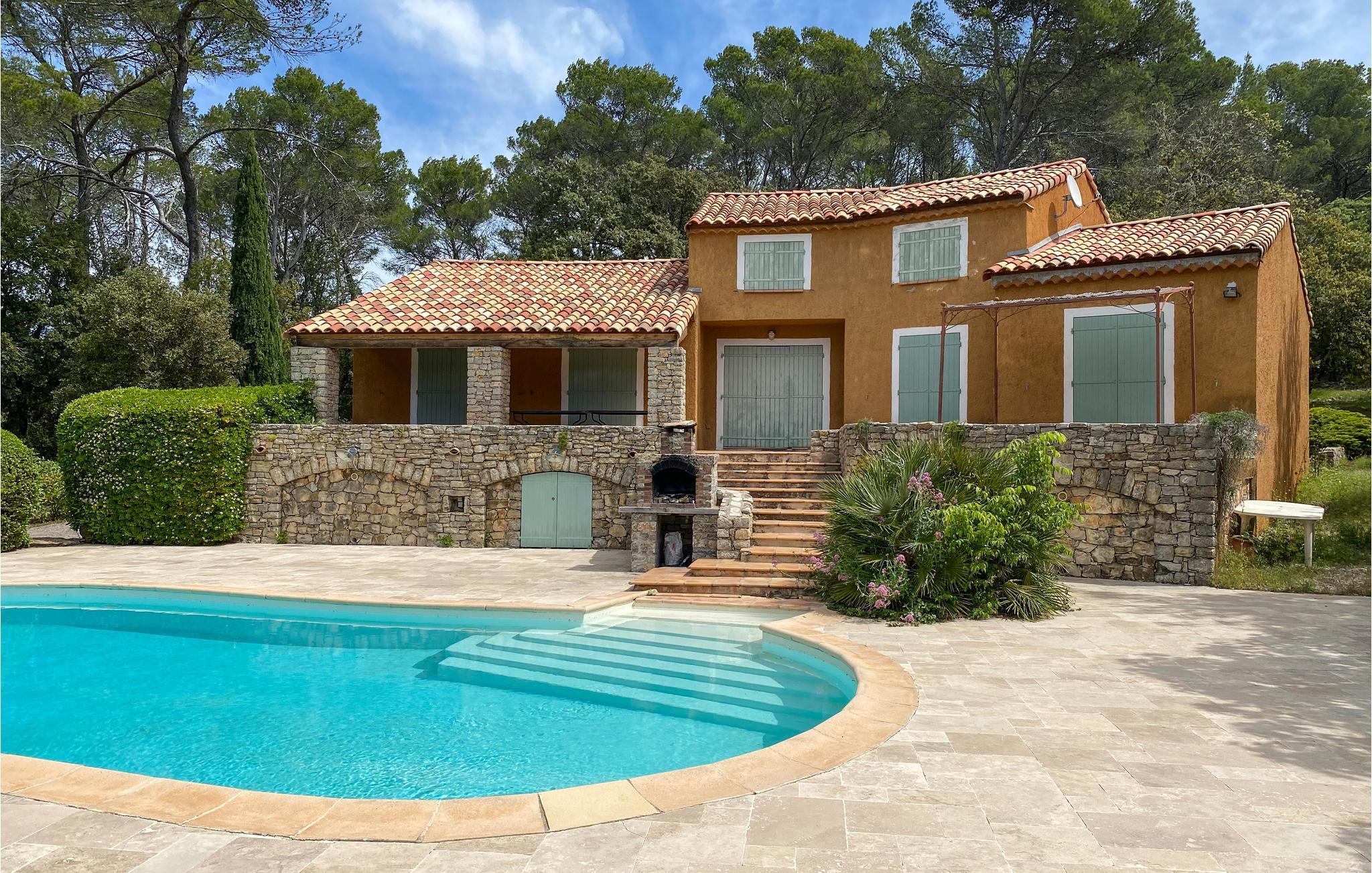 I regionen Provence-Alpes-Côte d'Azur välkomnar byn Entrecasteaux dig till detta vackra, höga semesterhus. Det ljusa huset är omgivet av tallar och cypresser och ger ett mycket charmigt intryck redan från utsidan. På insidan hittar du en smakfull interiör och härliga, kärleksfullt inredda rum. Här finns plats för upp till flera familjer för avkopplande semestrar och lugna nätter.