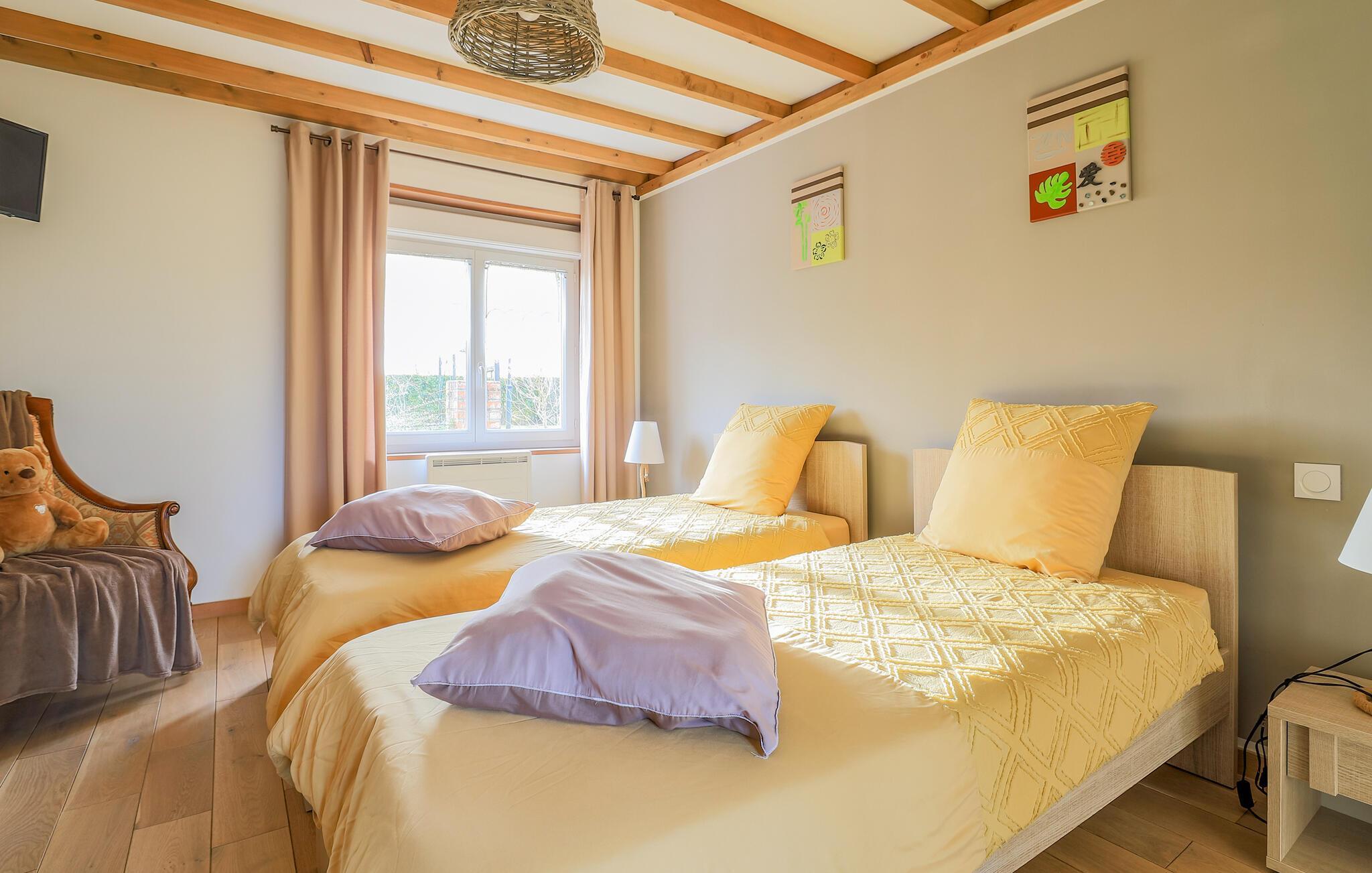 Detta semesterhus på bottenvåningen med ett mysigt lekgalleri erbjuder dig en oas av lugn och avkoppling mitt i den idylliska landsbygden nära Opalkusten. De smakfullt designade rummen och den separata relaxavdelningen med jacuzzi inbjuder er att lämna vardagen bakom er. De mysiga möblerna och det välutrustade köket gör din vistelse bekväm, medan terrassen och trädgården är den perfekta platsen att njuta av lugnet på landsbygden. Unna dig en avkopplande upplevelse i bastun eller hamamen, som finns tillgängliga på begäran.