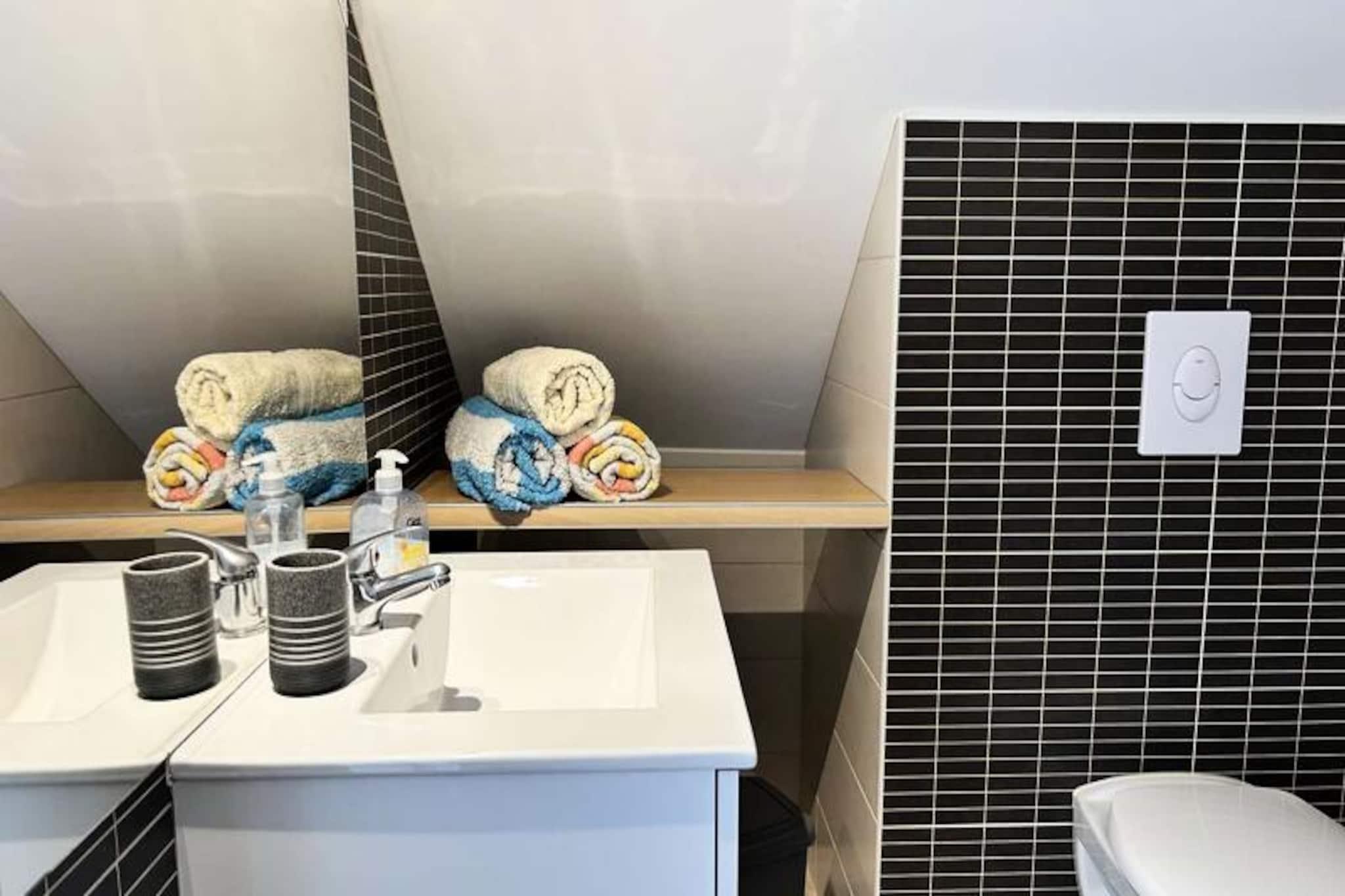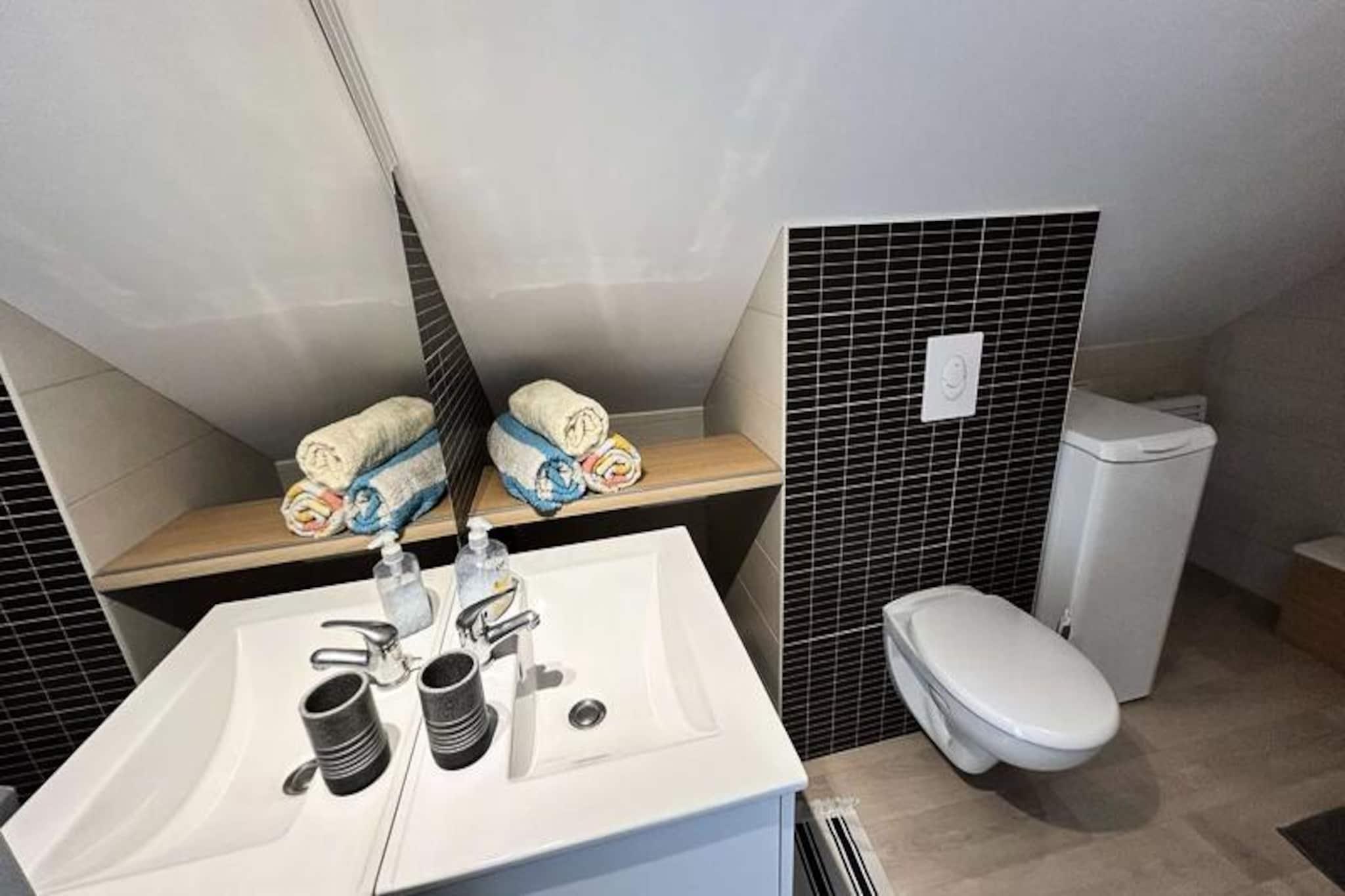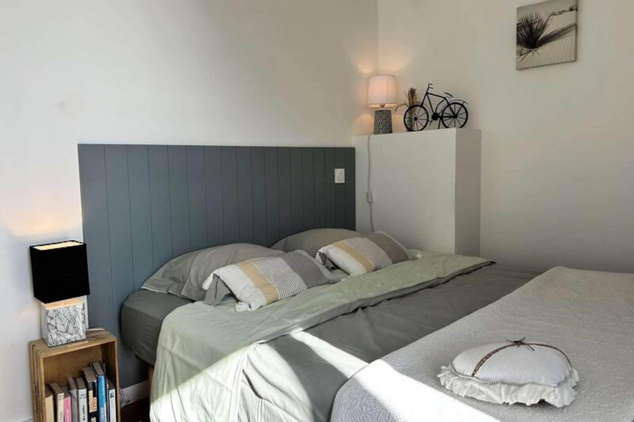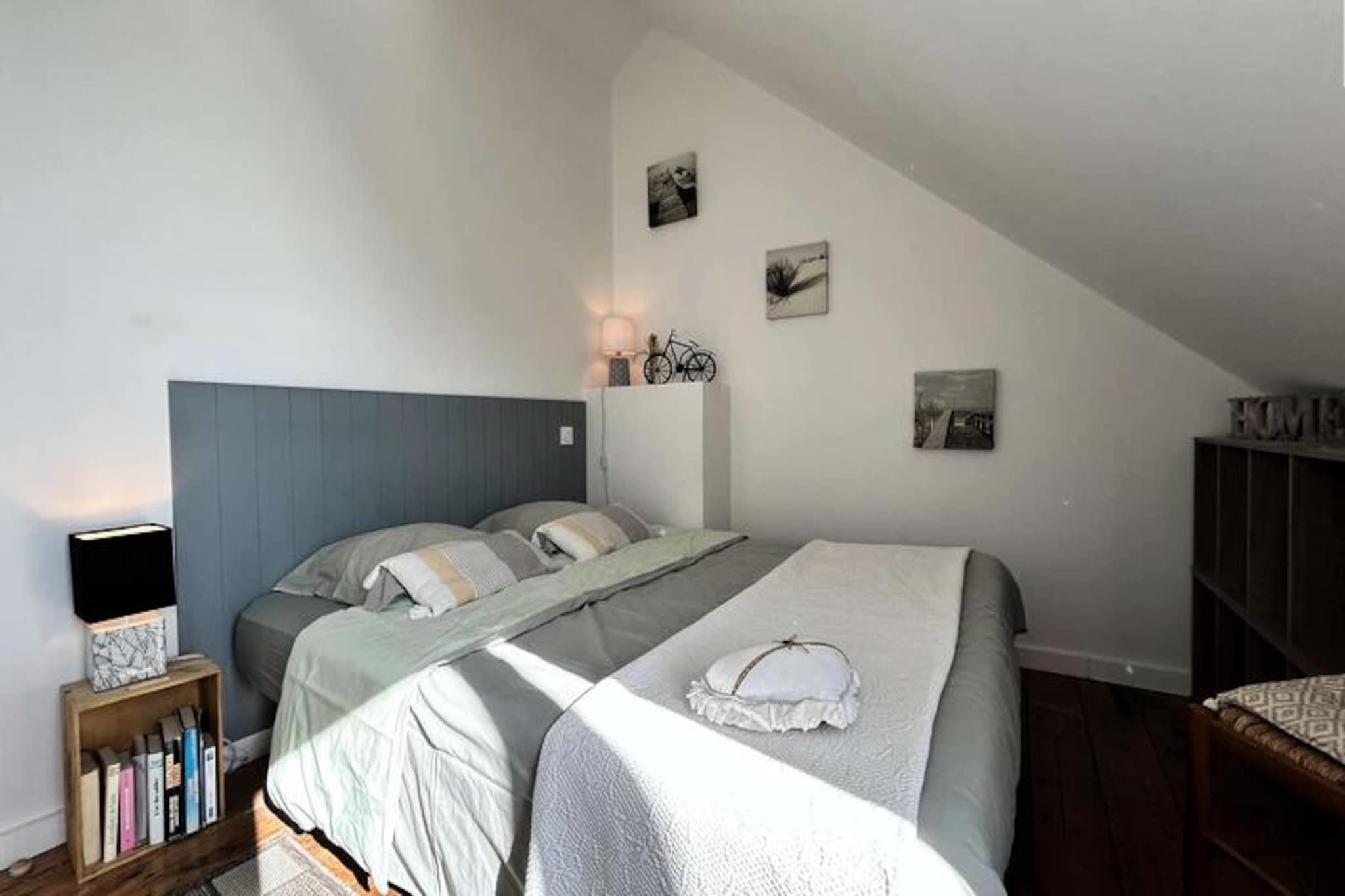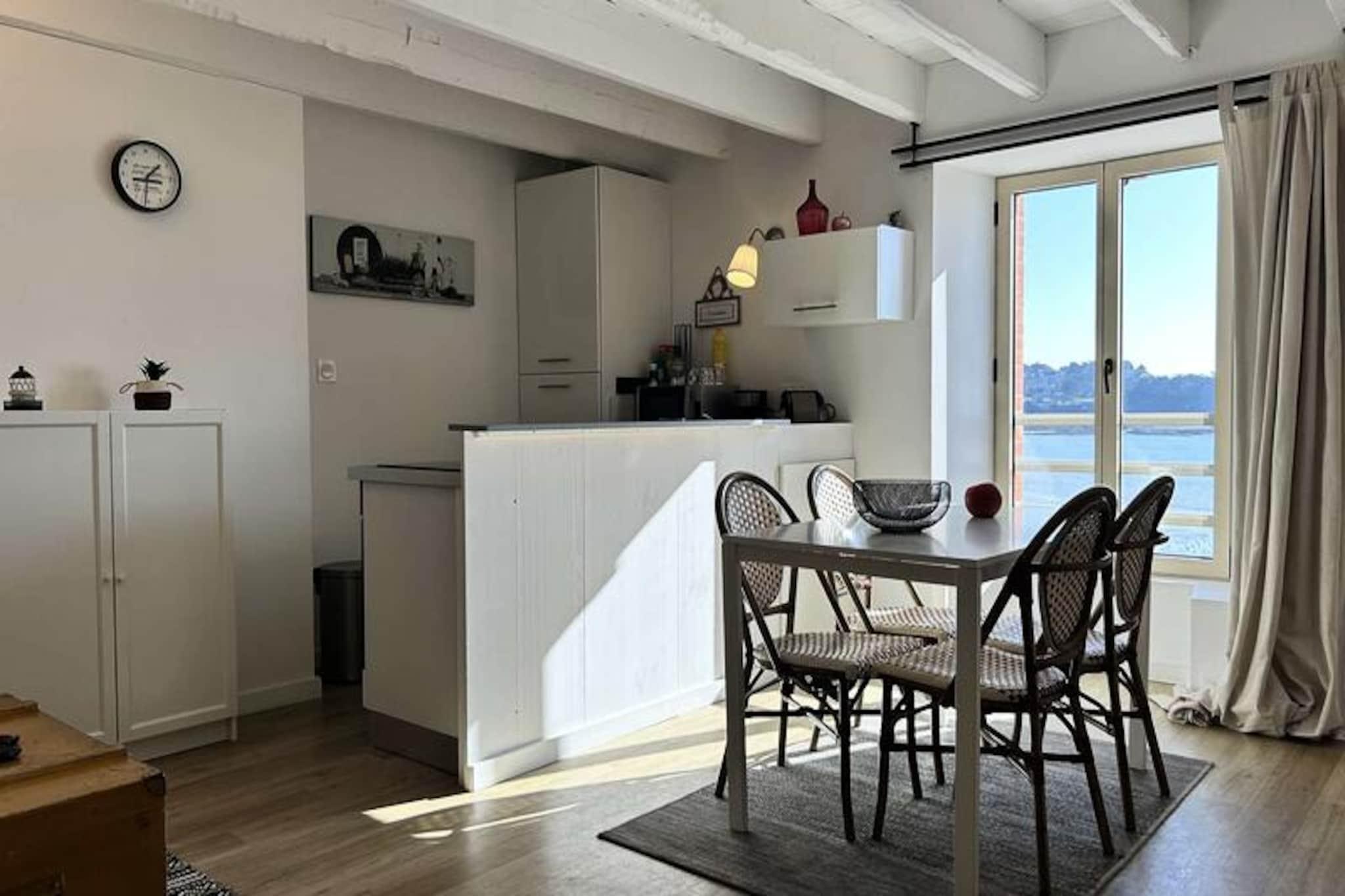 Vakna upp till den fascinerande utsikten över havshorisonten och den ikoniska Erquy-fyren från bekvämligheten i denna vackert renoverade duplexlägenhet. Belägen precis vid hamnen, fördjupar denna charmiga oas dig i Bretagnes autentiska kustcharm och erbjuder en perfekt blandning av avkoppling och äventyr. Oavsett om du promenerar längs hamnen eller njuter av den friska havsbrisen från ditt fönster, känns varje ögonblick här som ett vykort som vaknar till liv. Inuti är lägenheten noggrant utformad för att säkerställa att din vistelse blir lika bekväm som den är minnesvärd. Vardagsrummet, med sina mysiga fåtöljer, platt-TV och matbord för fyra, erbjuder en välkomnande plats att varva ner medan du njuter av panoramautsikt över hamnen och stranden. Köket med öppen planlösning är fullt utrustat med moderna apparater, inklusive diskmaskin, induktionshäll och Nespressomaskin, vilket gör matlagningen till en barnlek. På övervåningen finns sovrummen med ett lugnt sovrum med en queen size-säng och havsutsikt, ett andra sovrum med en enkelsäng och ett badrum med dusch och tvättmaskin. Wi-Fi finns tillgängligt i hela huset, och gratis parkering vid hamnen ökar bekvämligheten. Kliv ut, så befinner du dig bara några minuter från Erquys livliga butiker, härliga restauranger och sandstränder. Utforska de charmiga gatorna, njut av lokala skaldjursdelikatesser eller ge dig vidare för att upptäcka de fantastiska rosa sandstensklipporna och kuststigarna som gör denna region så unik. Oavsett om du söker en lugn tillflyktsort eller ett aktivt äventyr vid havet, placerar denna lägenhet dig i hjärtat av allt. Boka din vistelse nu och upplev magin i Bretagne från denna idylliska hamnparadis. Med sitt oslagbara läge, moderna bekvämligheter och hisnande utsikt är detta den perfekta miljön för att skapa oförglömliga minnen vid havet.
