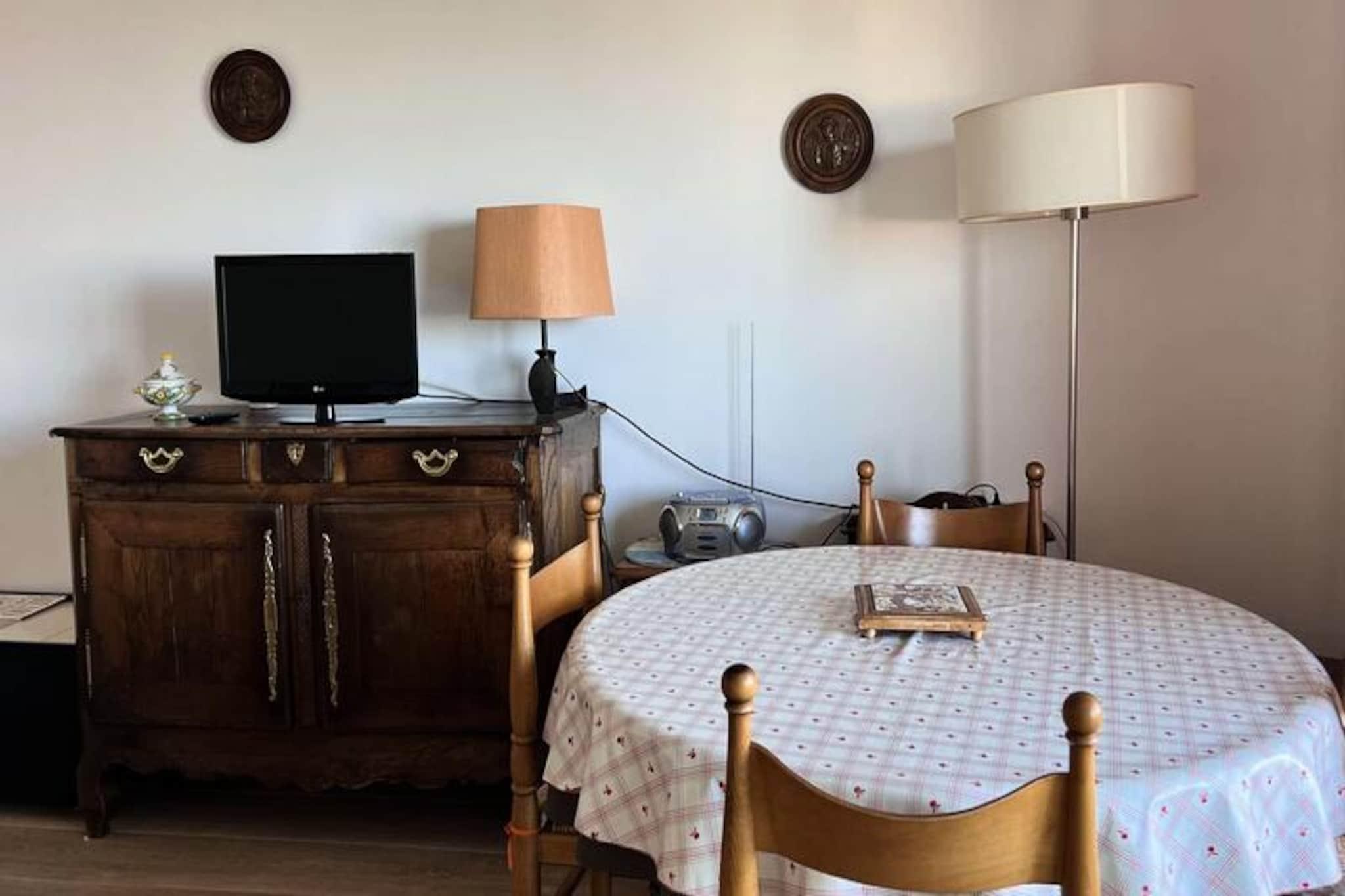Med utsikt över den pittoreska staden Erquy och det skimrande havet bortom, erbjuder denna förtjusande lägenhet en lugn tillflyktsort i hjärtat av Bretagnes fantastiska Côtes d'Armor-region. Med sin inbjudande atmosfär och omsorgsfullt designade interiör är det den perfekta tillflyktsorten för par eller små familjer som söker en blandning av komfort och kustnära charm. Vakna upp till den milda havsbrisen och njut av ditt morgonkaffe på den möblerade balkongen, där utsikten är helt fantastisk. Inuti har lägenheten ett rymligt och fullt utrustat kök, perfekt för att laga färska lokala skaldjur eller dina favoriträtter. Det ljusa vardagsrummet har en mysig loungedel och en matplats som inbjuder dig att njuta av måltider tillsammans, precis som hemma. Sovrummet, med sin bekväma dubbelsäng, lovar vilsamma nätter, medan det moderna badrummet med separat toalett garanterar bekvämlighet och avskildhet. Inkluderade bekvämligheter som Wi-Fi, hushållslinne och sängkläder gör din vistelse ännu bekvämare. Gå ut, så hittar du en särskild parkeringsplats precis framför bostaden, vilket gör det enkelt att utforska omgivningarna. Erquy, känt för sin charmiga hamn, sandstränder och livliga lokala marknader, ligger bara ett stenkast bort. Oavsett om du vandrar längs de dramatiska kustlederna, upptäcker regionens rika historia eller bara kopplar av vid havet, erbjuder denna plats oändliga möjligheter till äventyr och avkoppling. Välj denna lägenhet för en oförglömlig semester där Bretagnes skönhet möter hemmets bekvämligheter. Låt de fängslande landskapen och den varma gästfriheten i Côtes d'Armor skapa minnen du kommer att värdesätta för alltid.