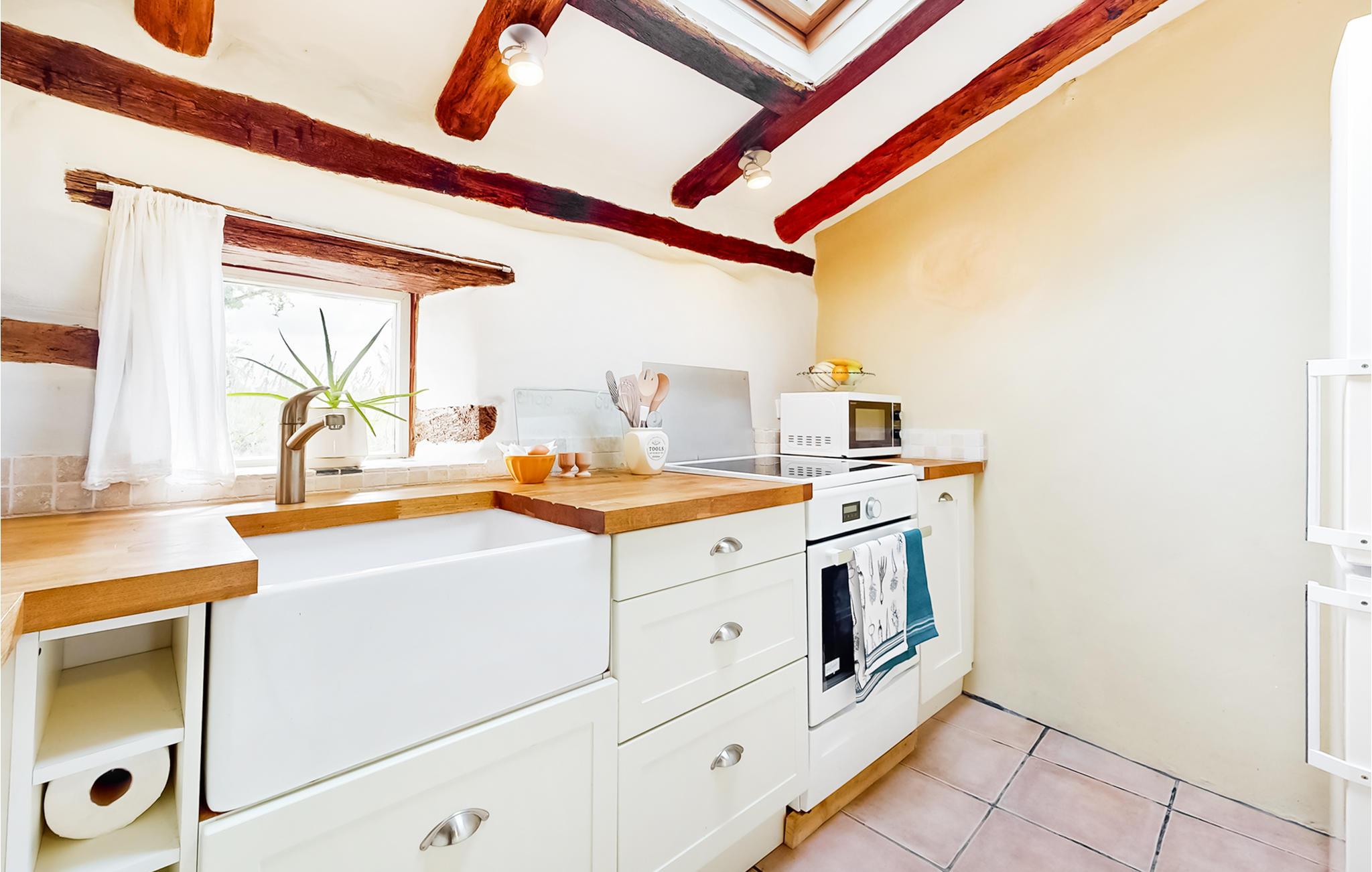 Välkommen till detta historiska stenhus, som välkomnar dig på ett idylliskt läge. Den moderna inredningen harmonierar vackert med husets ursprungliga element, vilket gör det till en mysig plats för en härlig semester för två. Koppla av under dekorativa takbjälkar vid den mysiga sprakande eldstaden.