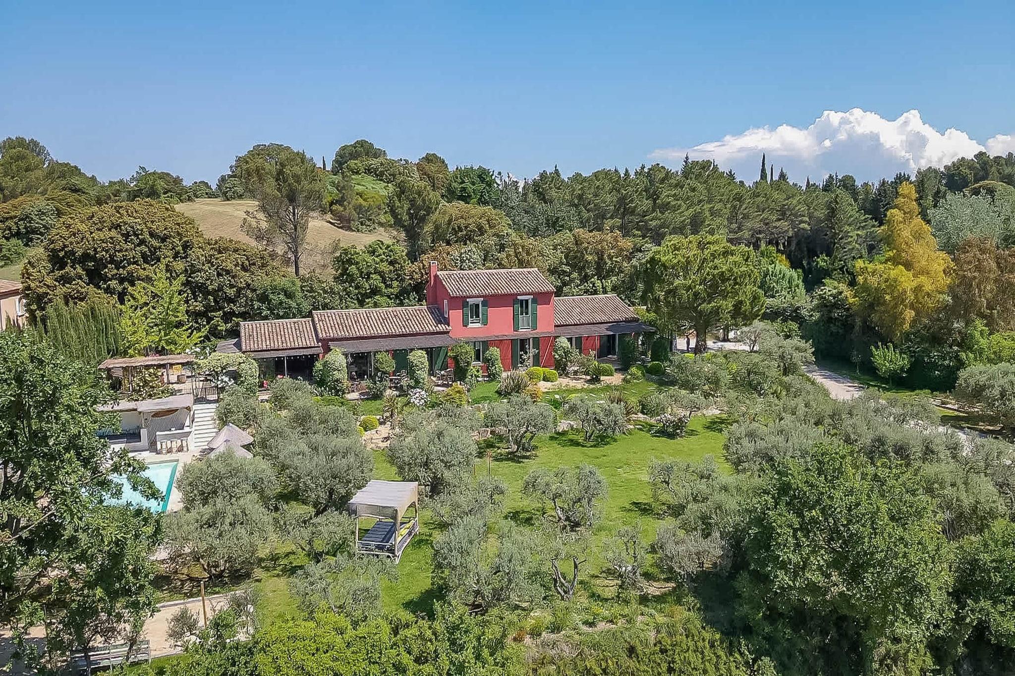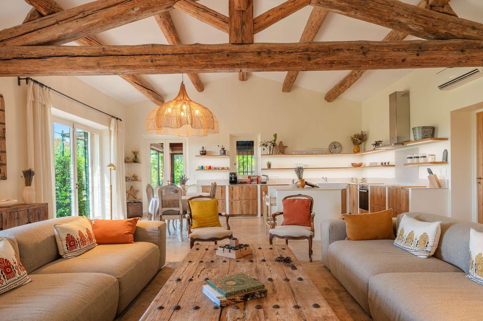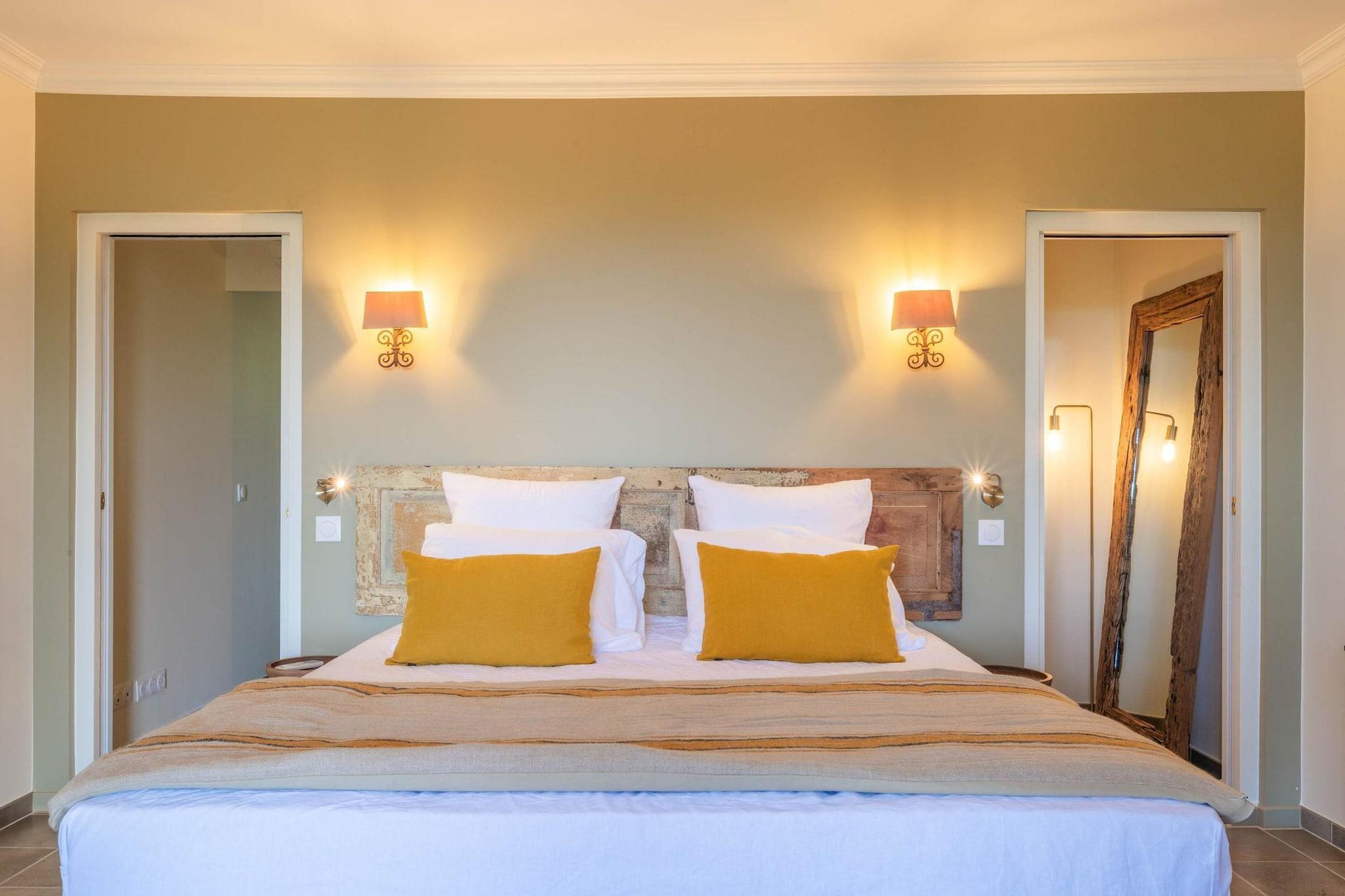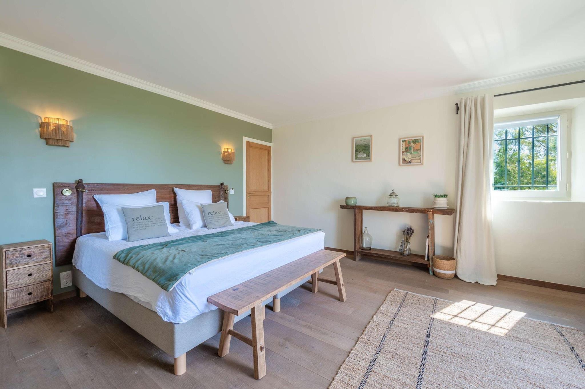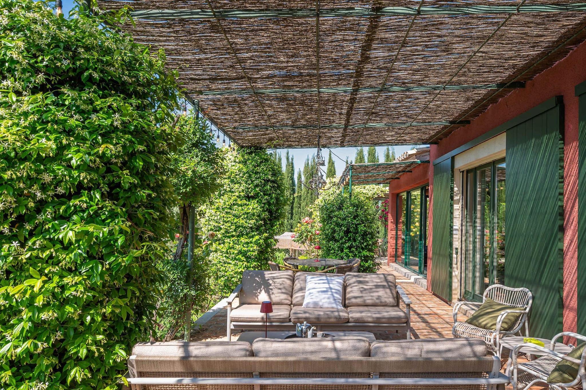 Belägen strax utanför den lilla provensalska byn Eyragues, erbjuder denna villa den typ av lugn där morgnarna börjar långsamt, dörrarna öppnas för solsken och dagarna utvecklas naturligt. Det är en bekväm bas för en familj eller vänner - en plats som är gjord för att vila ut ordentligt, dela måltider och utforska landsbygden i lugn takt. De fyra sovrummen med eget badrum och king size-sängar är inredda för enkel komfort, inklusive en rymlig garderob och rena, moderna badrum för att fräscha upp sig. Det finns ett femte sovrum med en dubbelsäng och även 2 spjälsängar för enkelhetens skull. Vardagsrummet känns välkomnande, möblerat för verklig användning - ett utrymme där du kan koppla av med en bok, streama en film på TV:n eller samlas på kvällen med vin och samtal. Med Wi-Fi, luftkonditionering och värme förblir huset behagligt under alla årstider. Matlagningen är enkel i det fullt utrustade köket, perfekt för en lätt frukost före marknadsdagen eller en lång middag hemma. Kliv ut och du hittar en privat trädgård och möblerad terrass, perfekt för kaffe i soluppgången eller en lugn kvällsmåltid utomhus. Gratis parkering på plats gör det bekvämare, särskilt om du utforskar närliggande städer. Eyragues ger dig Provences essens - smala stengator, bykaféer och en veckovis marknad fylld med färska råvaror, ost, honung och färgglada stånd under platanerna. Vandra lugnt eller kör ut i Alpilles för vandringsleder, vingårdar, romersk historia och städer på kullar som glöder vid solnedgången. Tyst, bekvämt och avkopplande - detta är en plats att andas, att varva ner, att njuta av Provence i din egen rytm.