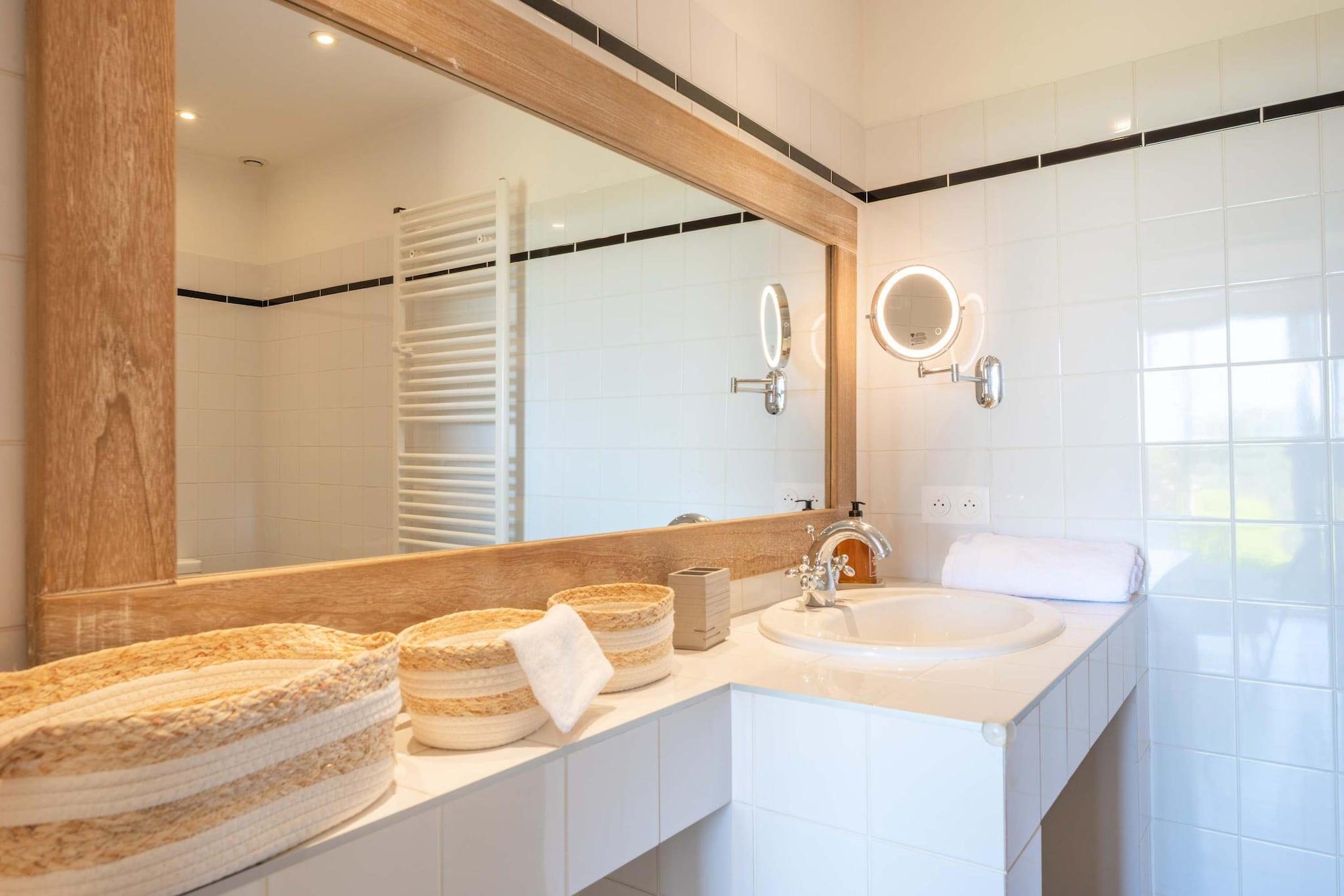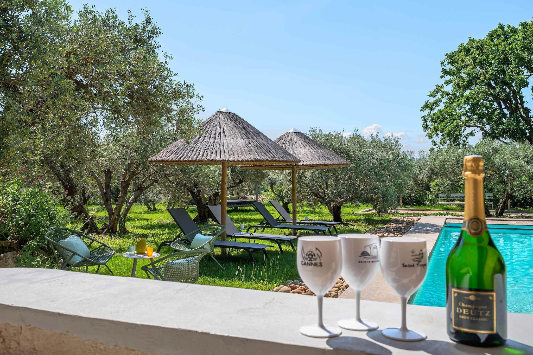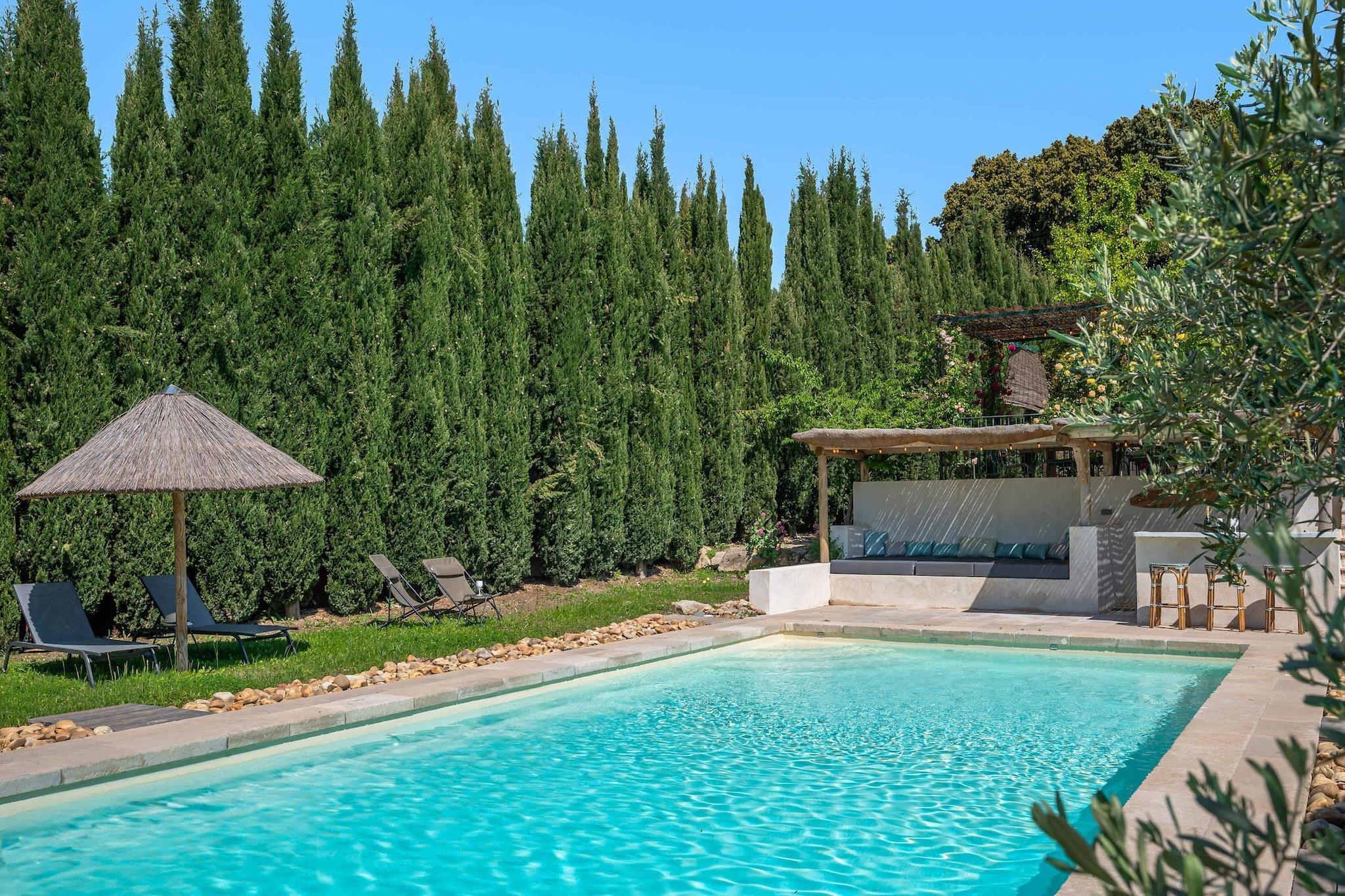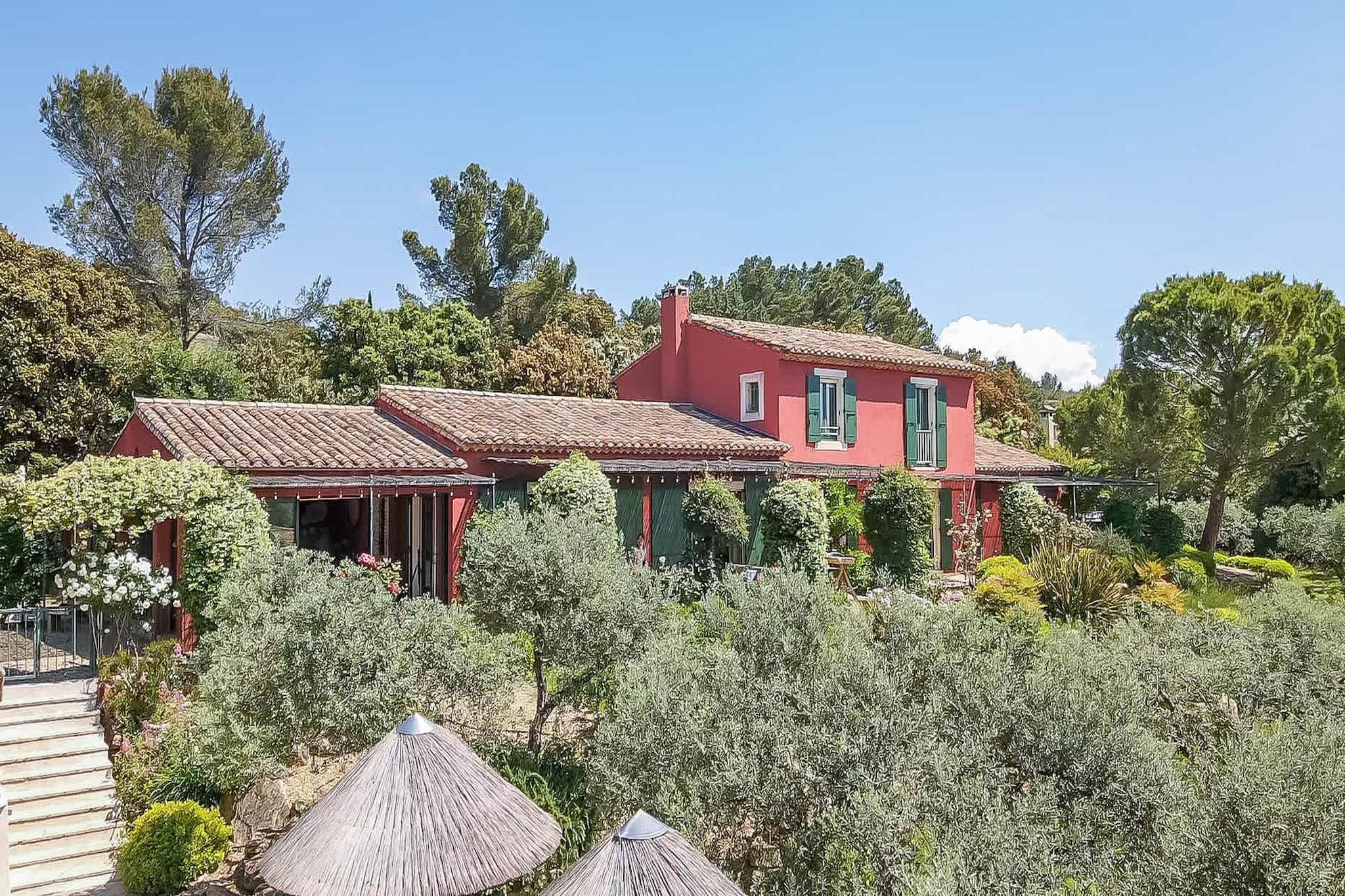Belägen strax utanför den lilla provensalska byn Eyragues, erbjuder denna villa den typ av lugn där morgnarna börjar långsamt, dörrarna öppnas för solsken och dagarna utvecklas naturligt. Det är en bekväm bas för en familj eller vänner - en plats som är gjord för att vila ut ordentligt, dela måltider och utforska landsbygden i lugn takt. De fyra sovrummen med eget badrum och king size-sängar är inredda för enkel komfort, inklusive en rymlig garderob och rena, moderna badrum för att fräscha upp sig. Det finns ett femte sovrum med en dubbelsäng och även 2 spjälsängar för enkelhetens skull. Vardagsrummet känns välkomnande, möblerat för verklig användning - ett utrymme där du kan koppla av med en bok, streama en film på TV:n eller samlas på kvällen med vin och samtal. Med Wi-Fi, luftkonditionering och värme förblir huset behagligt under alla årstider. Matlagningen är enkel i det fullt utrustade köket, perfekt för en lätt frukost före marknadsdagen eller en lång middag hemma. Kliv ut och du hittar en privat trädgård och möblerad terrass, perfekt för kaffe i soluppgången eller en lugn kvällsmåltid utomhus. Gratis parkering på plats gör det bekvämare, särskilt om du utforskar närliggande städer. Eyragues ger dig Provences essens - smala stengator, bykaféer och en veckovis marknad fylld med färska råvaror, ost, honung och färgglada stånd under platanerna. Vandra lugnt eller kör ut i Alpilles för vandringsleder, vingårdar, romersk historia och städer på kullar som glöder vid solnedgången. Tyst, bekvämt och avkopplande - detta är en plats att andas, att varva ner, att njuta av Provence i din egen rytm.