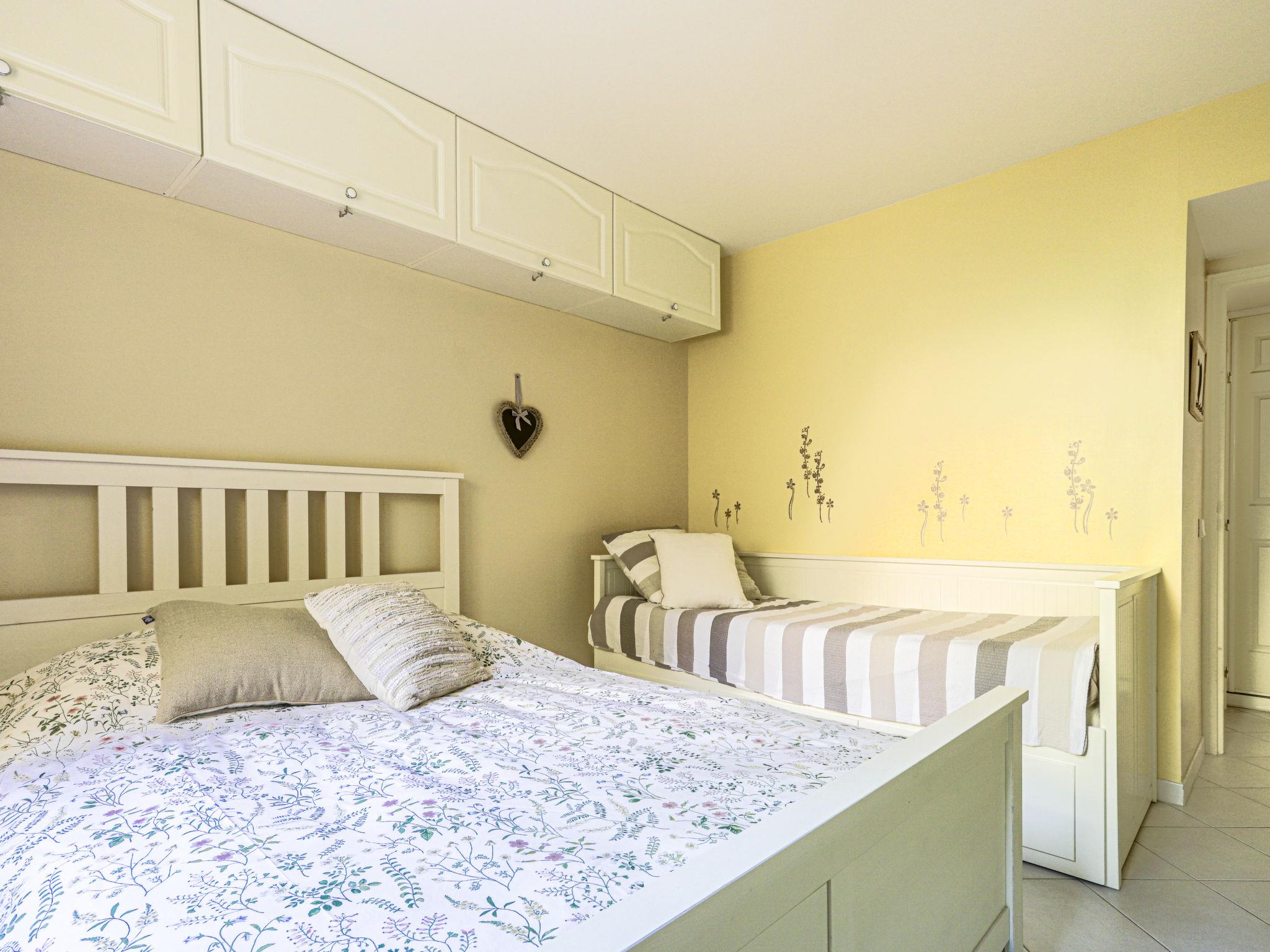 3-room apartment 60 m2 on 2nd floor. Bright, comfortable and modern furnishings: living/dining room with panoramic window with flat screen and electric heating. Exit to the terrace. 1 room with 1 french bed (160 cm, length 200 cm), shower/WC. 1 room with 1 bed (80 cm, length 190 cm), 1 double bed (160 cm, length 200 cm). Open kitchen (4 hot plates, oven, toaster, kettle, microwave, electric coffee machine). Bath/WC. Electric heating. Terrace 8 m2, south facing position. Terrace furniture, sitting area. Marvellous view of the sea and the swimming pool. Garage space n 20. Offer by a private individual according to Art. 155, IV of CGI. 06032034661DP