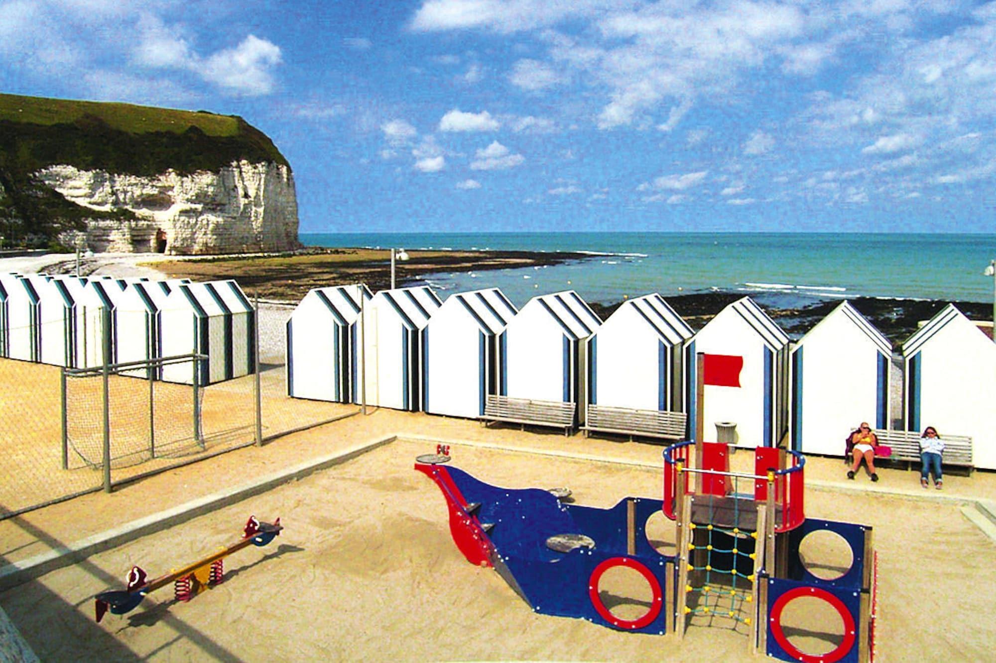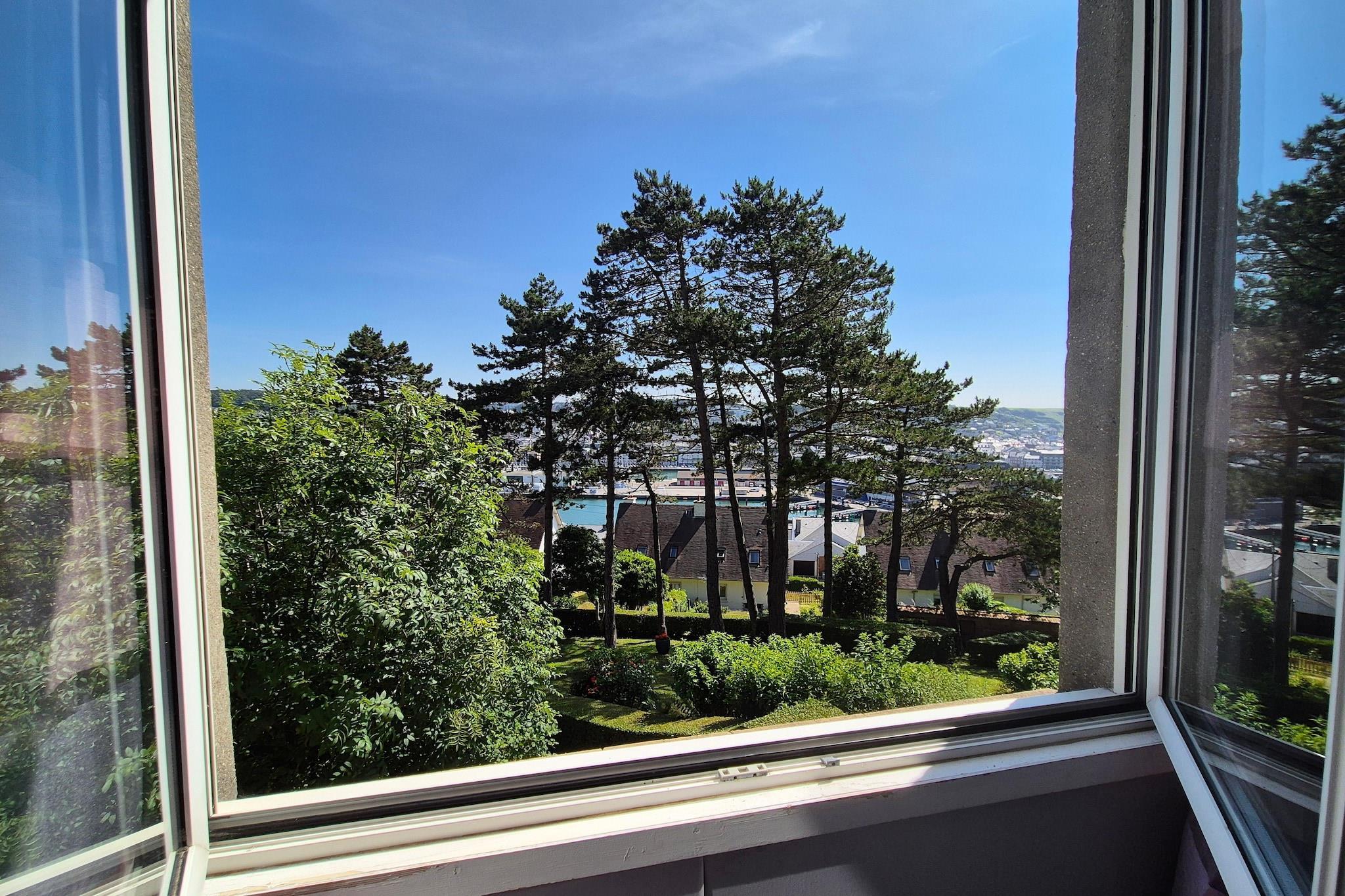 Mysig etagelägenhet, högt över Fécamps kritklippor. Från den privata terrassen på framsidan kan du njuta av vacker utsikt över den livliga hamnen och det omgivande kustområdet. Du har en egen ingång och trädgård på den 2 500 m² stora fastigheten i Normandie, som ligger i ett lugnt bostadsområde ovanför staden. I Fécamp besöker du klosterkyrkan la Trinité, Palais Bénédicte, en ståtlig byggnad som inrymmer destilleriet av den berömda Bénédictinelikören, och fiskemuseet. Aktiviteter i närheten: I sydväst ligger Etretat med sina hisnande klippor som har förevigats i århundraden av otaliga målare. Vi rekommenderar också en resa söderut över den imponerande bron från Normandie till Honfleur, en särskilt pittoresk hamnstad, eller till de glamorösa kuststäderna Deauville eller Trouville. I norr lockar Sommebukten, en av de vackraste vikar i världen.