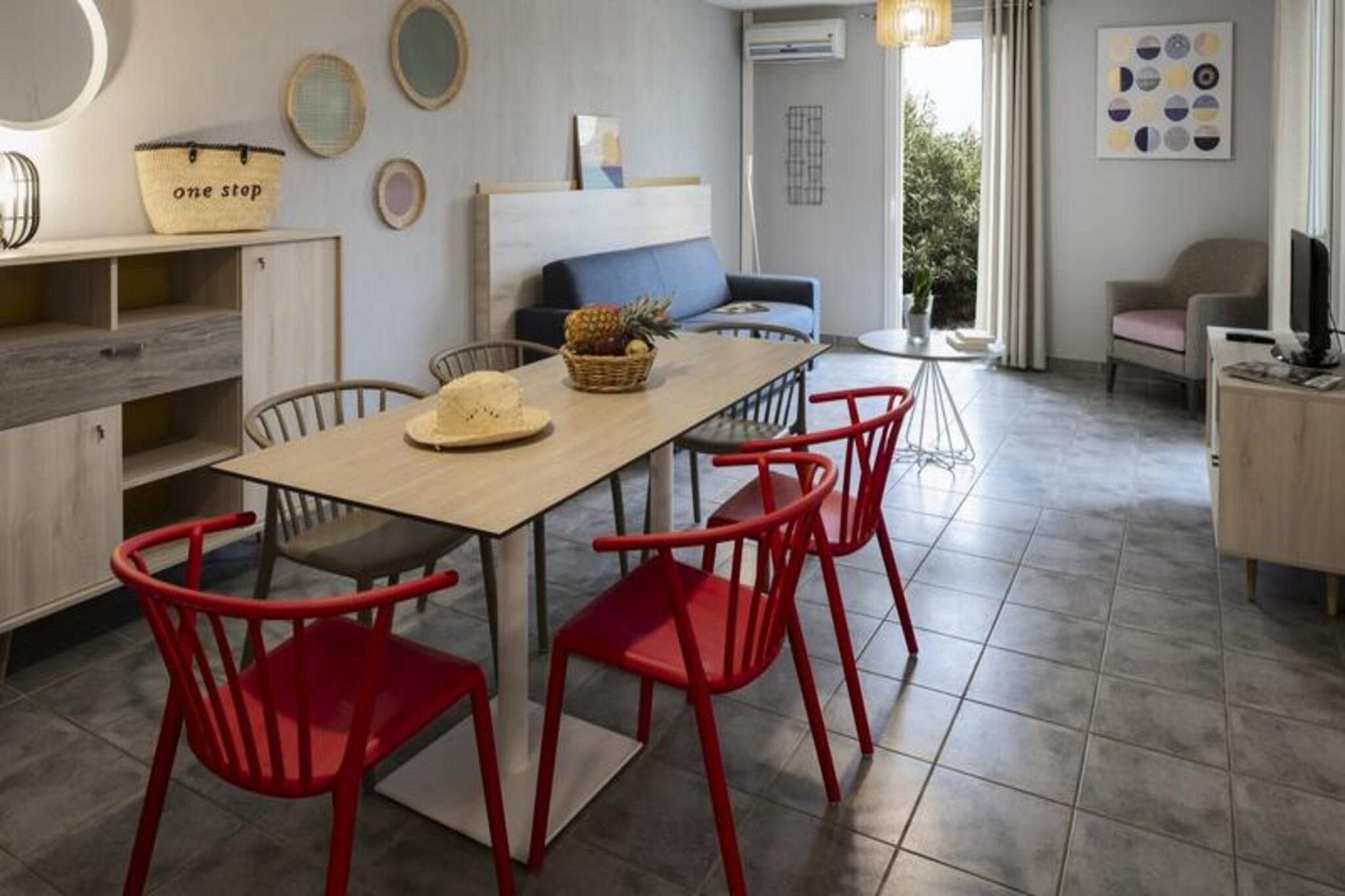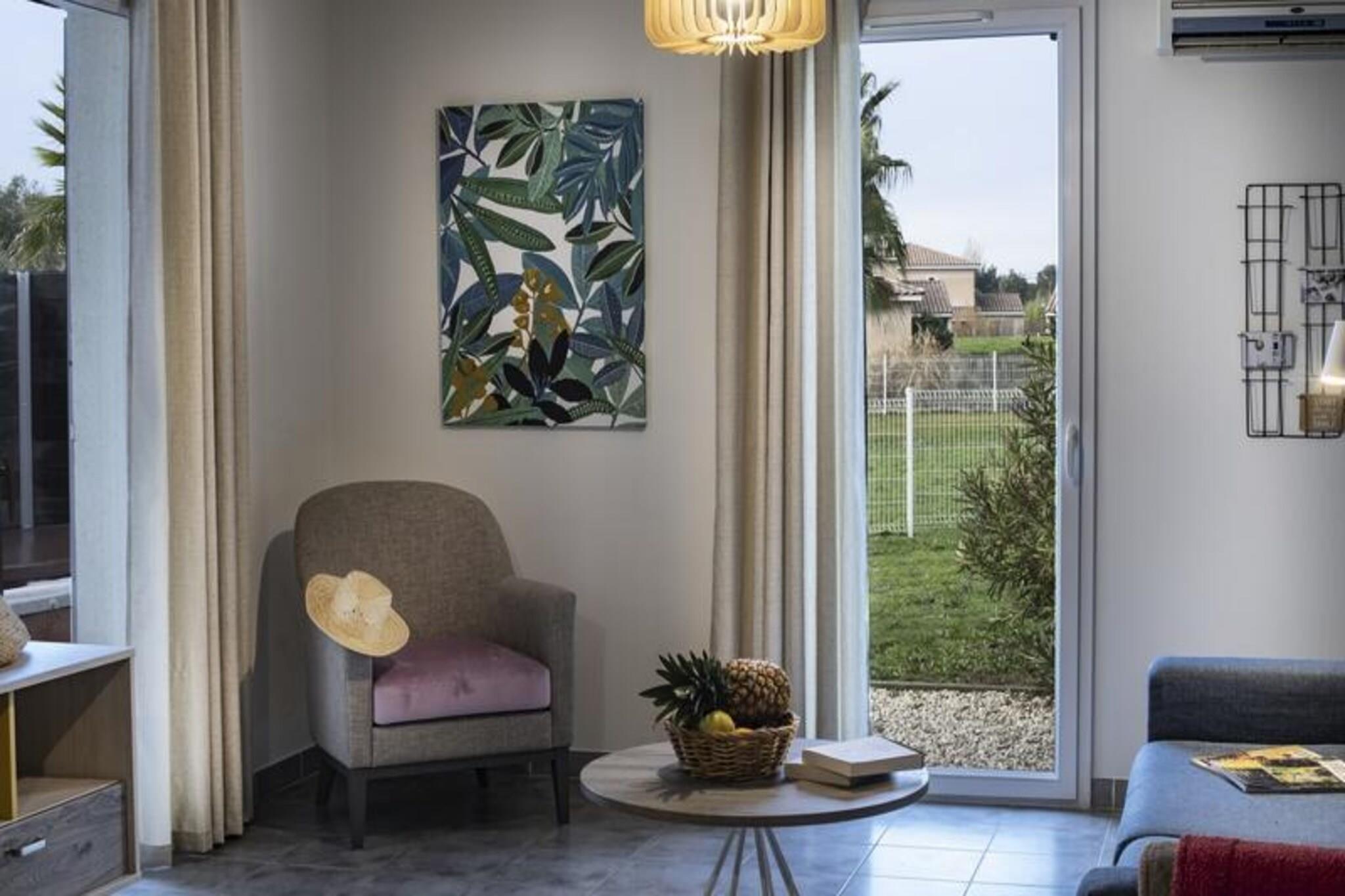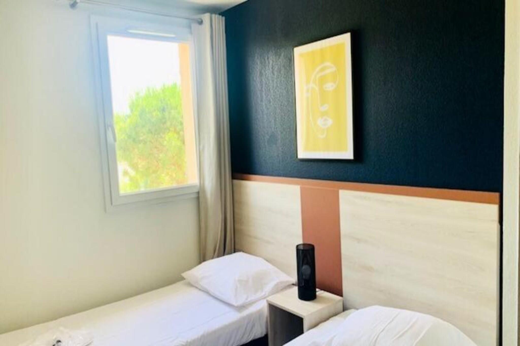 Beläget två kilometer från den lilla byn Fabrègues, några minuter från Montpellier och de vilda stränderna i Frontignan, ligger Residence Le Domaine du Golf*** inbäddat i hjärtat av en vingård, i en 11 hektar stor park. Du kommer att njuta av en fridfull och tyst miljö som bidrar till avkoppling. Idealisk bostad för att upptäcka arvet och charmen i Languedoc, dess stränder och dess gastronomi. The Residence erbjuder 218 hus i sydlig stil utspridda i hjärtat av en magnifik anlagd egendom. Gångstigar markerar området och låter dig ta dig till husen i fullständigt lugn. Du kan njuta av en stor 550 m² stor pool med plaskdamm samt ett luftkonditionerat gym. 4-rumsvilla 8 personer Comfort Luftkonditionerad med terrass: På bottenvåningen: Vardagsrum med bäddsoffa Köksdel 1 sovrum med 1 dubbelsäng + privat duschrum separat WC Terrass På övervåningen: 1 sovrum med 1 dubbelsäng 1 sovrum med 2 enkelsängar Badrum, WC Observera: Ett privat bubbelbad kan placeras på terrassen (förbokning krävs, mot en extra kostnad). Detta boende är arrangerat som ett duplex. Wifi - ingår (2 till 4 koder beroende på boende) - tilläggskod: 20€ / kod / vecka Husdjur tillåtna - endast 1 tillåtet per boende (1:a och 2:a kategorierna förbjudna) 10€ / djur / natt; 50€ / djur / vecka. Meddela vid bokningstillfället. Grill - 8EURO/dag eller 35EURO/vecka - Beroende på tillgänglighet Laddstation för elbilar - priser på plats Deposition (ytterligare) - 650 Avgift för slutstädning - 55€ för 95€ i hyresformel - ingår i hotellformeln - slutstädning kök: 40€ Babykit - lån av babykit (säng + barnstol, barn under 2 år) - förbokning krävs och i mån av tillgång Sängkläder - ingår (sängarna ej bäddade) - byte av lakan: 10€ / kit (obäddade sängar) Handdukar - 10€ / kit / person (1 badlakan + 1 handduk) Parkering - utomhusparkering ingår (vid ingången till bostaden) Pool - utomhuspool öppen från mitten av april till mitten av oktober beroende på väderförhållanden Frukostservice - 12€ / vuxen; 9€ / barn under 12 år - Gratis för barn under 4 år TV - ingår