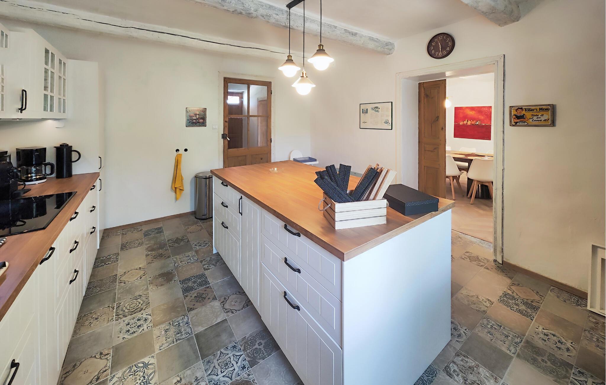 Tillsammans med storfamiljen eller ett par vänner kan ni tillbringa en oförglömlig semester i detta vackra och stilfulla hus. Njut av samspelet mellan de gamla väggarna och den moderna och smakfulla inredningen. Olika golv, som färgglada klinkergolv eller fiskbensparkett av hög kvalitet, bidrar till trivseln. Njut av vilsamma nätter i de bekväma sovrummen och samlas till frukost vid matbordet på morgonen.