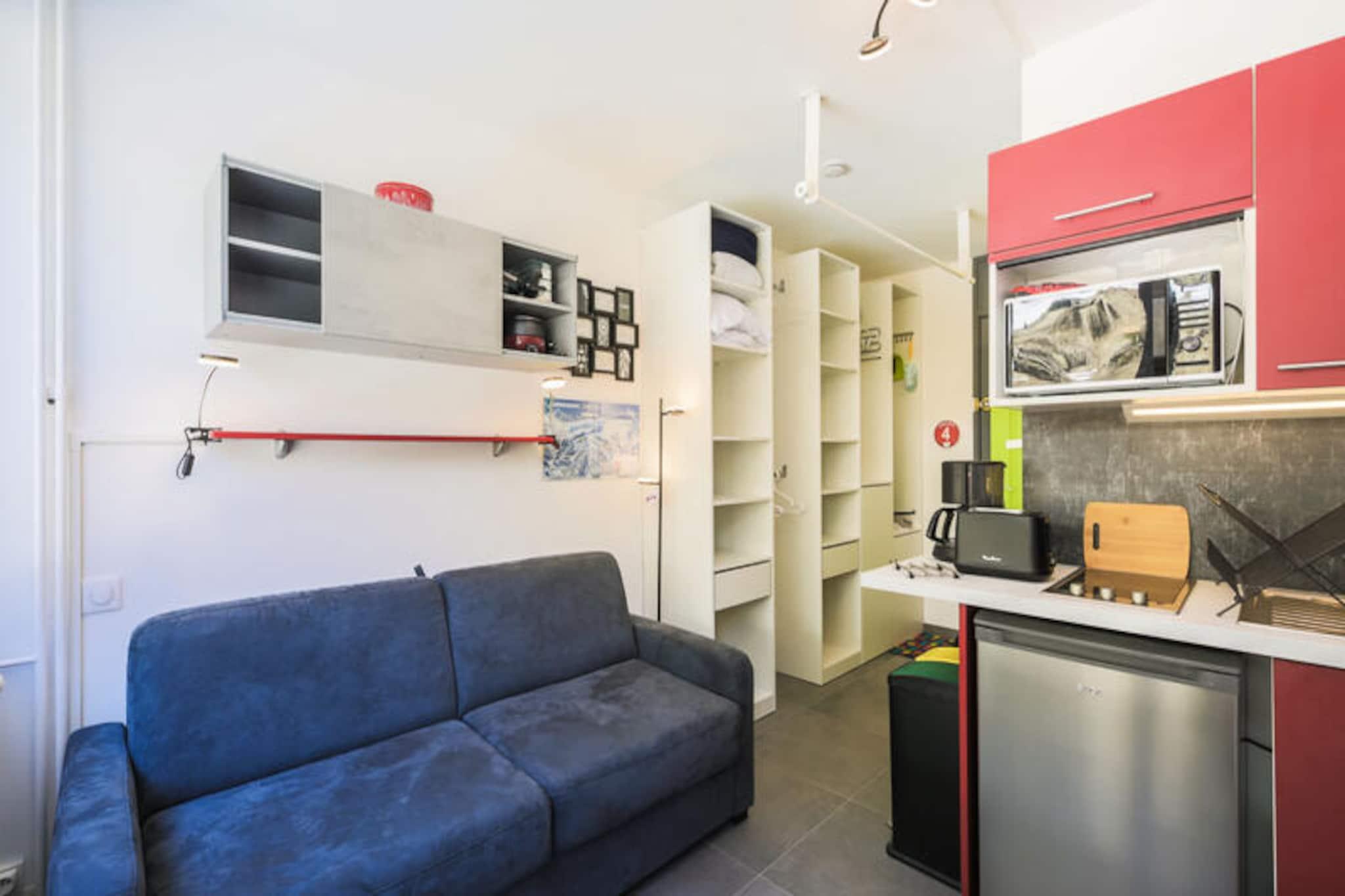 I det fridfulla Front de Neige-distriktet i Flaine väntar dig en mysig alpin tillflyktsort på Bellatrix Residence. Med bekvämligheten med ski-in/ski-out och närhet till de första skidliftarna bara 75 meter bort, erbjuder denna anläggning en oöverträffad inkörsport till det berömda skidområdet Grand Massif. Tänk dig att stiga ut genom din dörr och glida direkt ut i backarna, omgiven av de franska Alpernas hisnande skönhet. Oavsett om du är en ivrig skidåkare eller bara söker en lugn flykt till bergen, sätter denna anläggning den perfekta tonen för din semester. Studioen, trots sin kompakta yta på 14 m², är noggrant utformad för att maximera komfort och funktionalitet. Den har ett vardagsrum med en bäddsoffa som bekvämt rymmer två personer, ett öppet kök utrustat för att laga mat och ett välskött badrum med separat toalett. Den norrvända utsikten över skogen ger en lugn touch, vilket gör den till en idealisk plats att varva ner på efter en dag av äventyr. Även om anläggningen inte har någon balkong eller terrass, garanterar dess mysiga interiör och praktiska bekvämligheter en trevlig vistelse. Beläget på första våningen i Flaine-anläggningen, är residenset omgivet av några butiker och erbjuder enkel tillgång till det livliga Flaine Forum via charmiga stigar. Här hittar du en pulserande shoppinggalleria, många barer och restauranger, samt en mängd olika aktiviteter för att fördjupa dig i anläggningens dynamiska atmosfär. Oavsett om du njuter av lokal mat eller utforskar det kulturella utbudet, finns det något för alla. Välj Bellatrix Residence för dess oslagbara läge, direkta tillgång till backen och löftet om oförglömliga alpina minnen. Perfekt för par eller ensamresenärer, denna studio är din port till magin i Flaine och Grand Massif.