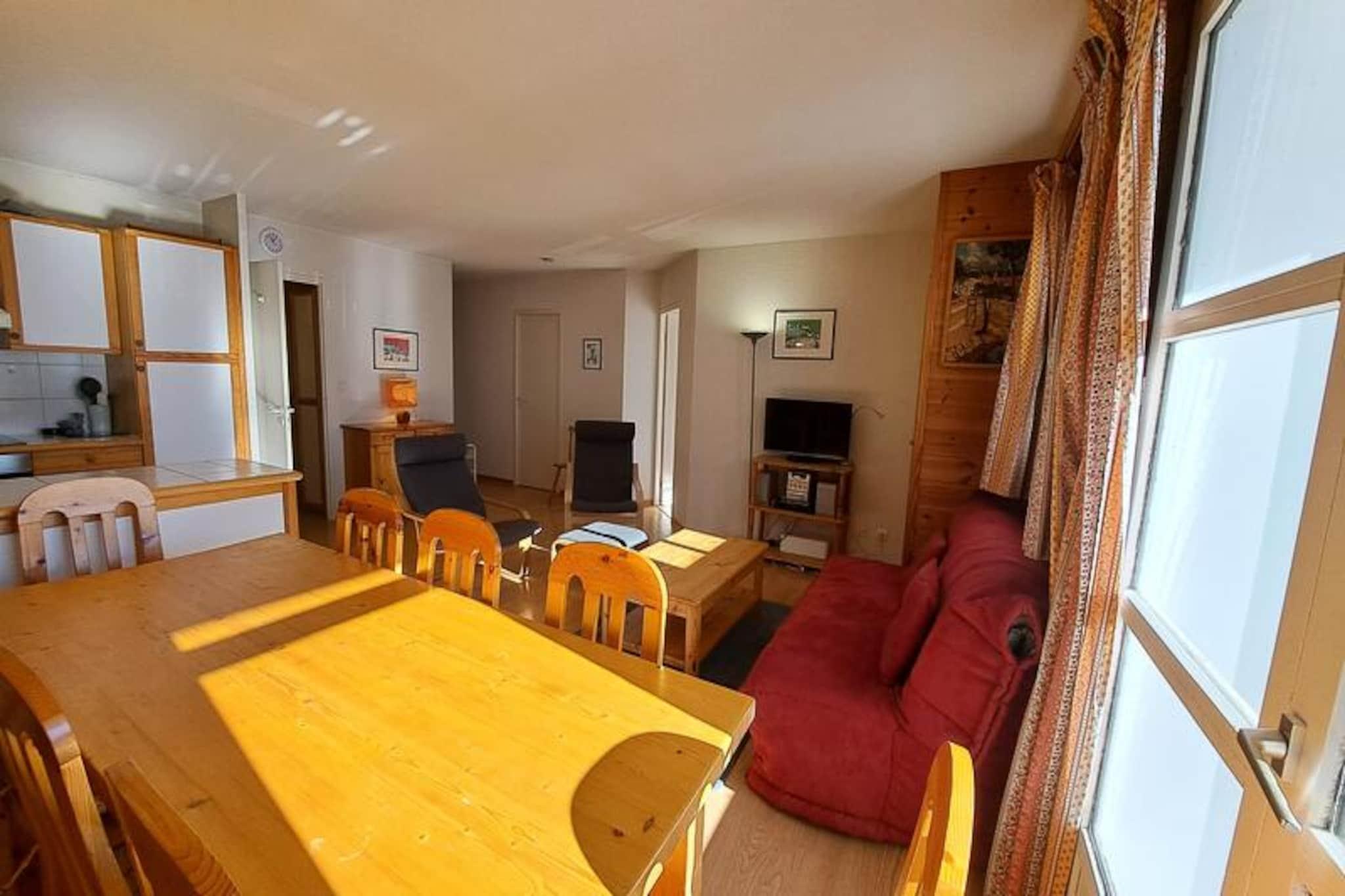 Högt ovanför den pittoreska semesterorten Flaine erbjuder Le Château de Crans Residence en lugn alpin reträtt på 1 800 meters höjd. Denna trächalet i skandinavisk stil rymmer 11 mysiga och fullt utrustade lägenheter som blandar rustik charm med moderna bekvämligheter. Från din balkong kan du njuta av hisnande panoramautsikt över de majestätiska alptopparna medan du njuter av lugnet i detta lugna och autentiska hörn av Flaine. Oavsett om du planerar en aktiv skidsemester eller en fridfull bergsflykt, erbjuder denna residens den perfekta balansen mellan avkoppling och äventyr. Inuti din 60 m² stora lägenhet hittar du ett varmt och inbjudande utrymme designat för upp till sex gäster. Vardagsrummet har en bekväm bäddsoffa, medan de två sovrummen har en dubbelsäng och våningssängar, perfekt för familjer eller små grupper. Köket med öppen planlösning är utrustat för att laga rejäla måltider, och matplatsen har bekvämt plats för åtta personer. Efter en dag i backarna kan du varva ner i din privata bastu eller njuta av ett avkopplande bad i badkaret. Moderna bekvämligheter som Wi-Fi (tillgängligt mot en extra kostnad) och en balkong med fantastisk utsikt garanterar en bekväm och minnesvärd vistelse. Residenset är idealiskt beläget bara 500 meter från ESF:s mötesplatser och Piou Piou Club, vilket gör det till ett bekvämt val för familjer med unga skidåkare. Tillgång till backarna är enkel via den närliggande