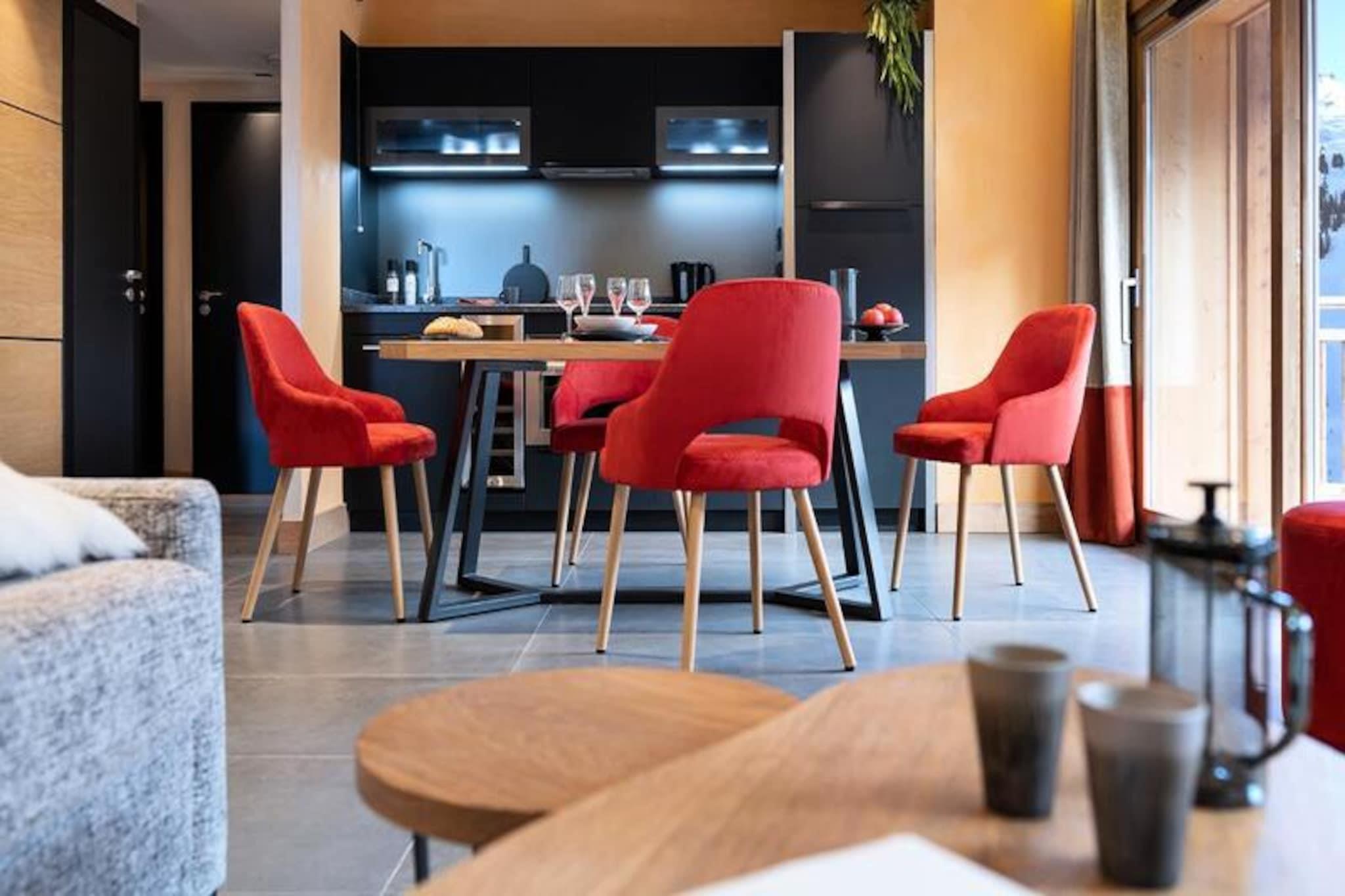 Högt ovanför det pittoreska Grand Massif erbjuder Alhena Residence i Flaine Forum en enastående alpin tillflyktsort där lyx möter äventyr. Tänk dig att vakna upp till den friska bergsluften, kliva ut på din privata balkong för att njuta av den fantastiska utsikten över backarna och sedan direkt ge dig ut på en dag med skidåkning med pisterna precis utanför dörren. Denna 5-stjärniga residens kombinerar modern elegans med charmen i de franska Alperna och skapar den perfekta tillflyktsorten för familjer, par eller grupper som söker både komfort och bekvämlighet. Residenset har en rad exklusiva bekvämligheter, inklusive ett 1000 m² stort wellnessområde med uppvärmd inomhuspool och barnpool, en avkopplande loungebar och ett fullt utrustat kök i varje lägenhet. De genomtänkta bostadsutrymmena inkluderar ett mysigt vardagsrum med bäddsoffa, ett sovrum med en bekväm dubbelsäng, ett modernt badrum och en separat toalett. Familjer kommer att uppskatta babykitet, komplett med barnsängar, barnstolar och mycket mer, medan matälskare kan njuta av bekvämligheten med att hyra raclette- och fonduegrillar för en autentisk alpin matupplevelse. Residenset ligger i hjärtat av Flaine Forum, bara några steg från butiker, restauranger och en mängd olika aktiviteter. Oavsett om du utforskar det livliga semesterorten, njuter av afterski-nöjen eller ger dig ut för att upptäcka Grand Massifs naturskönhet, finns allt du behöver inom räckhåll. På sommaren förvandlas regionen till en oas för vandrare och mountainbikecyklister, med oändliga möjligheter att komma i kontakt med naturen. Med sitt utmärkta läge, lyxiga bekvämligheter och hisnande omgivningar är Alhena Residence mer än bara ett ställe att bo på – det är en inbjudan att skapa oförglömliga minnen i hjärtat av de franska Alperna.