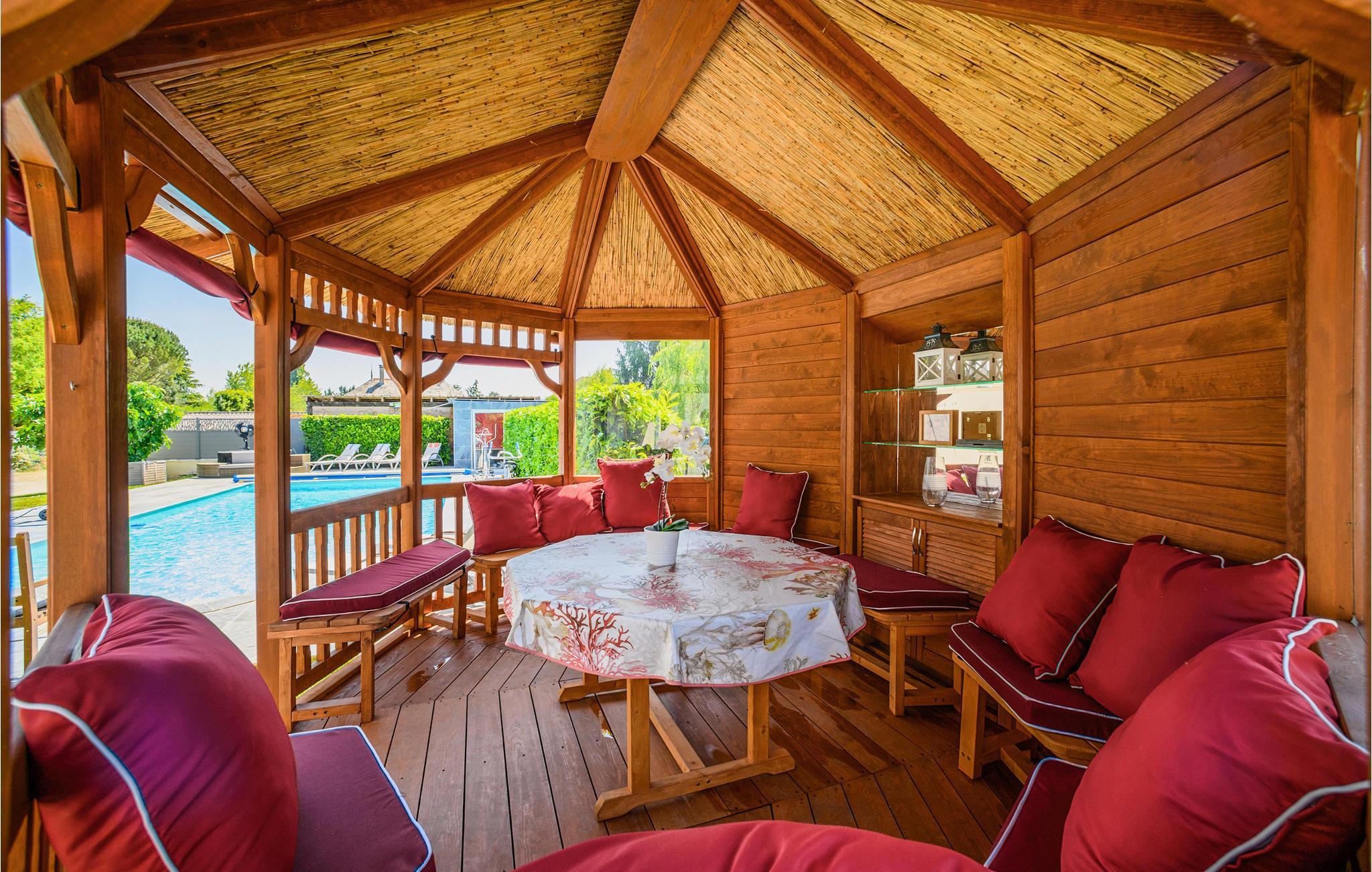 Avbryt solbadandet på terrassen för att ta ett dopp i poolen eller spela en omgång bordtennis, och njut av kalla drycker och läckra grillrätter i de bekväma loungemöblerna.