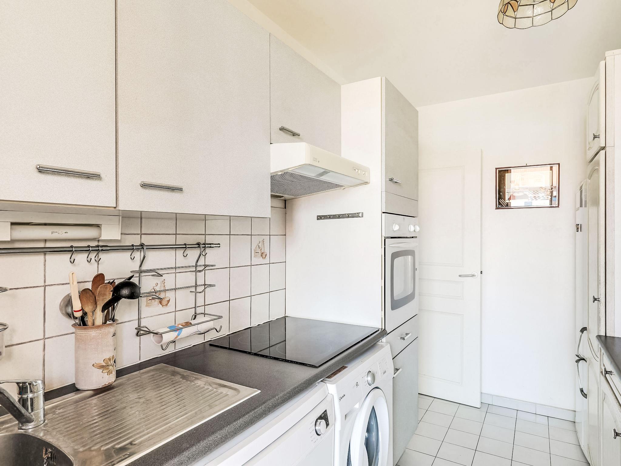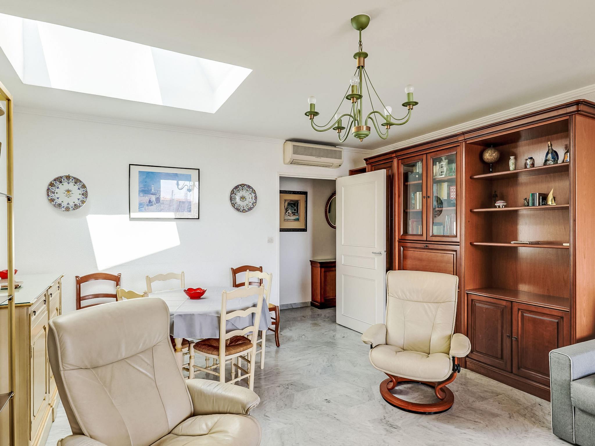 3-room apartment 65 m2 on 4th floor. Living/dining room with 1 double sofabed (1 x 140 cm, length 190 cm), dining table, TV, flat screen, electric heating and air conditioning. Exit to the terrace. 1 room with 1 double bed (1 x 160 cm, length 190 cm), air conditioning. 1 room with 2 beds (90 cm, length 190 cm). Kitchen (oven, dishwasher, 3 induction hot plates, toaster, kettle, microwave, freezer, electric coffee machine). Shower, bidet, sep. WC. Terrace 5 m2. Terrace furniture. View of the port. Facilities: washing machine, iron, hair dryer. Internet (WiFi, free). Garage space n 87, height 180 cm, width 210 cm. Please note: smoke alarm. Offer by a private individual according to Art. 155, IV of CGI.