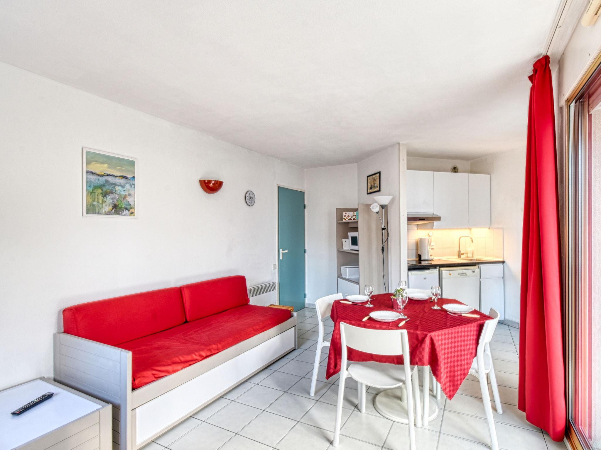 2-room apartment 42 m2 on 1st floor. Living/dining room with 1 bed (80 cm, length 190 cm), 1 pull-out bed (2 x 80 cm, length 190 cm), TV, air conditioning and electric shutters. Exit to the balcony. 1 room with 1 french bed (140 cm), shower/WC. Open kitchen (dishwasher, 2 induction hot plates, microwave, electric coffee machine). Electric heating. Balcony furniture. Facilities: Internet (WiFi, free). Parking space n 7072 (roofed), height 190 cm, width 196 cm. Please note: apartment street side. Smoke alarm.