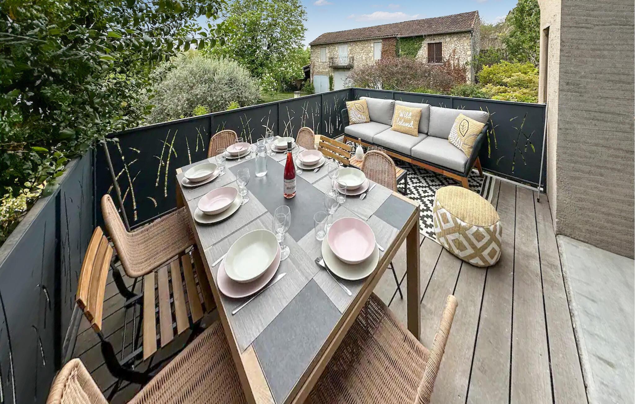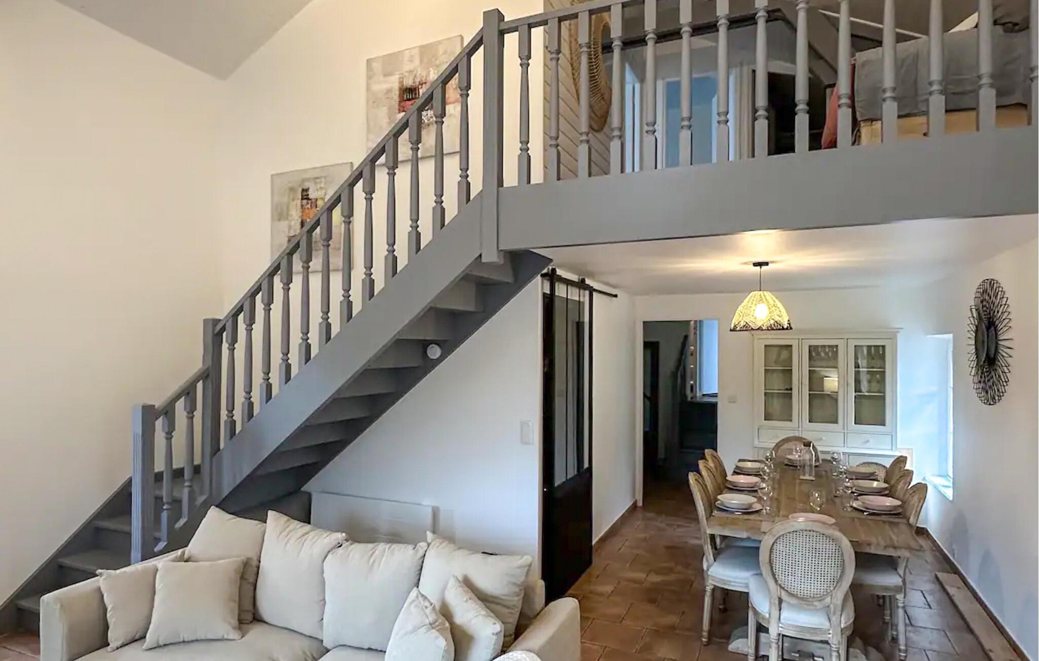 Välkommen till detta vackra semesterhus med ett idylliskt läge i centrum av byn. Den moderniserade provensalska bondgården är mysig och smakfullt inredd och den perfekta platsen för att njuta av en varierad semester. Gör dig bekväm i den mysiga soffan på kvällen och njut av måltiderna tillsammans vid det långa matbordet.