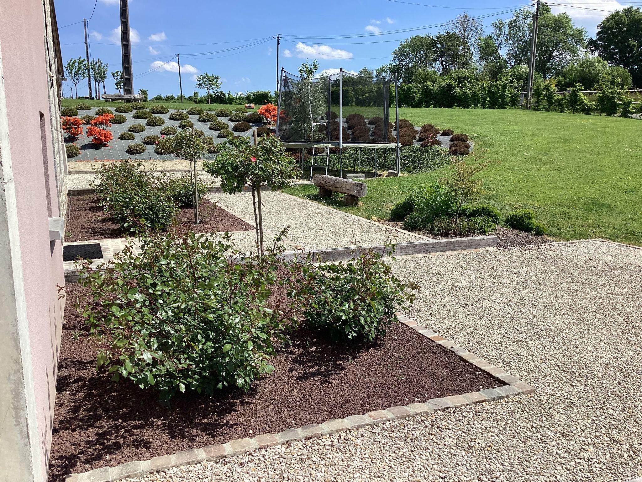 Surrounded by greenery, La Maison de Léontine is an address remarkable for its comfort and the quality of its materials. Everything has been carefully thought out for your relaxation and your holidays. You can enjoy your meals outside, with a choice of the XXL picnic table or the covered courtyard. In terms of leisure activities, the children can let off steam on the trampoline and enjoy a lively game of football on the lovely green space available. The gîte is also a great place to relax, with spacious bedrooms and a net hanging over the living room, the perfect place for a nap or a spot of reading! The gîte is the starting point for a number of beautiful walks and mountain bike trails, offering stunning views over the Normandy bocage and the Vire valley.