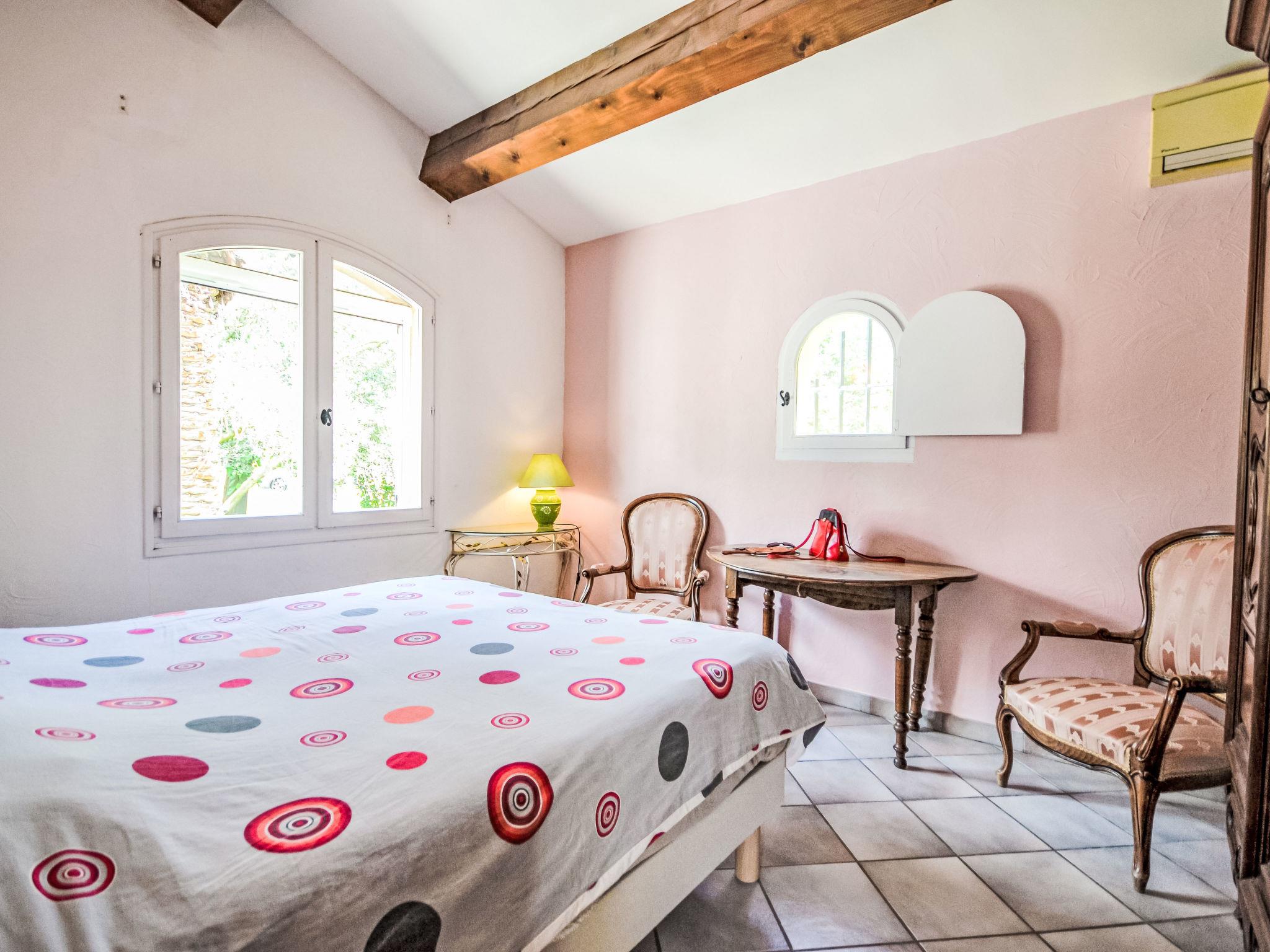 "Mas des Lavandes", 5-room house 160 m2. Comfortable and beautiful furnishings: living/dining room 40 m2 with Scandinavian wood stove. Exit to the terrace. 1 room with 1 french bed (140 cm, length 190 cm), shower. 1 room with 1 french bed (160 cm, length 200 cm). 1 room with 1 french bed (140 cm, length 190 cm). 1 room with 2 beds (90 cm, length 200 cm). Open kitchen (oven, dishwasher, 4 gas rings, toaster, kettle, microwave, electric coffee machine). Bath/shower, shower, 2 sep. WC's. Electric heating, air-conditioning. Terrace 20 m2 partly roofed. Terrace furniture, barbecue, deck chairs (8). Facilities: washing machine, children's high chair, baby cot for up to 2 year olds. Internet (WiFi, free). Please note: smoke alarm. Offer by a private individual according to Art. 155, IV of CGI.