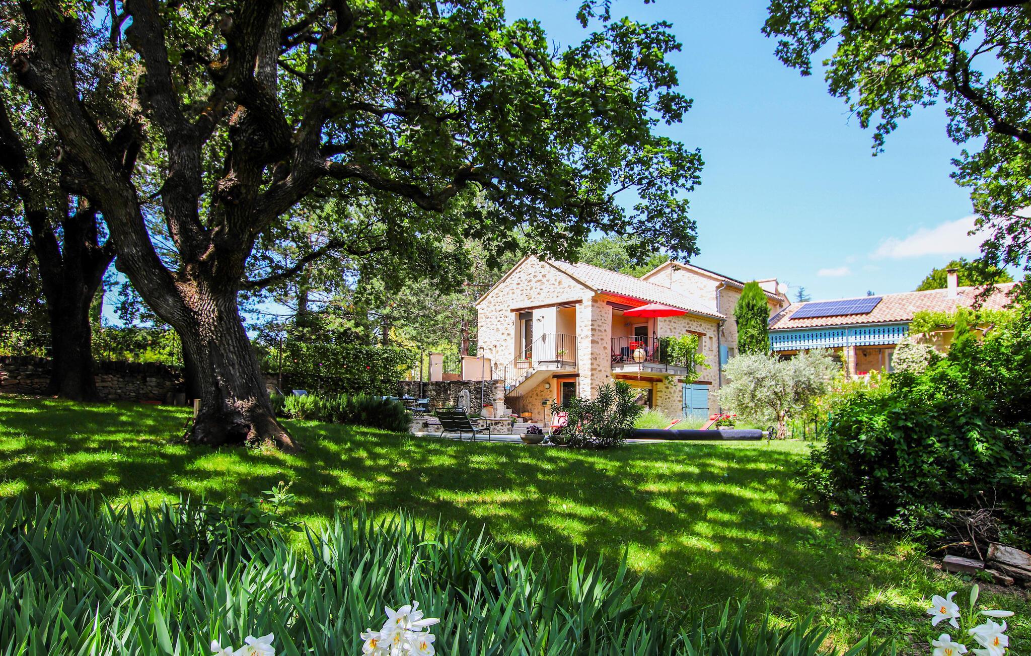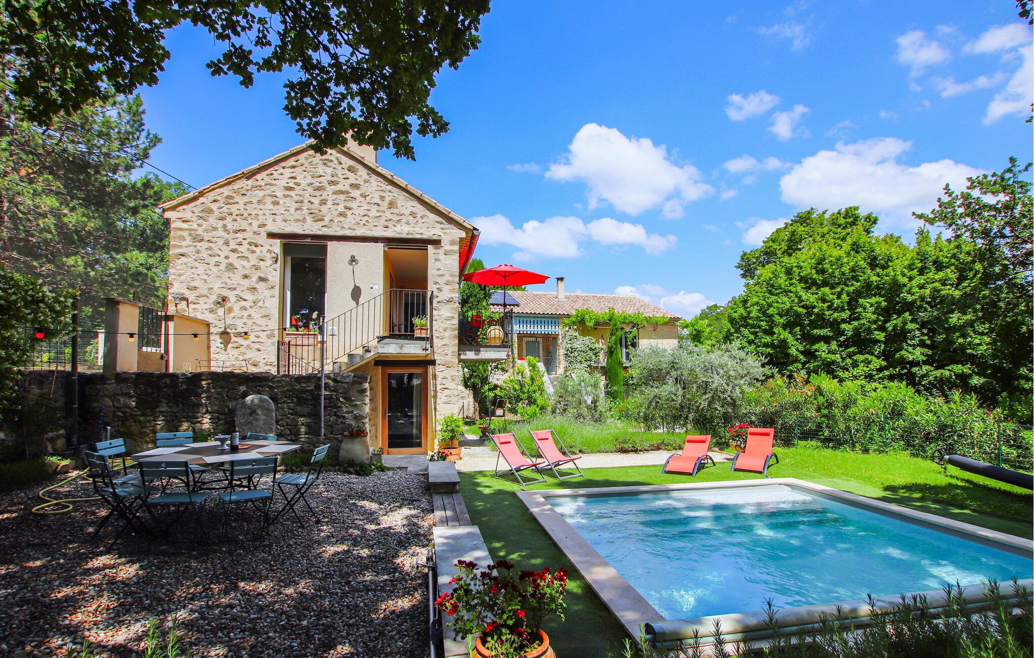 På eftermiddagen kan du koppla av i den privata trädgården. Inbäddad i en grön och romantisk naturpark kan du koppla av i den bukoliska trädgården, uppfriskad av en vacker privat pool som förlängs av en stor solig esplanad, eller på den förtjusande träterrassen, som erbjuder en magnifik panoramautsikt så långt som den majestätiska Mont Ventoux. På eftermiddagen kan man spela boule och på kvällen kan man grilla på den möblerade terrassen i milda temperaturer.