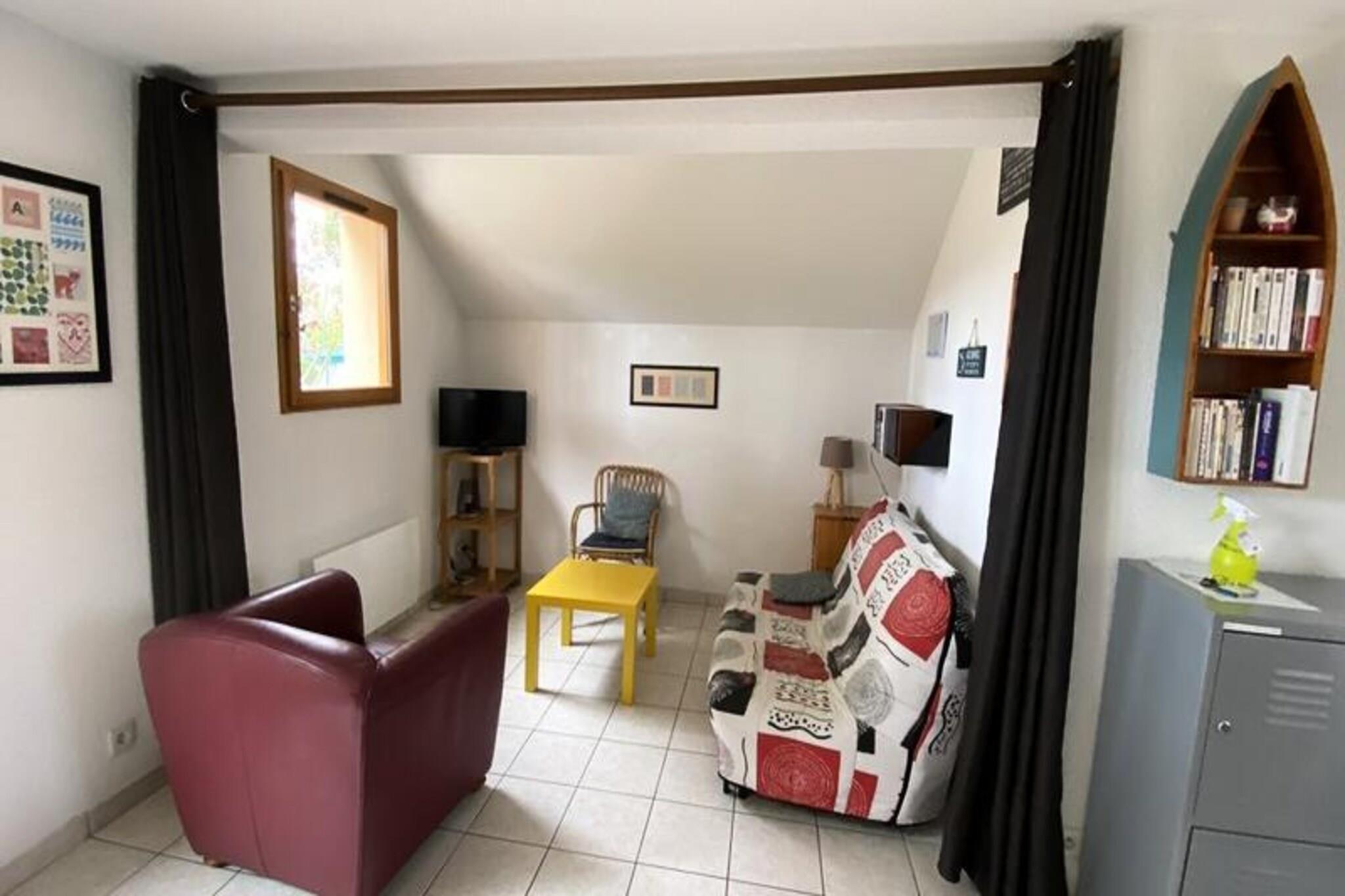 Denne hyggelige hytta på 45 m² har i første etasje: - En stue med utstyrt kjøkkenkrok - En stue med sovesofa - Bad med badekar og WC. Gulvet består av: - Et soverom med 140 seng. - Et lite soverom med en 90 cm seng (+ 1 90 cm uttrekkbar seng). - Bad med badekar Utstyr: Kjøleskap, mikrobølgeovn, elektrisk ovn, induksjonstopp, oppvaskmaskin, vaskemaskin, TV, hagemøbler, grill, svømmebasseng som deles av innbyggerne i Mégalithes, privat parkering. Utenfor: - Liten hage (ikke inngjerdet) med terrasse utstyrt med hagemøbler og grill. - Nummerert parkeringsplass foran huset. - Gratis tilgang til felles svømmebasseng åpent i sommersesongen og til tennisbanen. Byggeår: 1999 Vennligst merk: - Offisiell klassifisering 1* for 2 personer med reell kapasitet for 6 personer. - Ekstra strøm på målerstanden fra 1/1 til 4/05 og fra 19/10 til 31/12: kostnad per kwh i henhold til gjeldende EDF basistakst - Sengetøy og håndklær følger ikke med - Mulighet for utleie: EURO16/lakensett eller EURO19/dynetrekksett; håndklær (2 håndklær, 2 håndklær, 2 kjøkkenhåndklær, 1 badematte): EURO20, eller individuelt tilgjengelig. - Leie av Wifi-miniboks: EURO39/uke eller EURO6/dag - Avgangsrengjøring utføres av leietaker eller mulighet for bestilling av rengjøringspakke: EURO85 - Innskudd: EURO450 - Turistskatt: EURO 0,70/voksen/dag Oppvarming - 1