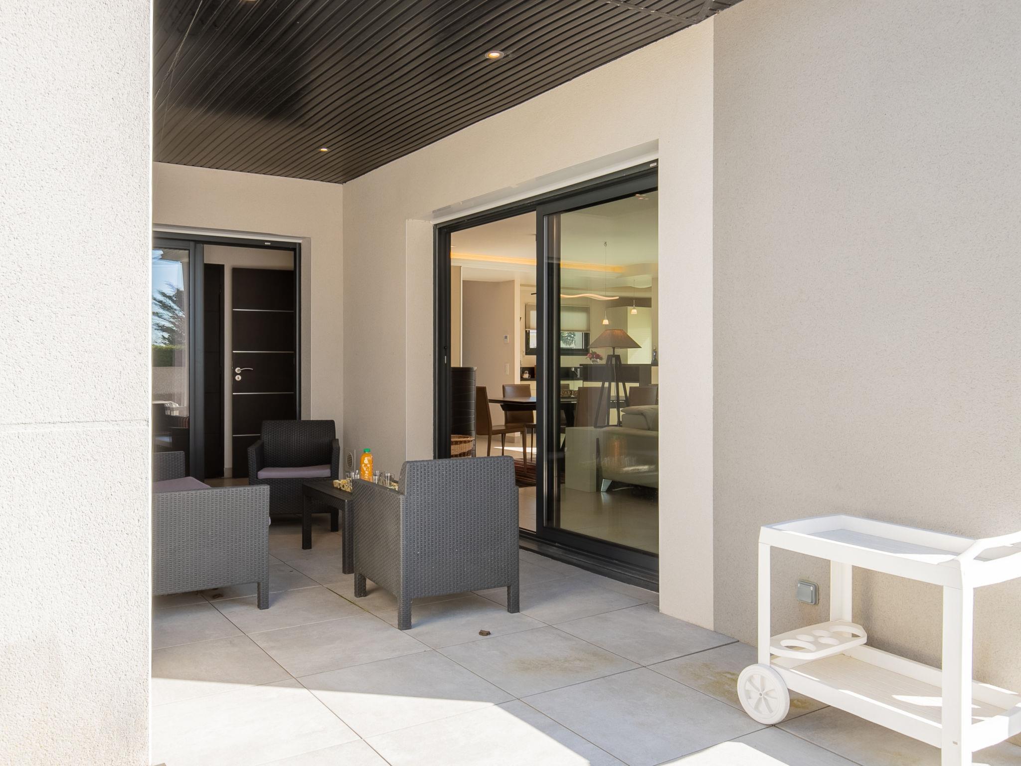Modern house "Ty Pleine", built in 2016. 800 m from the centre of Le Guilvinec, 5 km from the centre of Penmarch, 13 km from the centre of Pont l'Abbé, in the residential district, 300 m from the sea, from the beach. Private: property 600 m2, well-kept garden with lawn. Outdoor shower. Storeroom available. Parking (for 2 cars) on the premises. Shop 800 m, bus stop 2 km, sandy beach "Greve Blanche" 300 m. Sailing school 1 km. Nearby attractions: Phare d'Eckmühl 8 km, pointe de la Torche 9 km.