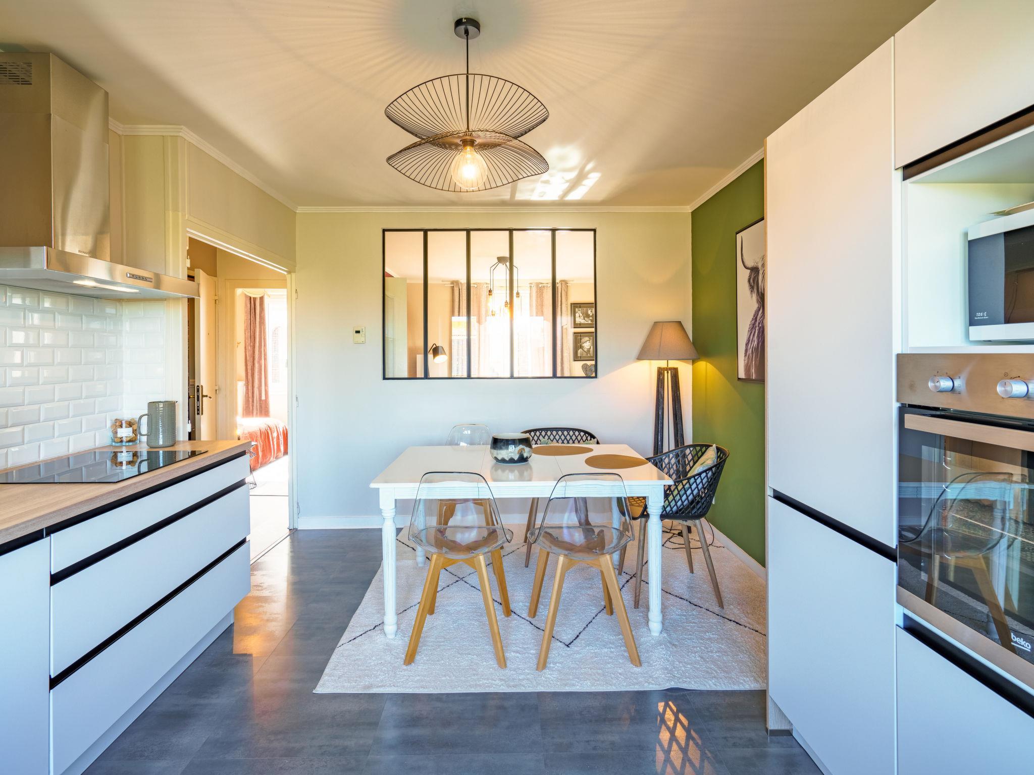 "Ty Ael", 2-room apartment 50 m2 on 1st floor. Renovated in 2018, comfortable and modern furnishings: living room with TV (flat screen). 1 room with 1 french bed (140 cm, length 190 cm). Kitchen (oven, dishwasher, 3 induction hot plates, toaster, kettle, microwave, freezer, electric coffee machine) with dining table. Shower, sep. WC. Electric heating. Facilities: washing machine, dryer, iron, hair dryer. Internet (WiFi, free). Parking at the house. Please note: non-smokers only. Smoke alarm. there is no secure space for bicycles.