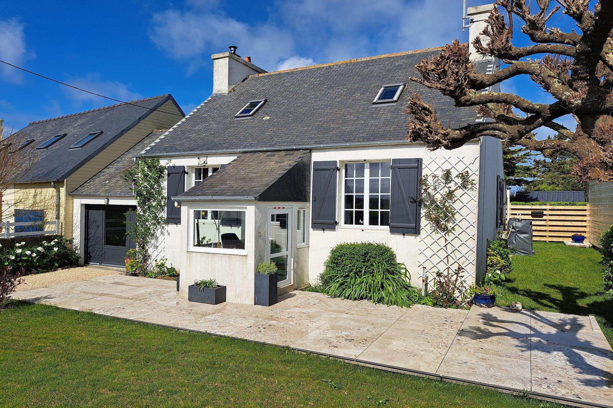 Detta charmiga fritidshus ligger bara 150 m från stranden, omgivet av en inhägnad trädgårdstomt. Den lilla återvändsgränden som leder till stranden erbjuder en underbar utsikt över havet efter bara några steg. Boendet på bottenvåningen överraskar med en lyckad blandning av gammalt och nytt. Det traditionella vardagsrummet med möbler i bretonsk stil och en mysig spishörna leder in till ett modernt område med ett välutrustat kök och en ljus vinterträdgård där matsalen ligger. På sommaren kommer du gärna att använda den intilliggande grillplatsen för trevliga måltider utomhus. Två sovrum och två badrum erbjuder utmärkt komfort för 4 personer. Den lilla staden Guisseny är populär och känd som en lugn badort. Det finns otaliga små stränder och klippformationer i den breda viken. På denna långväga vandringsled (GR34) kan du följa kusten många kilometer västerut och österut och njuta av underbara vyer. Båtturer erbjuds i hamnen i Aber Wrac"h till Ile Vierge-fyren i väster. I öster lockar den restaurerade fiskebyn Meneham många turister. En stor marknad med lokala specialiteter äger rum varje måndag i kommunen Lesneven .