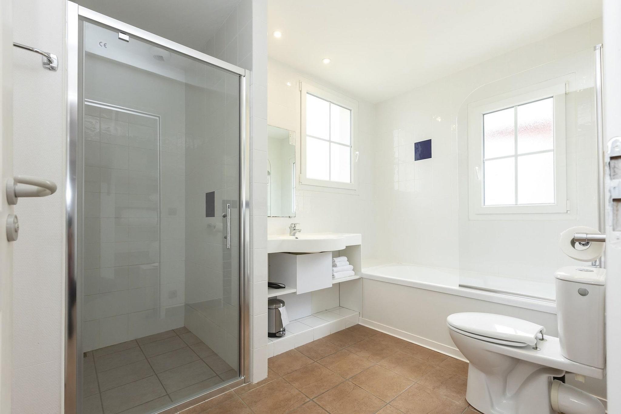 Välkommen till din eleganta lägenhet på Les Villas des Greens du Bassin, designad i den traditionella Landaise-arkitekturen med moderna bekvämligheter. Detta inbjudande semesterhus rymmer upp till sex gäster, med en dubbelsäng i det stora sovrummet, en charmig våningssäng i det andra och en dubbel bäddsoffa i det solbelysta vardagsrummet. Njut av måltider på din privata terrass eller balkong, laga färsk fisk och skaldjur i det välutrustade pentryt och varva ner i den mysiga loungen efter en dag i solen. En gemensam pool (öppen april–september) och trädgård fullbordar din fridfulla flykt. Idealiskt beläget i utkanten av den lummiga Gujan-Mestras golfbana, är du bara några minuter från Arcachon Bays sandstränder och tallkantade cykelvägar. Utforska den höga Dune du Pilat, kryssa längs kusten eller besök lokala ostronodlingar för en sann smak av regionen. I närheten erbjuder Gujan-Mestras charmiga matställen som serverar färsk fisk och skaldjur, regionala viner och baskisk inspirerade rätter – perfekt för en avkopplande kväll ute. Ta med din lurviga följeslagare? Du har tur! Hundar är välkomna i lägenheten och kommer att älska de natursköna stigarna vid Domaine de Certes-Graveyron och de hundvänliga stränderna vid stranden La Hume. Många lokala kaféer och terrasser är husdjursvänliga, vilket gör det enkelt att njuta av området tillsammans. Oavsett om du slappar vid poolen eller utforskar kuststigar, får den här lägenheten varje ögonblick att kännas som en semester - för både människor och husdjur.
