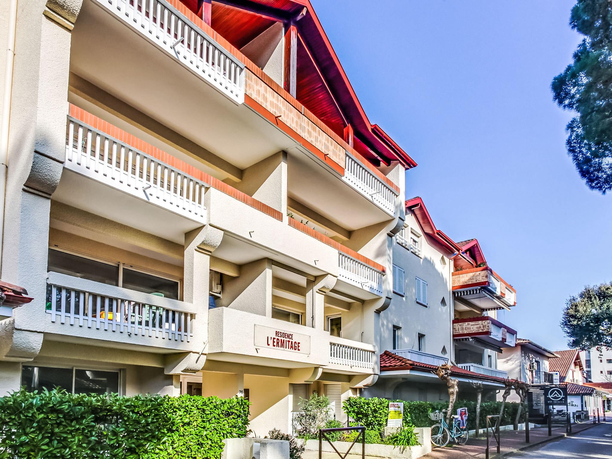 Beautiful residence "Ermitage", 3 storeys. In the centre of la ville, 1.5 km from the sea, 200 m from the lake, 1.5 km from the beach. Public parking 10 m extra. Restaurant, bar 30 m, bus stop 600 m, sandy beach 2 km. Golf course (18 hole) 500 m. Please note: suitable for families. Groups of teenagers on request only. There is a kinesio therapy, a dentist and a veterinary practise on the ground floor.