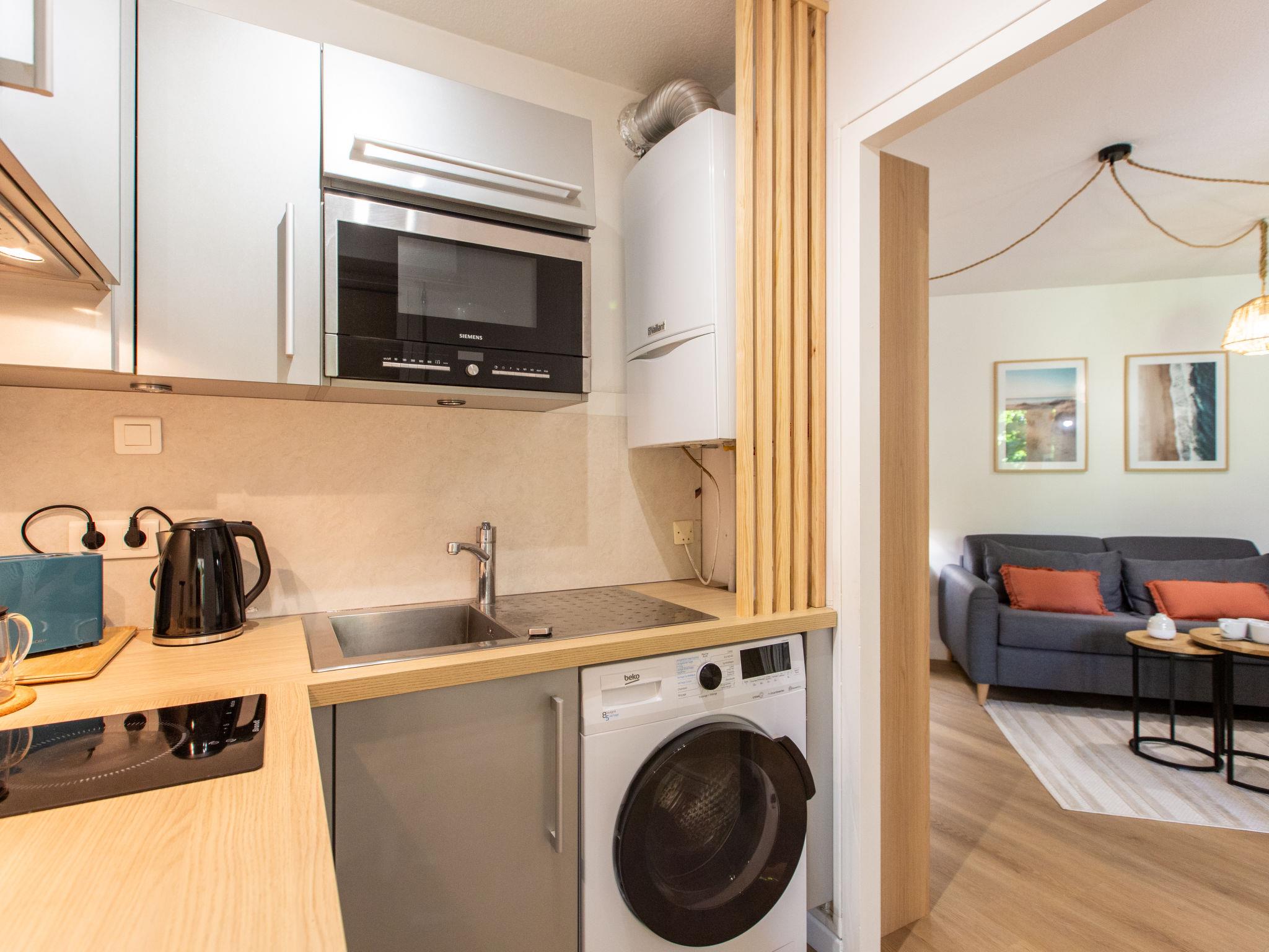 2-room apartment 37 m2, on the ground floor, east facing position. Living/dining room with 1 sofabed (130 cm, length 190 cm), TV (flat screen). Exit to the terrace. 1 room with 1 double bed (2 x 80 cm, length 200 cm). Open kitchen (2 induction hot plates, toaster, kettle, microwave, electric coffee machine). Shower, sep. WC. Heating, gas heating. Terrace 12 m2, roofed. Terrace furniture. Facilities: washing machine, iron, hair dryer. Internet (WiFi, extra). Parking space n 204. Please note: non-smokers only. Smoke alarm. Offer by a private individual according to Art. 155, IV of CGI. 40304001769DY