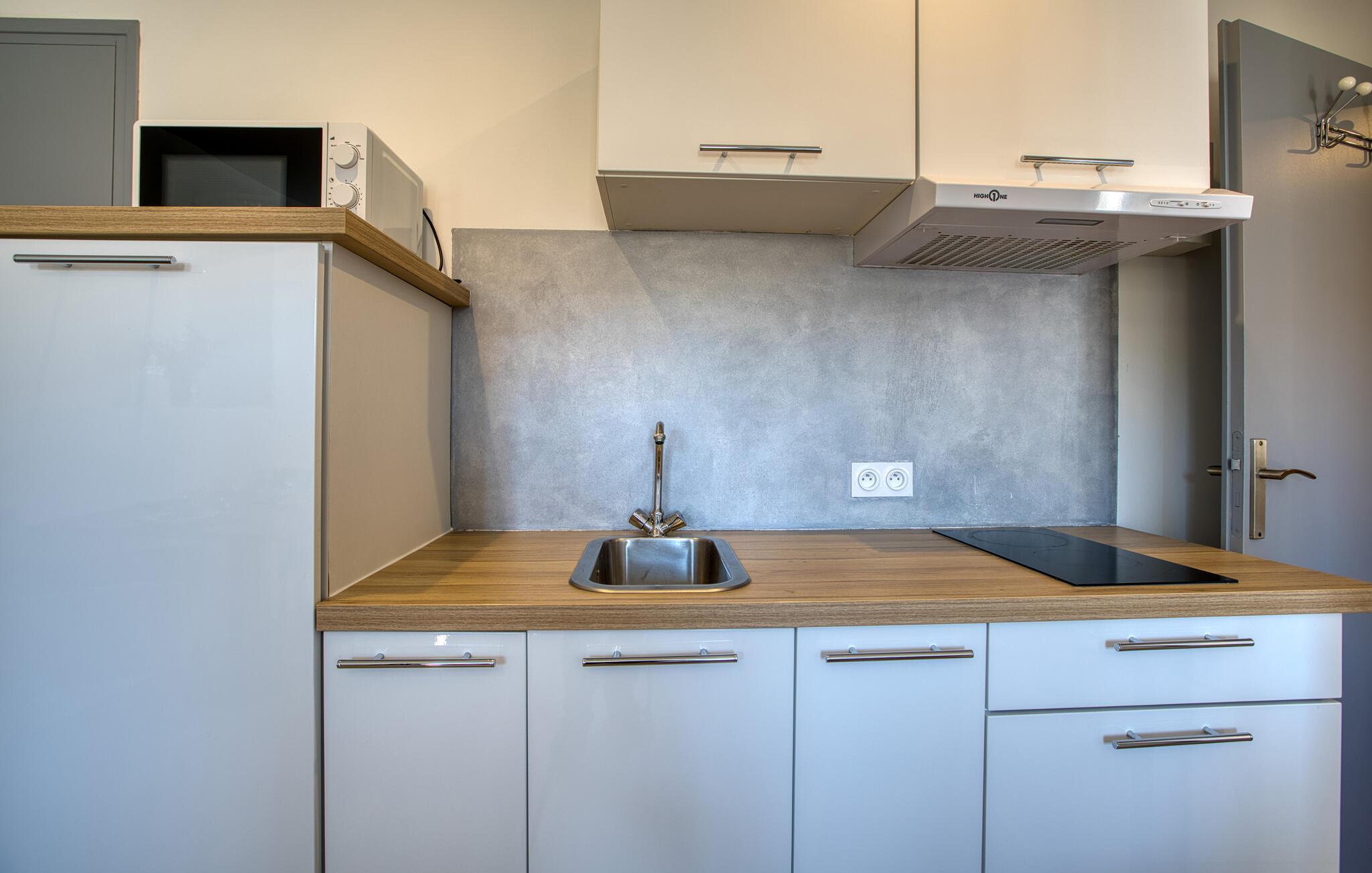 Din charmiga semesterlägenhet imponerar med sin funktionella inredning och vänliga atmosfär. De ljusa rummen med klara linjer och subtila färger ger en vacker miljö för en avkopplande semester. Använd vardagsrumsdelen för att läsa eller koppla av och njut av dina måltider vid det lilla matbordet.