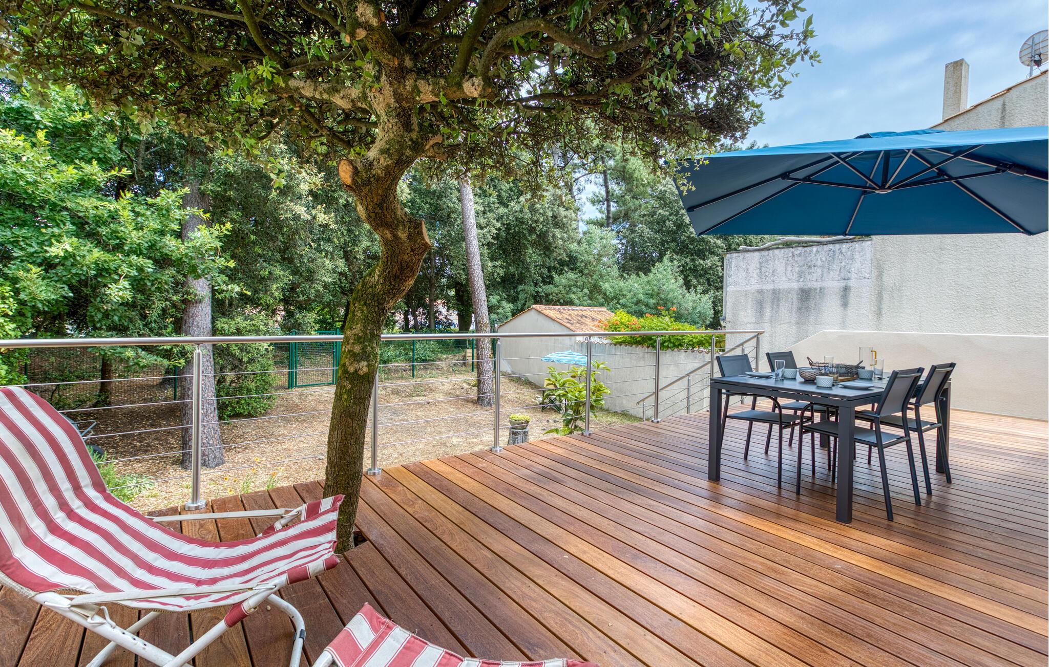 I detta charmiga, kärleksfullt renoverade hus nära stranden hittar du allt du behöver för en lyckad semester. Koppla av i vardagsrummet, inrett med mycket trä och vackra kakelplattor, med en bra bok eller ett bra samtal. Tillaga läckra måltider i det moderna köket och skäm bort dig själv med ett fint franskt vin.