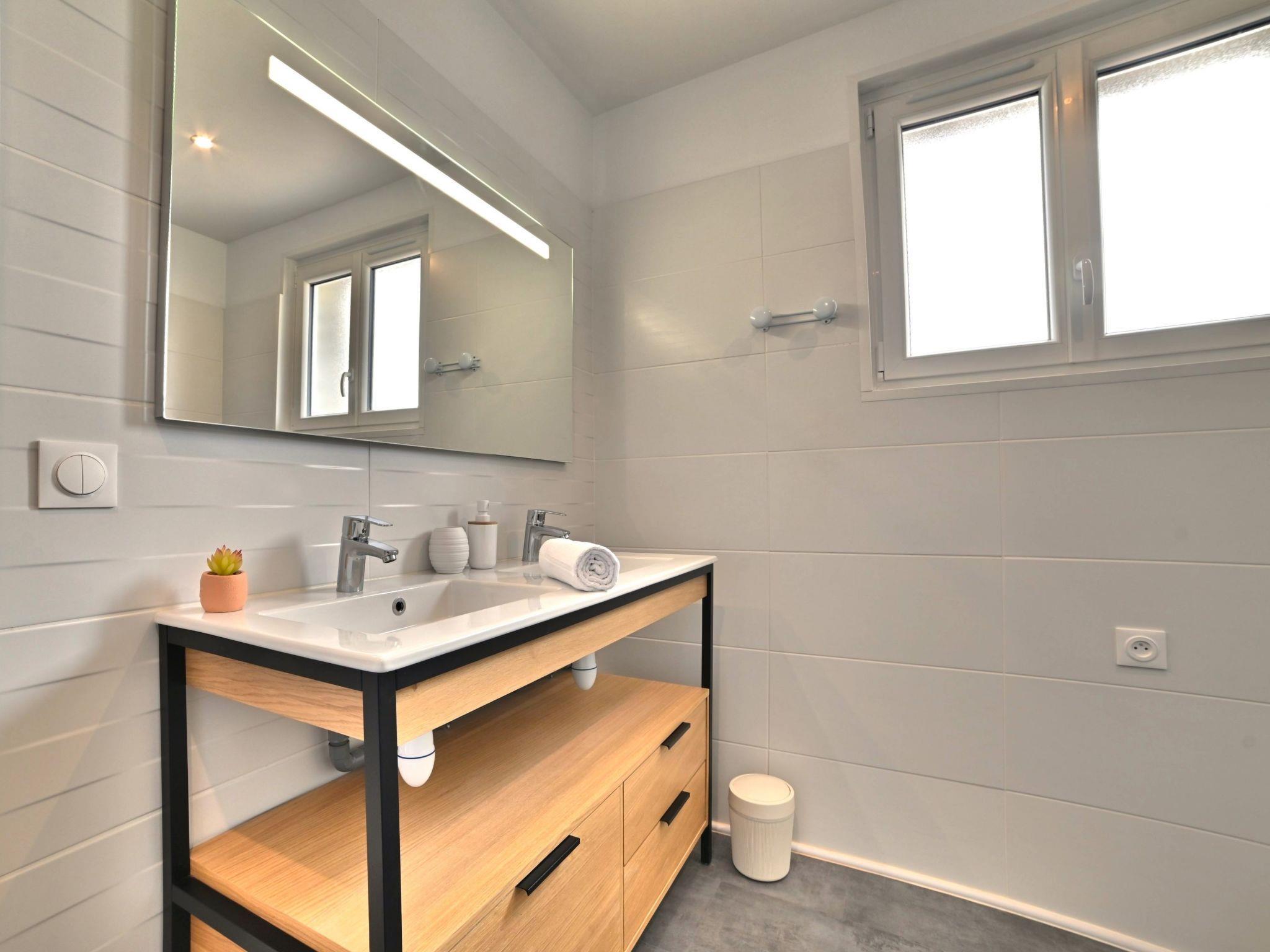 5-room terraced house 120 m2 on 2 levels. Comfortable and beautiful furnishings: living/dining room with TV (flat screen). Exit to the terrace. 1 room with 1 french bed (1 x 140 cm, length 190 cm). Open kitchen (oven, dishwasher, 3 induction hot plates, toaster, kettle, microwave, electric coffee machine). Bathroom, sep. WC. Electric heating. Upper floor: 1 room with 1 french bed (1 x 140 cm, length 190 cm). 1 room with 1 french bed (1 x 140 cm, length 190 cm). 1 room with 2 beds (90 cm, length 190 cm). Bathroom, sep. WC. Terrace 40 m2. Terrace furniture, barbecue. Facilities: washing machine, hair dryer. Internet (WiFi, free). Parking at the house. Please note: smoke alarm. Offer by a private individual according to Art. 155, IV of CGI. 17093000105BF