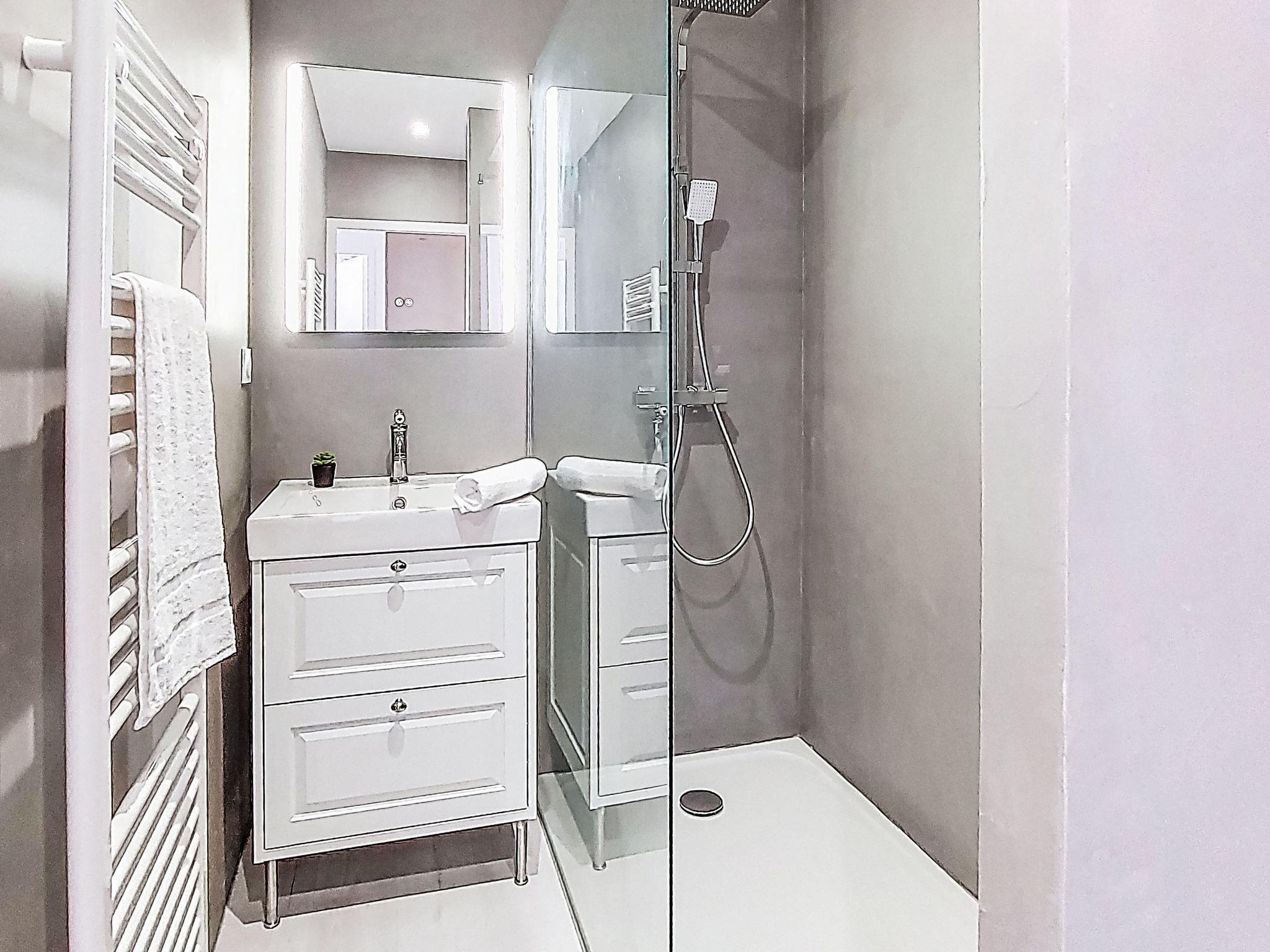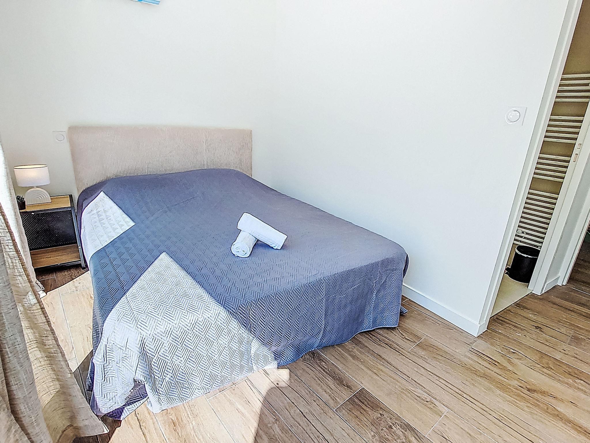 4-room terraced house 85 m2. Comfortable and beautiful furnishings: living/dining room with TV (flat screen). 1 room with 1 french bed (1 x 160 cm, length 200 cm). Open kitchen (dishwasher, 3 induction hot plates, toaster, kettle, microwave, electric coffee machine). Bath/WC. Electric heating. Upper floor: 1 room with 1 french bed (1 x 160 cm, length 200 cm). 1 room with 1 french bed (1 x 160 cm, length 200 cm). Shower/WC. Electric heating. Small terrace, small patio. Terrace furniture, barbecue. Facilities: hair dryer. Internet (WiFi, free). Parking at the house. Please note: non-smoking house. Smoke alarm. Offer by a commercial proprietor according to Art. 155, IV, CGI 17385000459A4