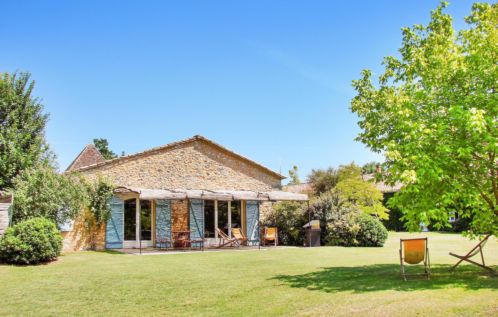 Upptäck detta charmiga semesterhus i hjärtat av Périgord i Dordogne. Detta fridfulla semesterhus ligger inbäddat i stora fält och skogar, mellan Beaumont (8 km) och Issigeac (6 km). Huset har en rymlig bottenvåning med ett stort vardagsrum, ett kök med öppen planlösning, två mysiga sovrum och två badrum. Via en trätrappa med smidesräcken når man ytterligare två sovrum på första våningen. Utomhus finns en terrass, en lekplats med bordsfotboll, bordtennis och badminton. Den inhägnade poolen, som mäter 11 x 6 meter, delas med ägarna, som använder den ibland på morgonen och kvällen. Den stenlagda terrassen med pergola erbjuder en skuggig plats för avkoppling. Huset ligger i ett lugnt och fridfullt område på landsbygden. Närmaste affärer (bageri, livsmedelsaffär, restauranger) finns i Beaumont (8 km) eller Issigeac (6 km). Njut av din semester i ett hus, din semesterlägenhet, i Dordogne i Quercy - Périgord. Observera: Ägarna bor på samma fastighet i ett separat hus. Poolen delas med ägarna, som arbetar under dagen och ibland använder poolen på morgonen och kvällen. Tillgången till ankdammen (2 m x 3 m) är helt säkrad. Under din vistelse kan du träffa värdarnas vänliga hundar.