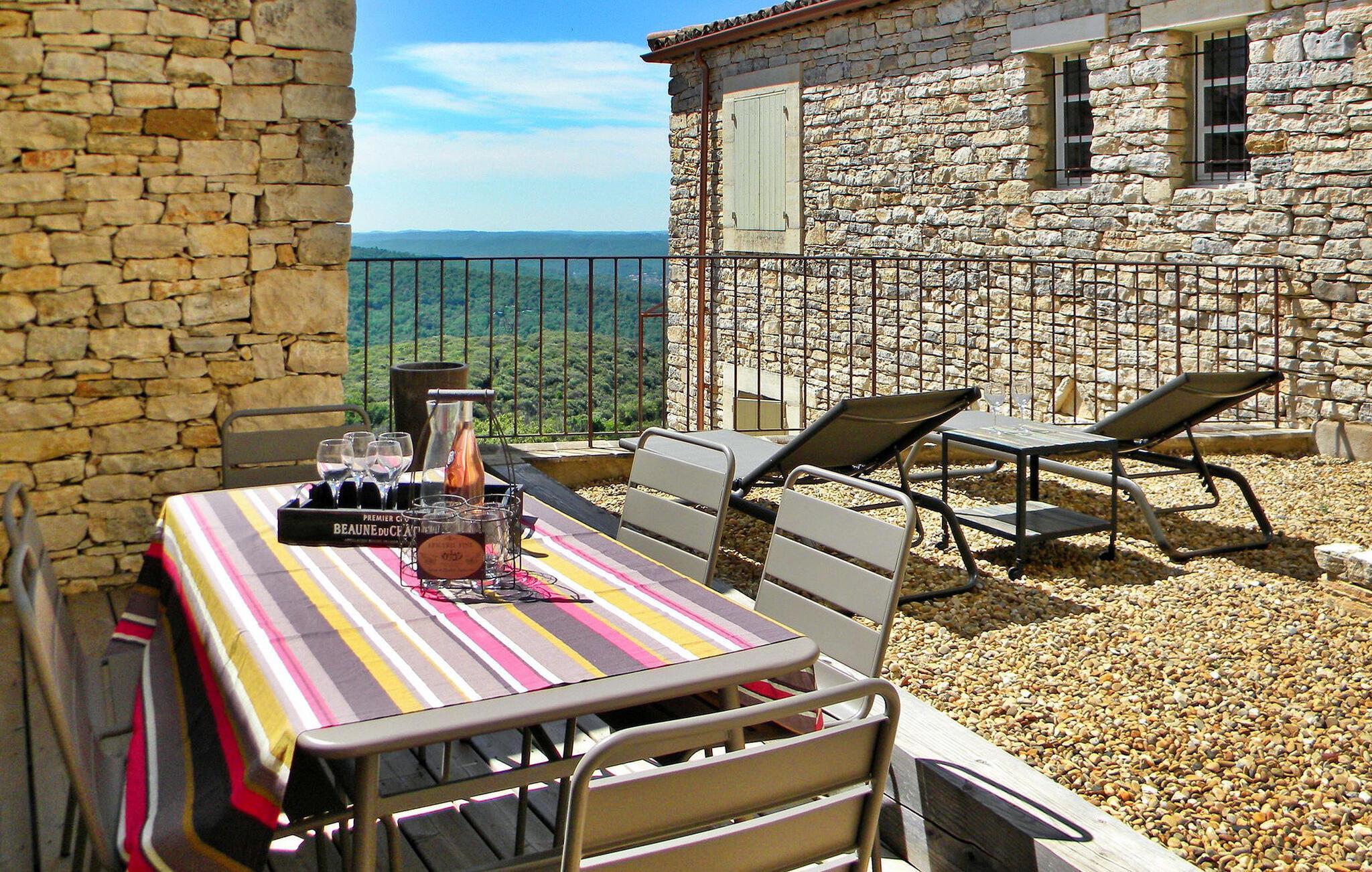 I Provence är semesterbostaden Hameau de Coulon en tillflyktsort i en autentisk fransk bymiljö. Denna privata egendom består av åtta angränsande semesterbostäder, var och en med den klassiska charmen hos en fransk by. Semesteranläggningen ligger inbäddad mellan Cèze-dalen och Ardèche och har en fantastisk utsikt över de omgivande byarna och dalarna. Hameau de Coulon återupplivar en historisk by från 1930, som har byggts om med autentiska material och erbjuder moderna bekvämligheter i en karaktäristisk fransk bymiljö. Från Issirac leder en lugn sandväg genom skogen till denna idylliska tillflyktsort. Den lägre nivån har en ingång som leder till en terrass och rymmer mysiga sovrum. På första våningen finns ett inbjudande vardagsrum och matplats med en täckt terrass och en bar. Köket, som är utformat för komfort, har tillgång till en annan terrass, medan sovrummen har tillgång till ytterligare lugna utomhusområden. Fastighetens utomhusområden, som delas av gästerna, inkluderar en magnifik, inhägnad pool omgiven av en exotisk träterrass, perfekt för avkoppling. Andra bekvämligheter inkluderar en boulebana, en lekplats och gott om parkering. Observera: Semesterbyn ligger på en brant kulle, med poolen, parkeringen och boulebanan direkt nedanför. Poolen är öppen dagligen från kl. 9.00 till kl. 20.00, vilket garanterar avkopplande bad för alla gäster. Tillfart via en sandväg kan vara olämplig för låga bilar. Semesterbyn ligger i skogen, 3 km från byn Issirac, mellan Cèze-dalen och Ardèche. Närmaste livsmedelsaffär finns i byn Cornillon (10 minuter med bil). Restauranger och stormarknad i Goudargues (18 km). Stort snabbköp i Bagnols sur Cèze. Upptäck charmen i en autentisk provencalsk by och njut av den vackra naturen i Hameau de Coulon.