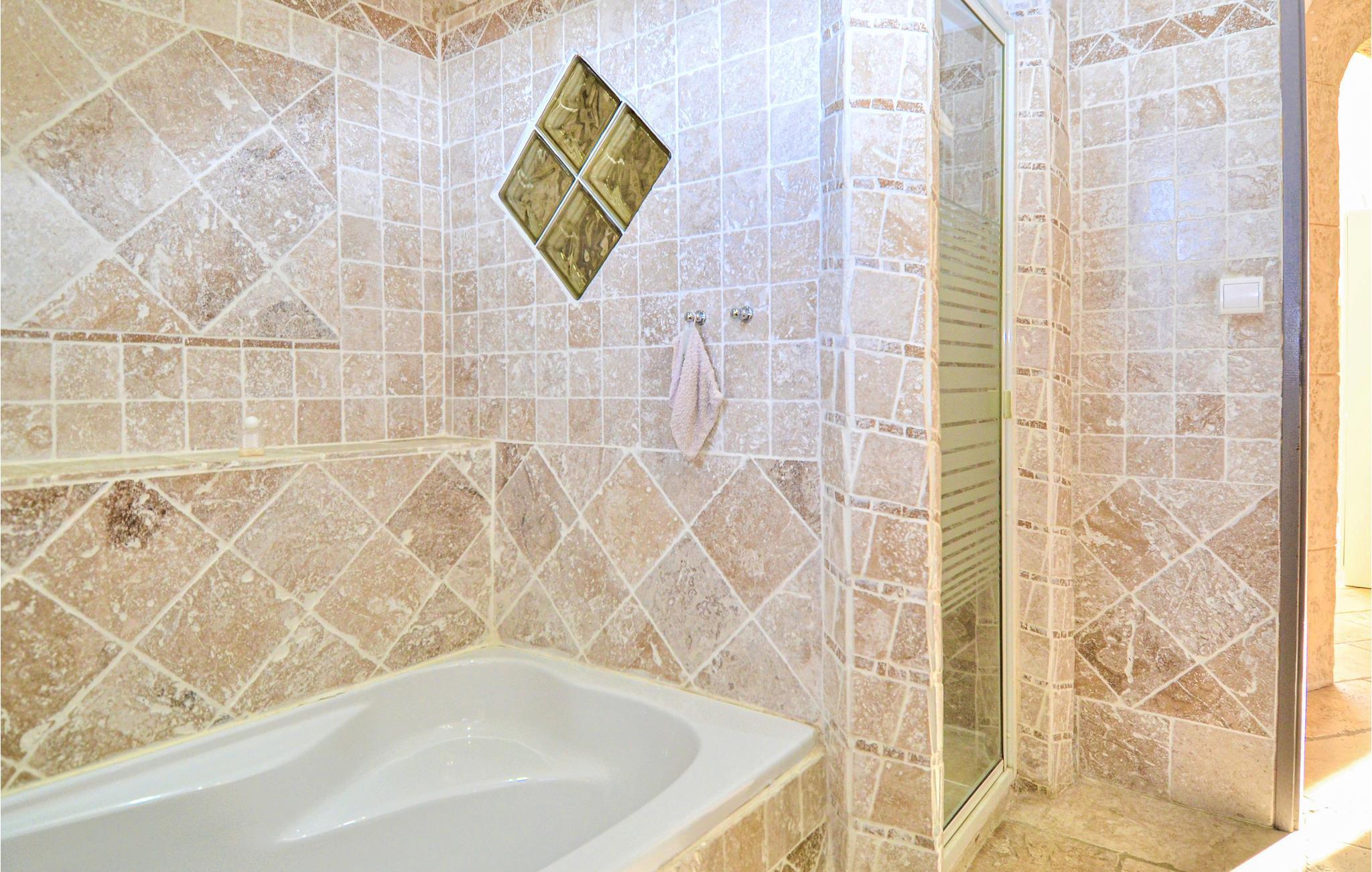 Här väntar ett underbart rymligt semesterhus med flera aktivitetsmöjligheter för dig och dina vänner. I det stora kaklade vardagsrummet med sina slående stenväggar kan ni tillbringa tid tillsammans och njuta av spännande samtal eller spela spel. I aktivitetsrummet finns ett biljardbord och en bar där ni kan tillbringa era kvällar. Utanför hittar du ett utekök och en grill samt en pool omgiven av solstolar, där du kan sola och koppla av för att hålla dig igång hela dagen.