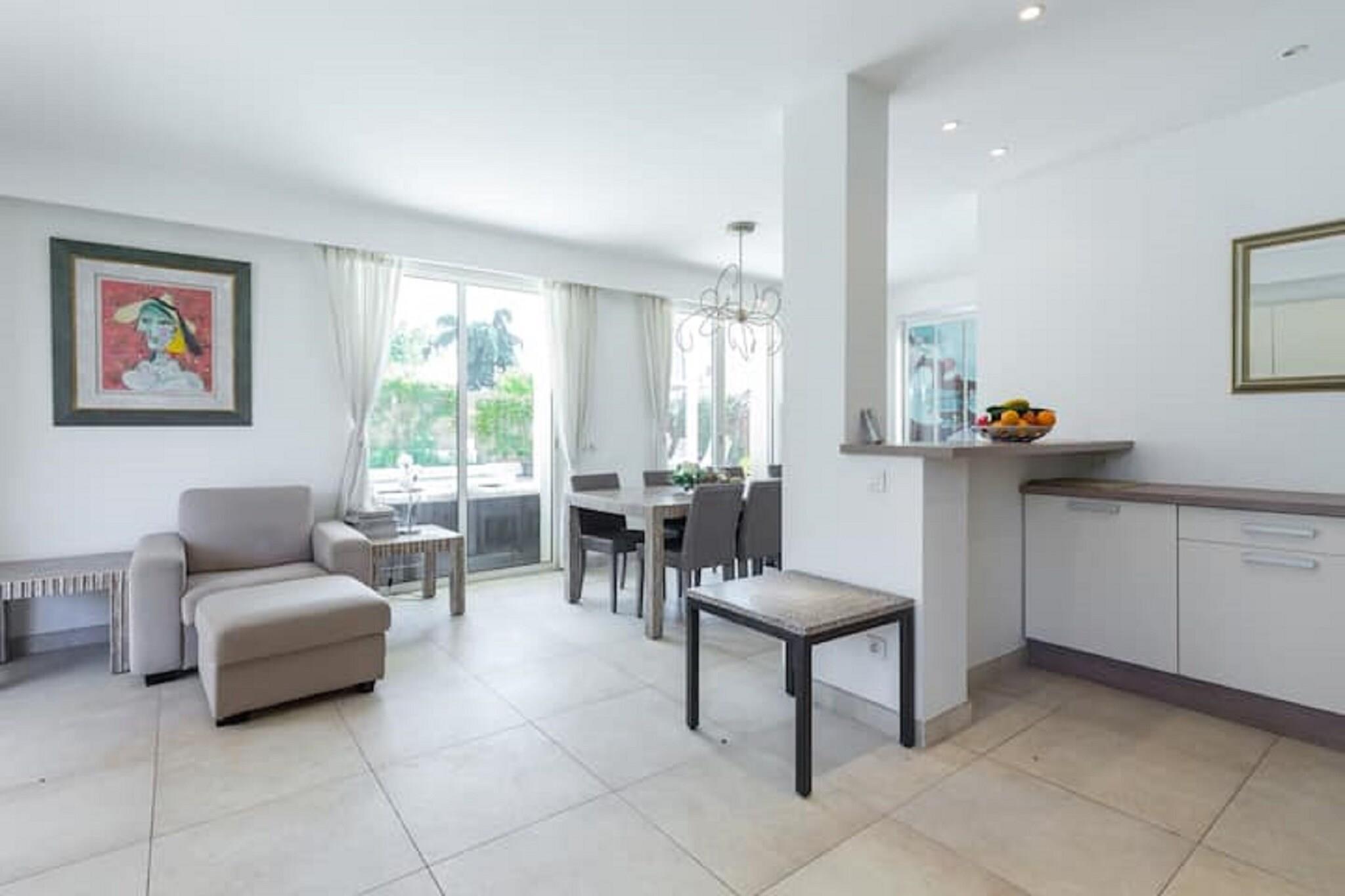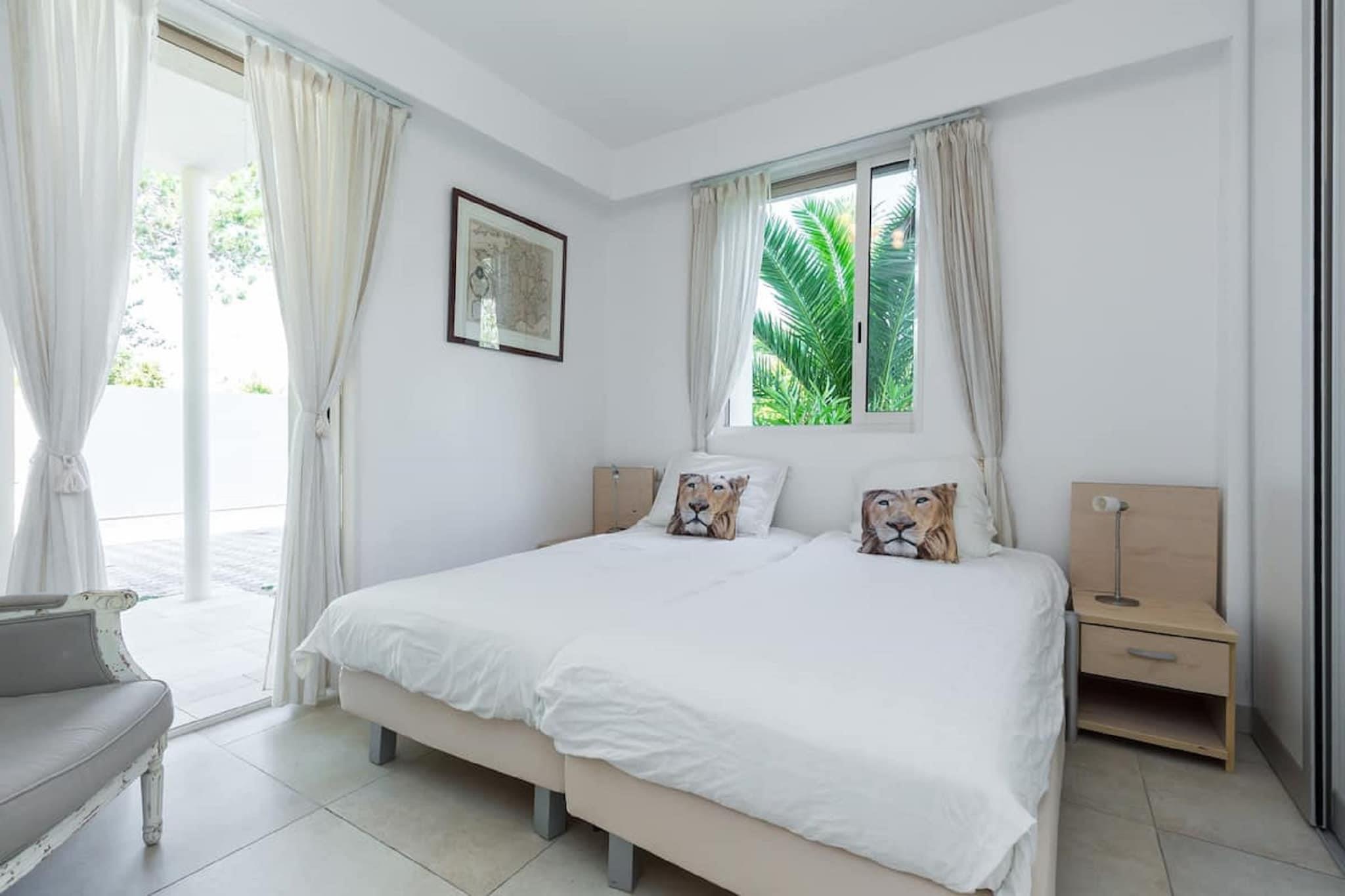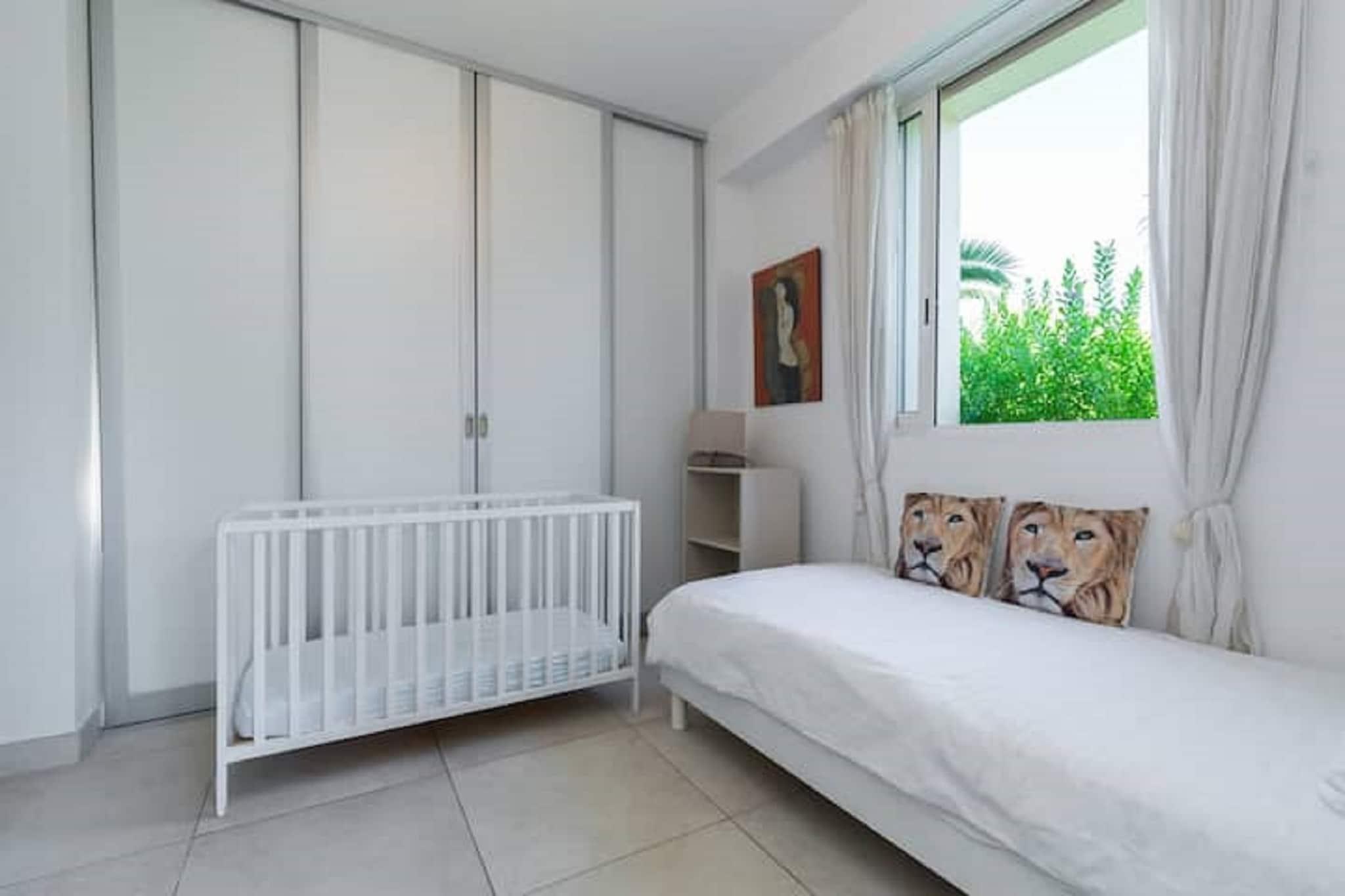 Denna expansiva villa i Juan-les-Pins erbjuder en lyxig tillflyktsort vid kusten för upp till 14 gäster, bara 100 meter från sandstranden. Bottenvåningen har ett elegant vardagsrum med öppen spis, CD-spelare och TV, en rymlig matplats och ett fullt utrustat öppet kök med espressomaskin, mixer och diskmaskin. Fyra sovrum och tre badrum garanterar komfort och avskildhet, medan första våningen lägger till ytterligare två vardagsrum, ytterligare fyra sovrum, två badrum och en uppvärmd terrass. Utomhus kan gästerna njuta av en privat inhägnad pool (9×5m) med vattenlarm, solstolar, BBQ och en lounge i trädgården. Faciliteterna inkluderar luftkonditionering, träningsutrustning, bordsfotboll och en ångdusch. Villan har också ett utomhuskök, uteplats och flera terrasser för avkoppling eller underhållning. Villan ligger bara 1 km från Juan-les-Pins centrum och 8 km från Cannes, nära Juan-les-Pins tågstation och Nice flygplats. Det finns gott om matställen i närheten, inklusive L'escale, Le Bistrot och La Mamma, som erbjuder allt från klassisk fransk mat till italienska favoriter. Med sitt utmärkta läge och exklusiva bekvämligheter är denna villa perfekt för stora familjer eller grupper som söker sol, stil och charm vid havet.