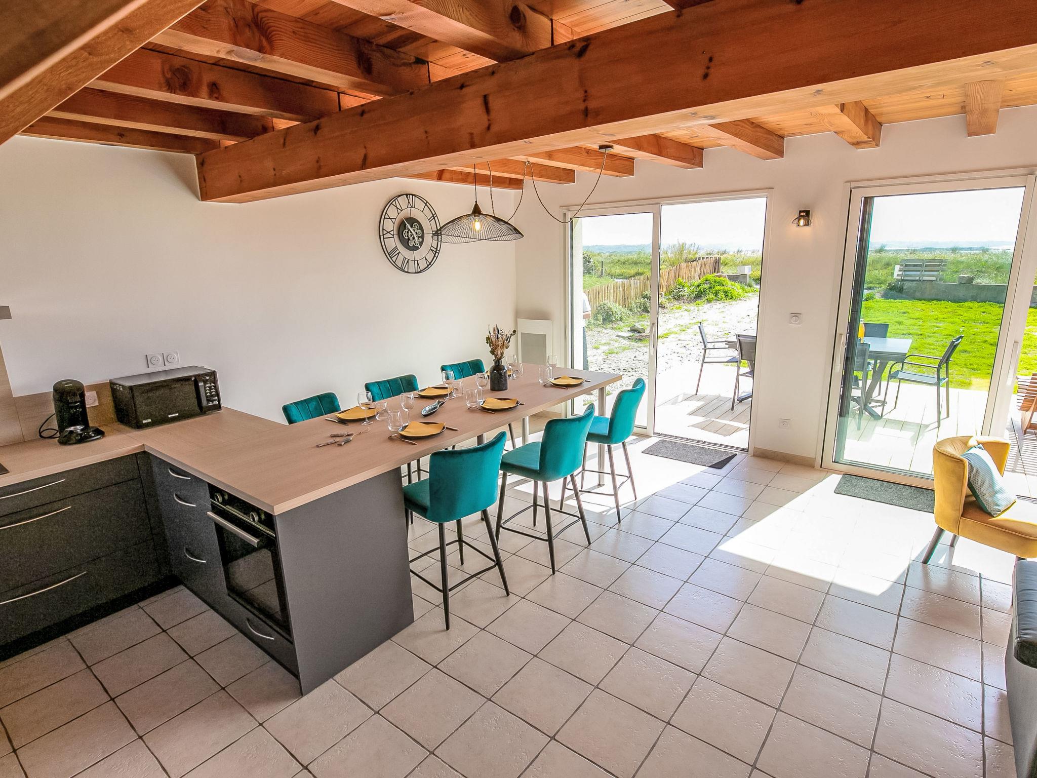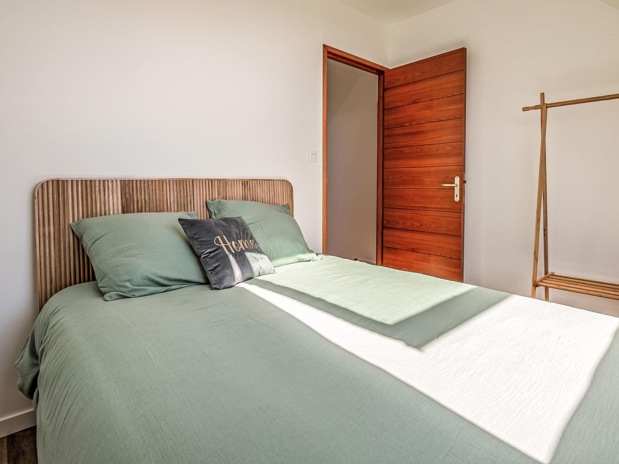 "Les reflets bleus", 4-room house 80 m2 on 2 levels. Bright, fully renovated in 2025, comfortable and tasteful furnishings: open living room 45 m2 with TV and flat screen. Exit to the terrace. Open kitchen (oven, dishwasher, 3 induction hot plates, toaster, kettle, microwave, freezer, electric coffee machine, Capsules for coffee machine (Senseo) extra) with dining table. Shower/WC. Upper floor: 1 room with 1 french bed (160 cm, length 200 cm). 1 room with 1 french bed (140 cm, length 190 cm). 1 room with 1 pull-out bed (2 x 90 cm, length 190 cm). Shower/WC. Electric heating. Terrace 20 m2, south-west facing position. Terrace furniture, deck chairs (2). Beautiful view of the sea. Facilities: washing machine, dryer, baby cot for up to 2 year olds, hair dryer. Internet (WiFi, free). Please note: non-smoking house. Maximum 1 pet/ dog allowed. Smoke alarm. Offer by a private individual according to Art. 155, IV of CGI.